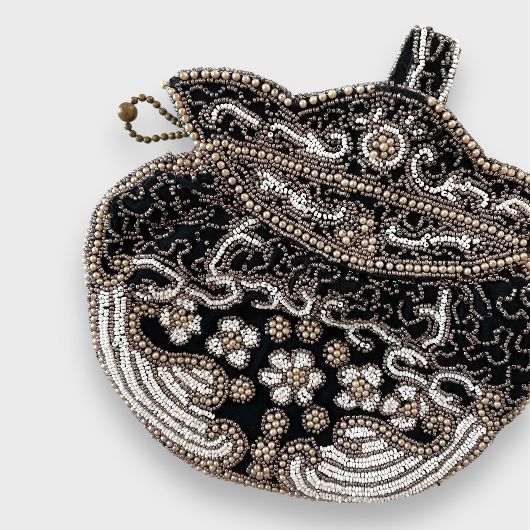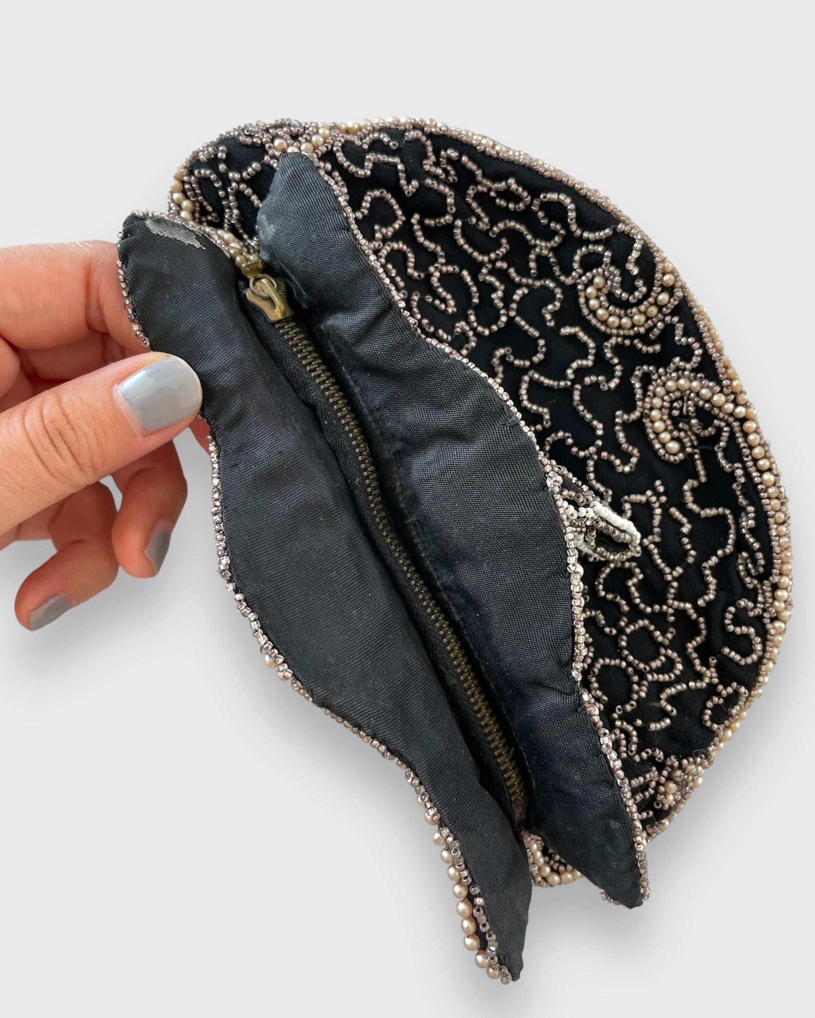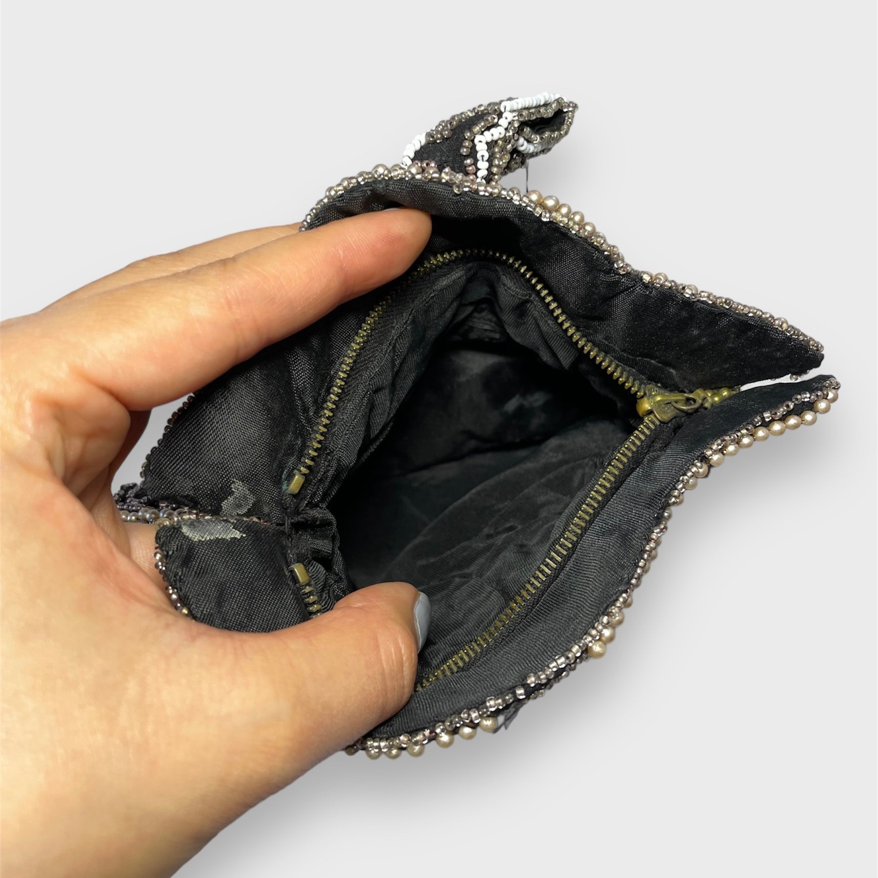 - Details: Antique from the 1920s; small black beaded pouch; zipper enclosure