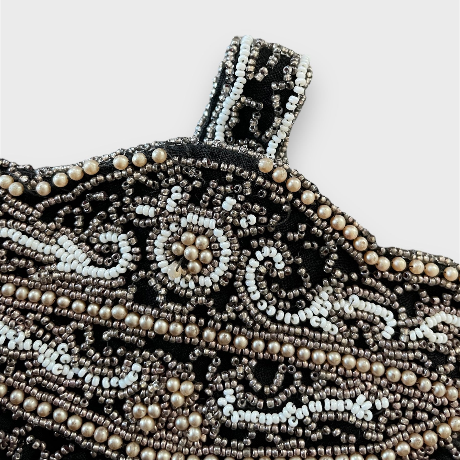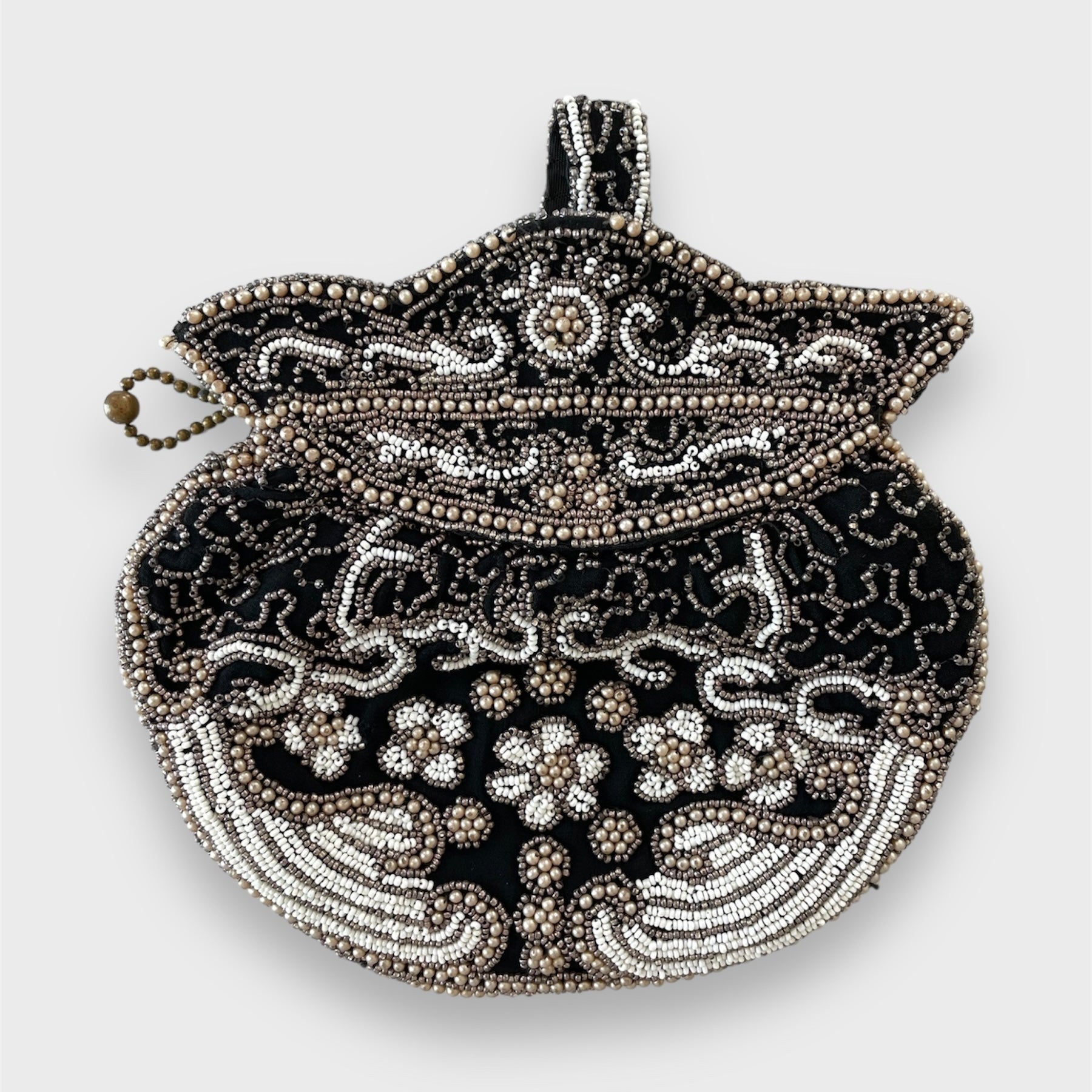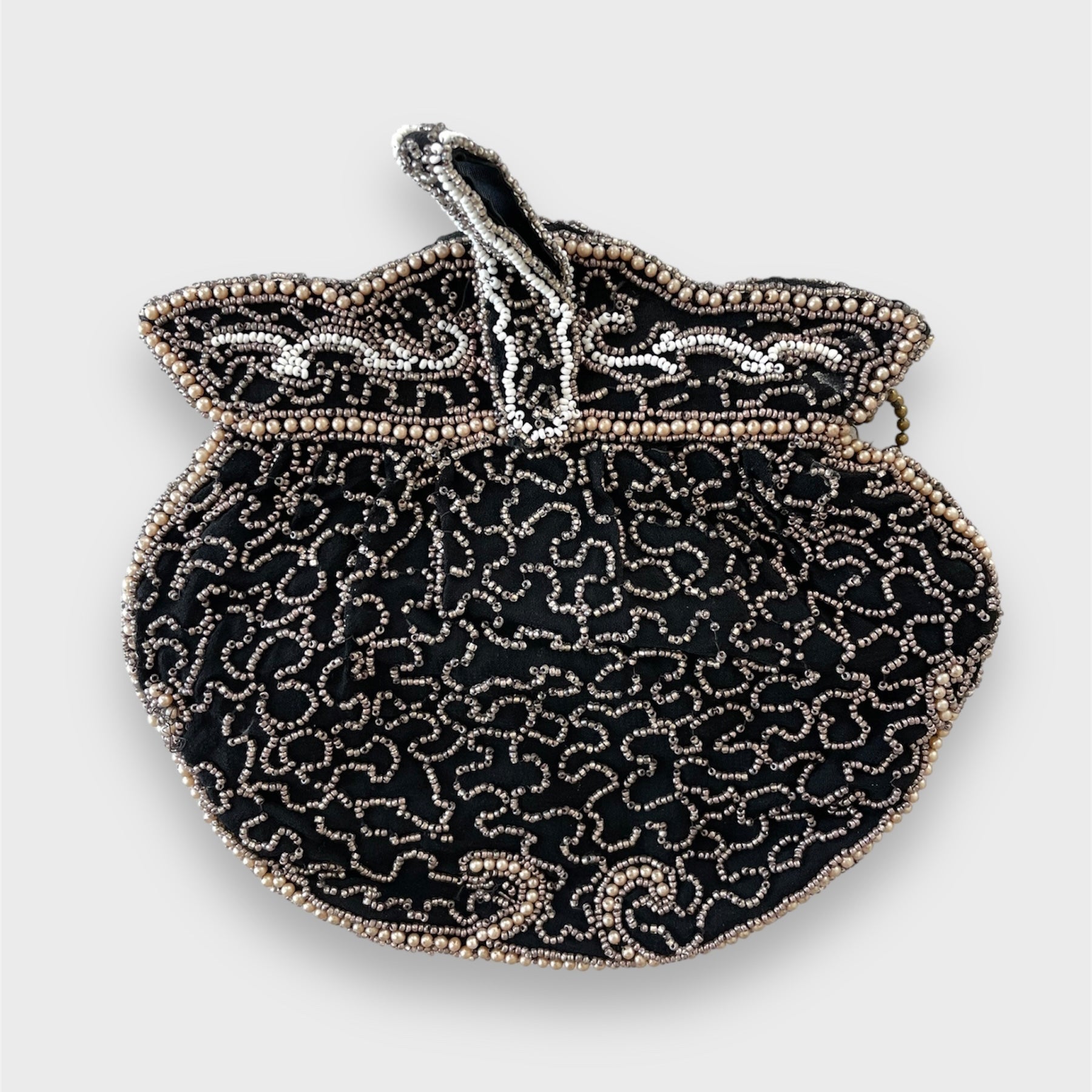 - Details: Antique from the 1920s; small black beaded pouch; zipper enclosure