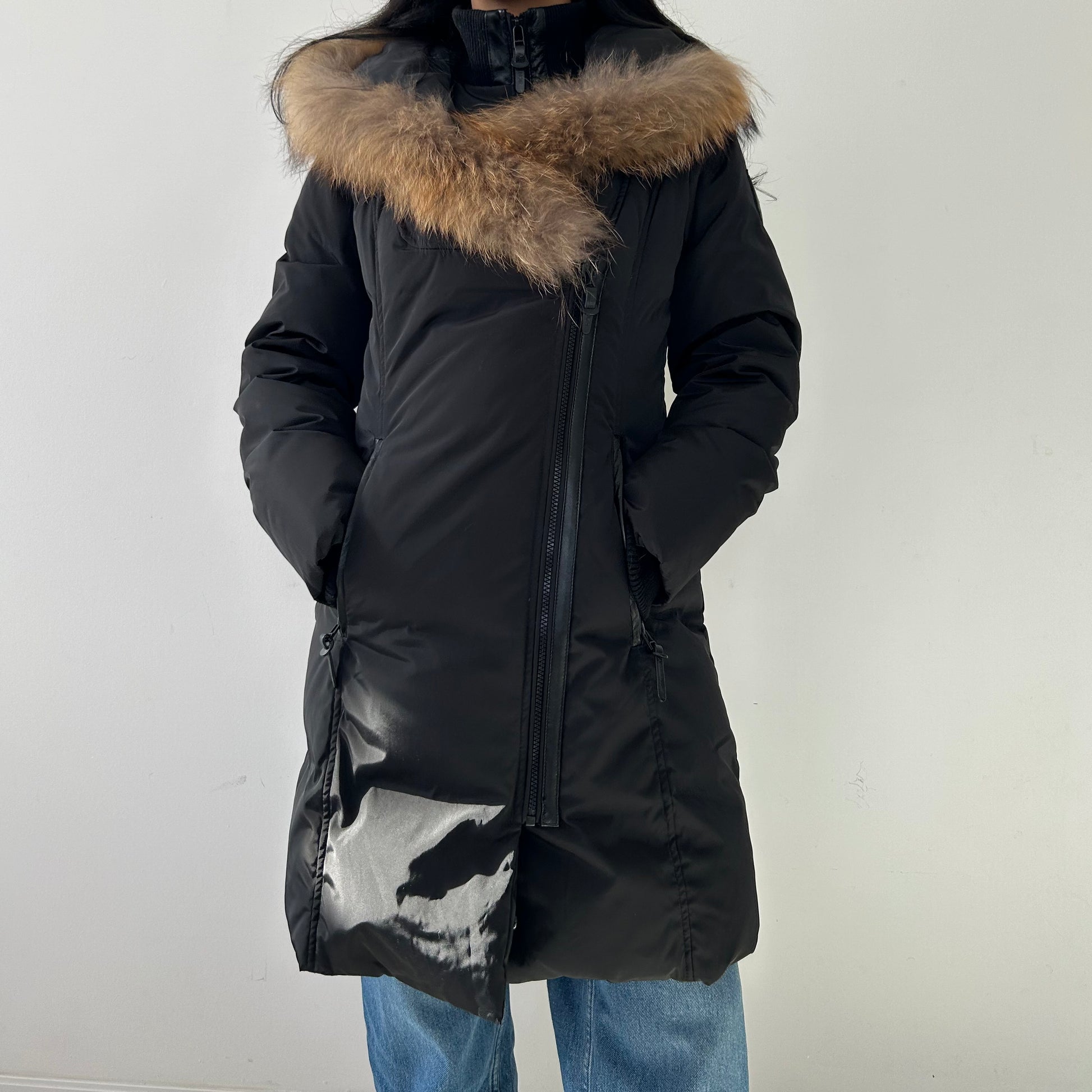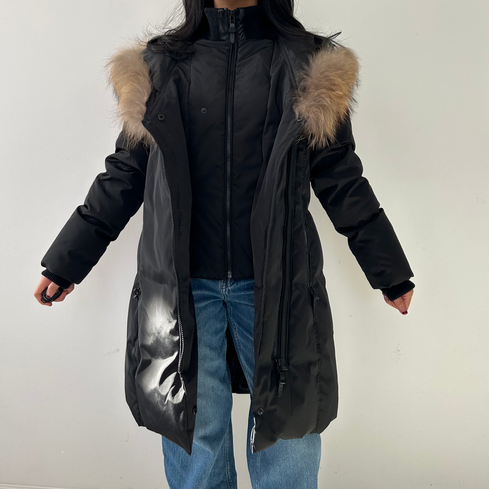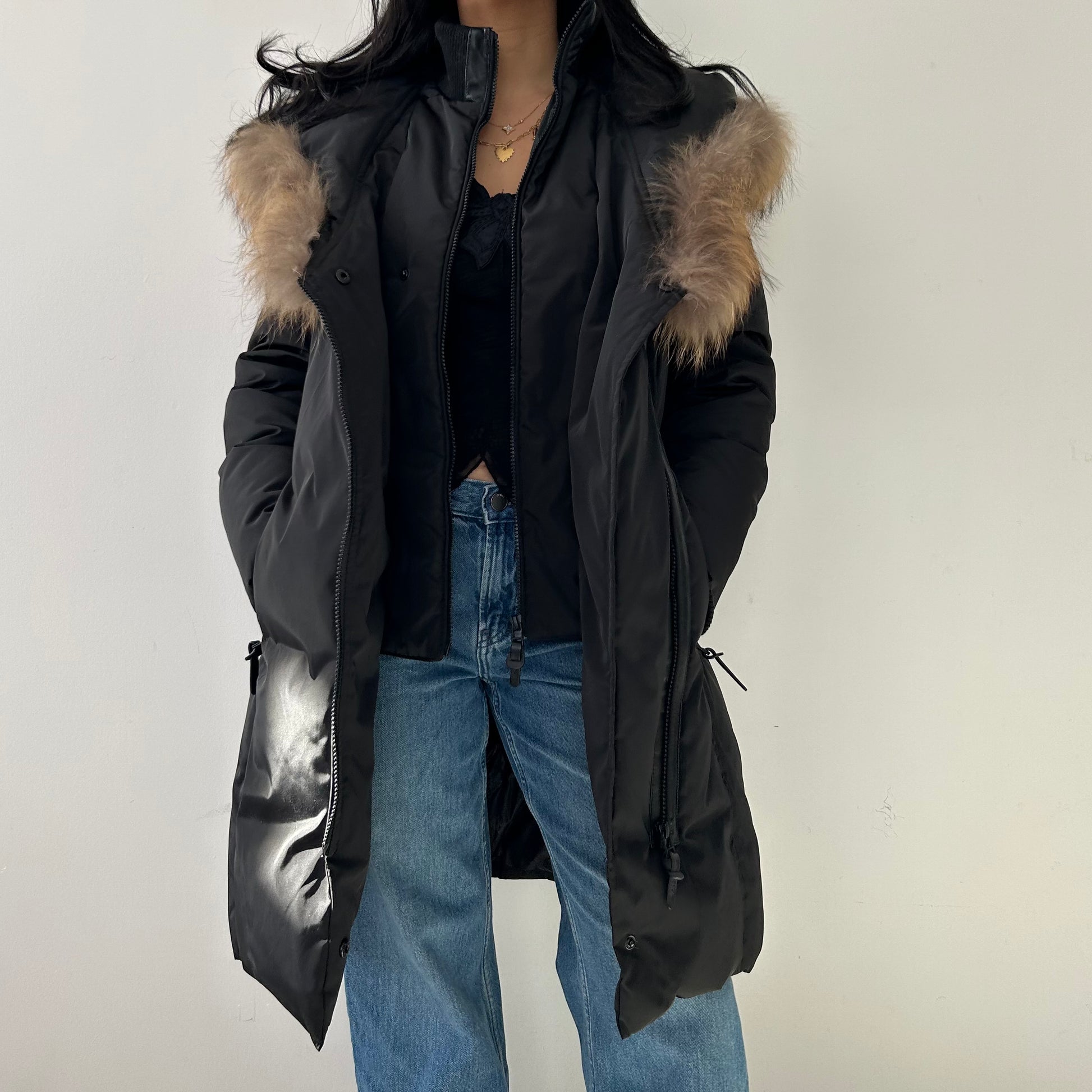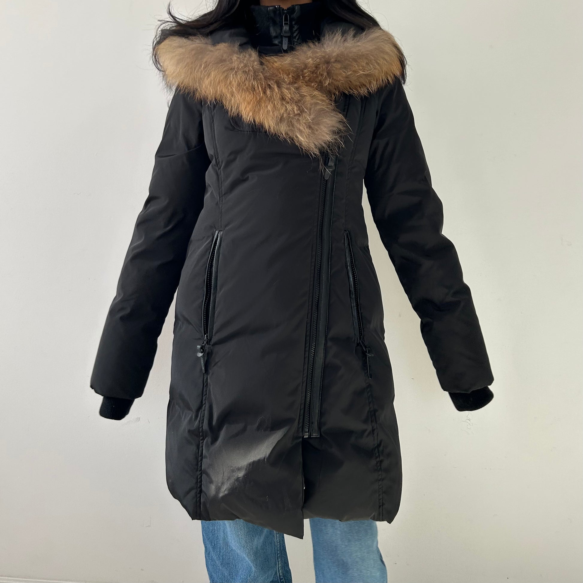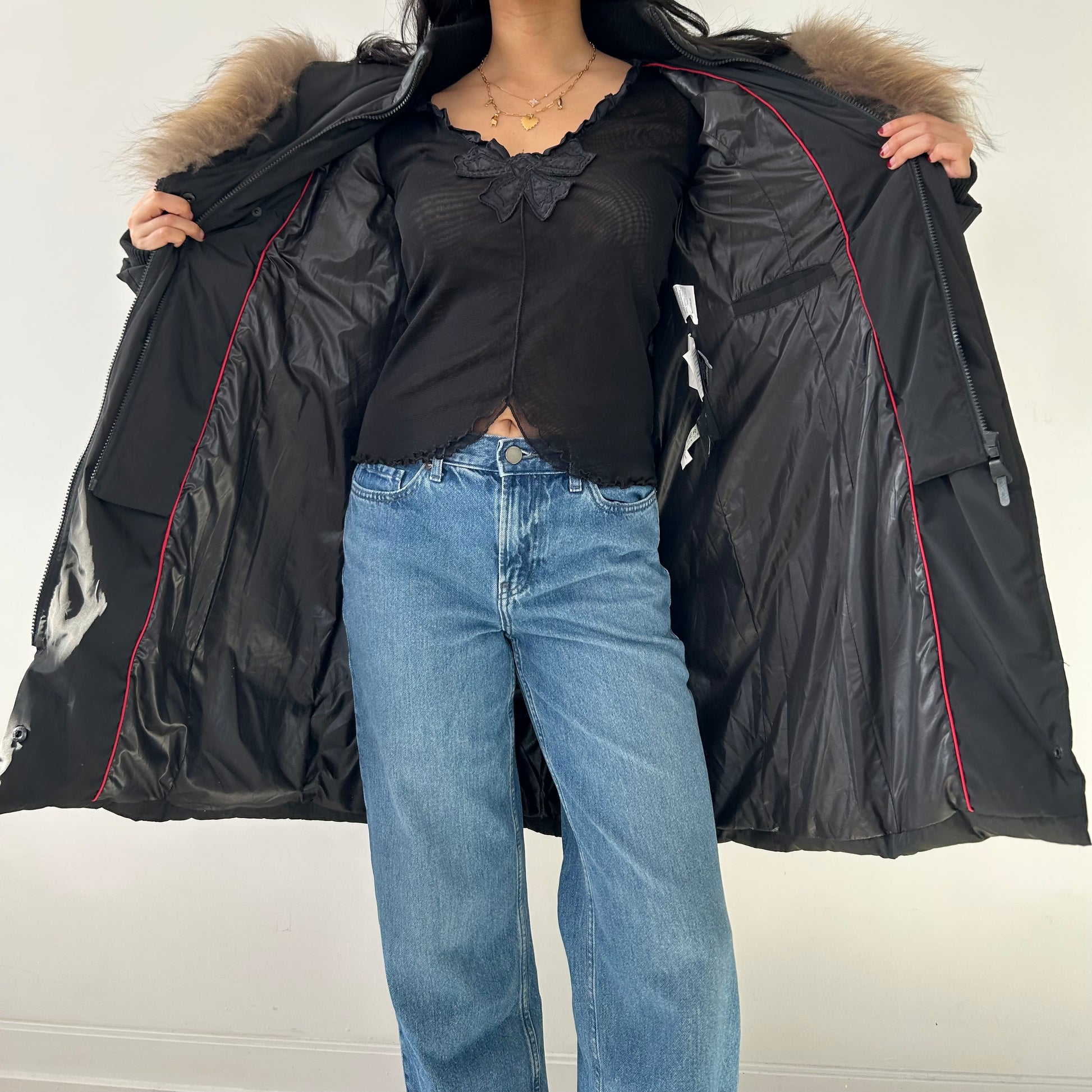 BNWT Atelier Noir by Rudsak Black Down Parka with Genuine Racoon Fur Trim - Medium