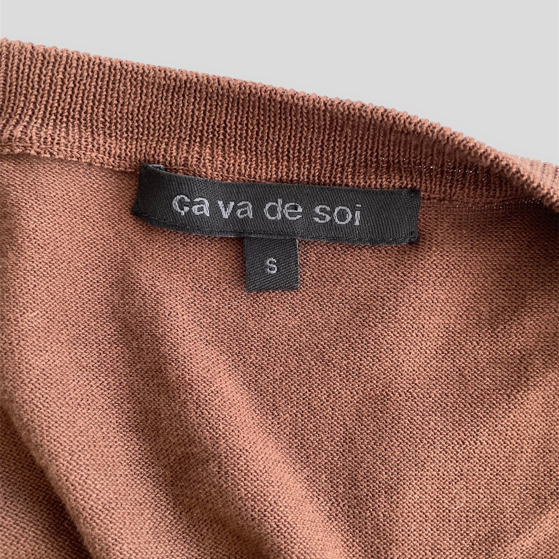 BNWT Vintage Deadstock ça va de soi Brown Knit Cotton Crewneck Cardigan - Small