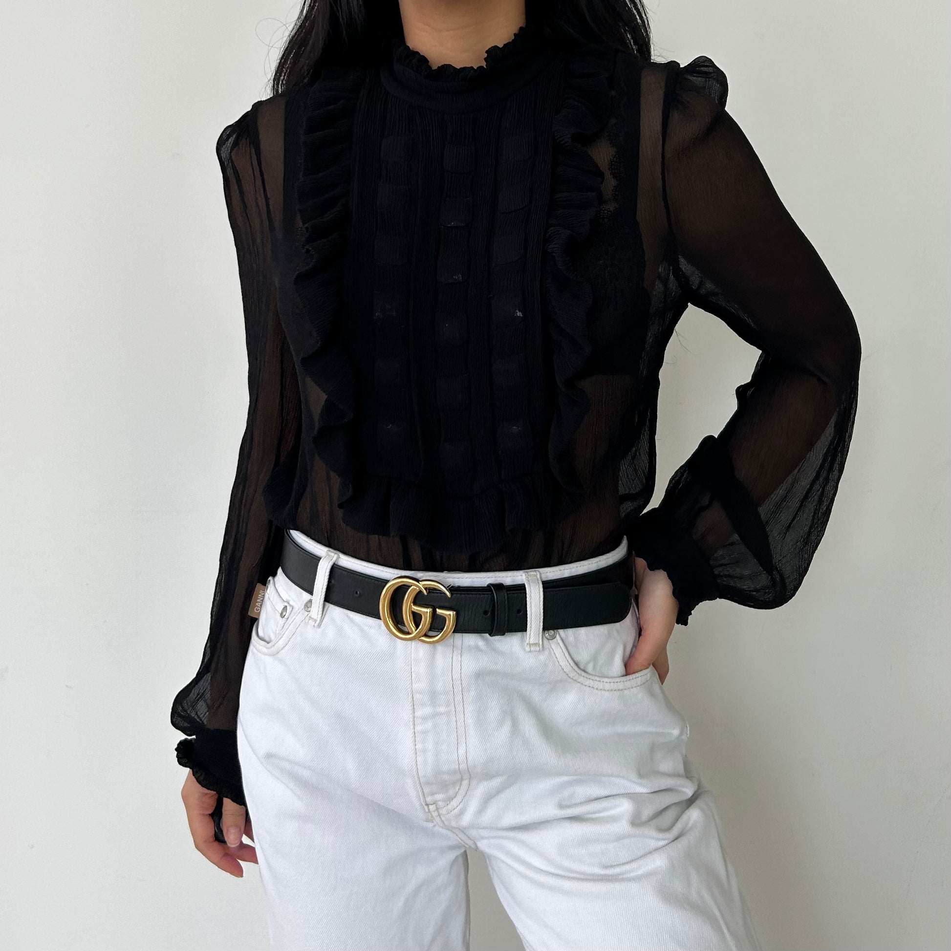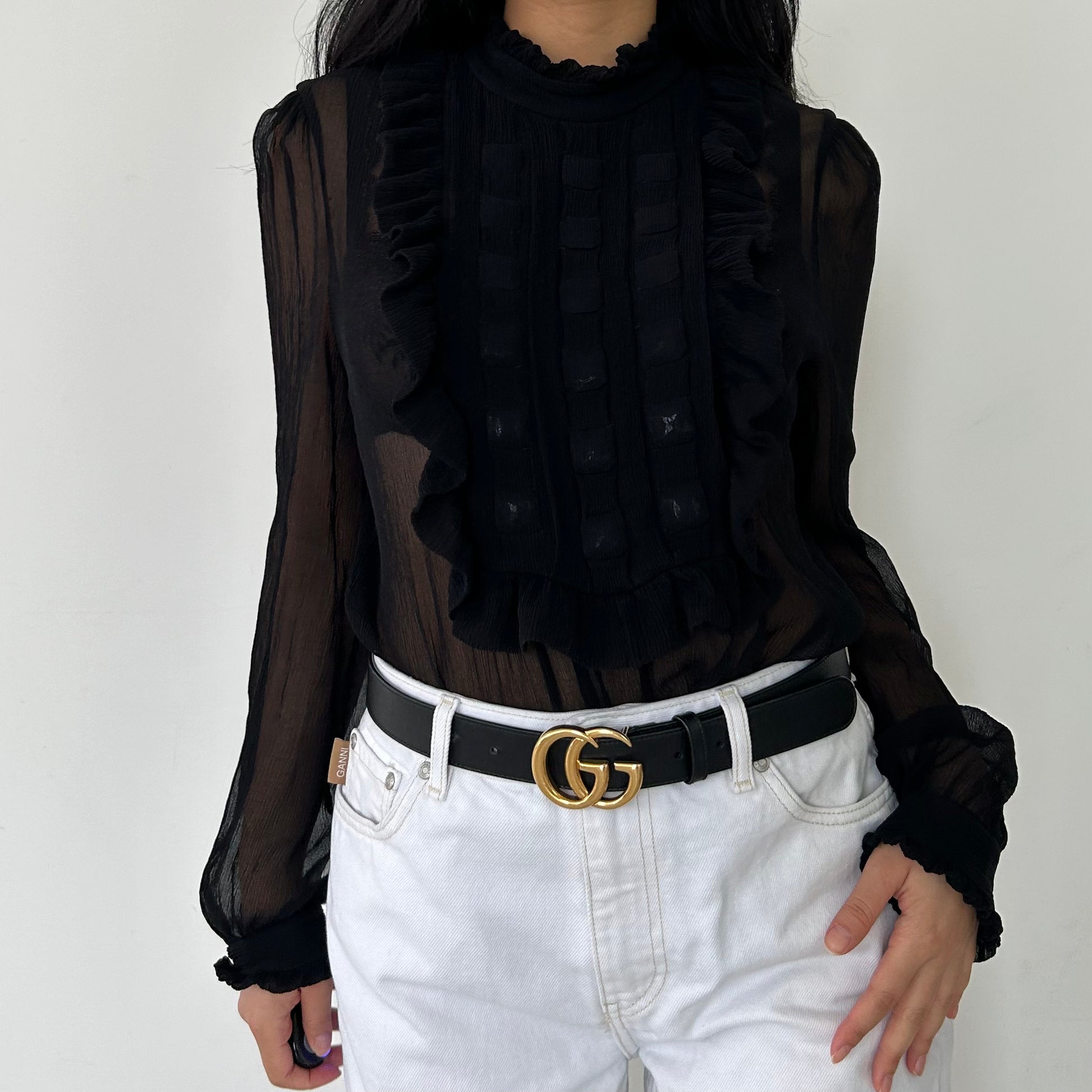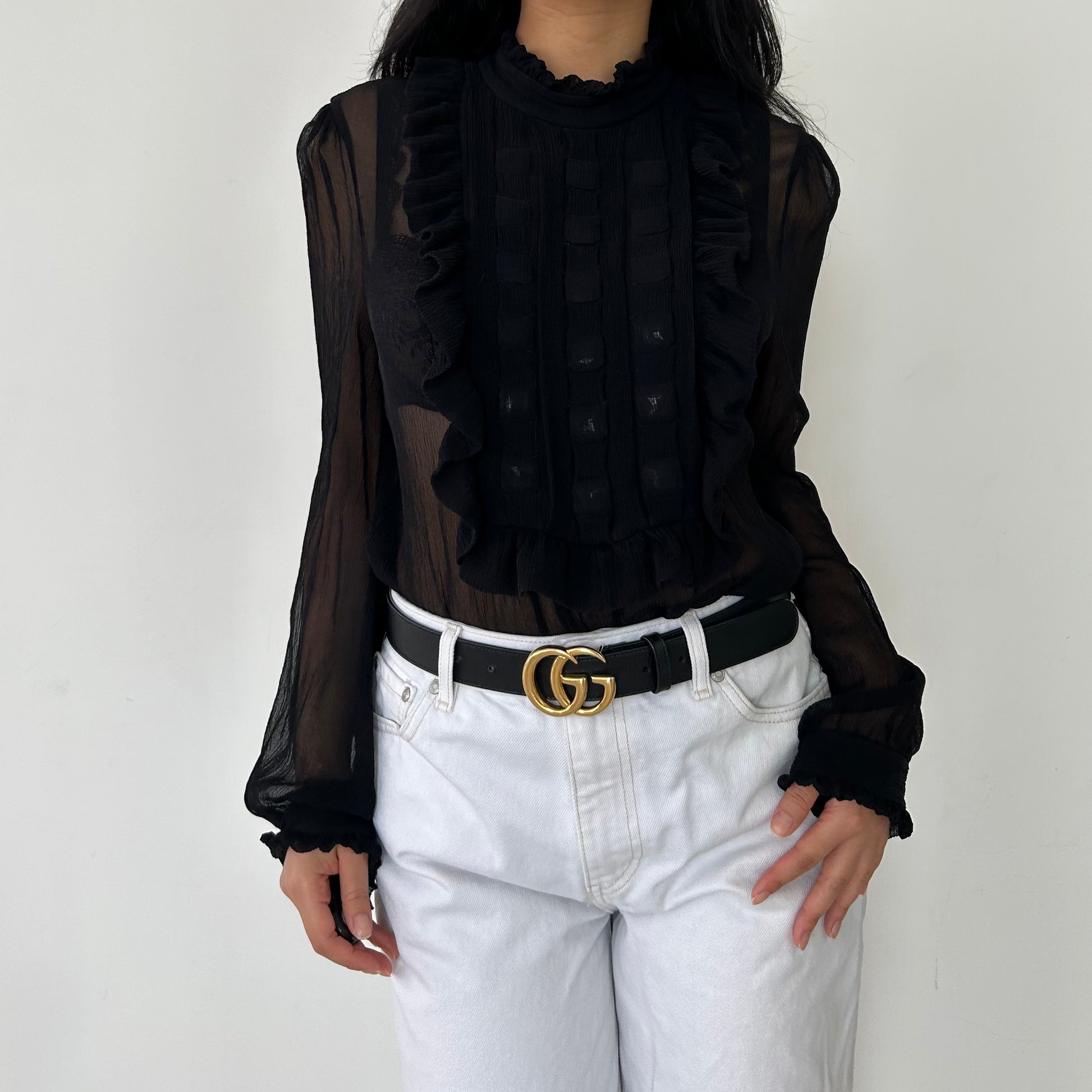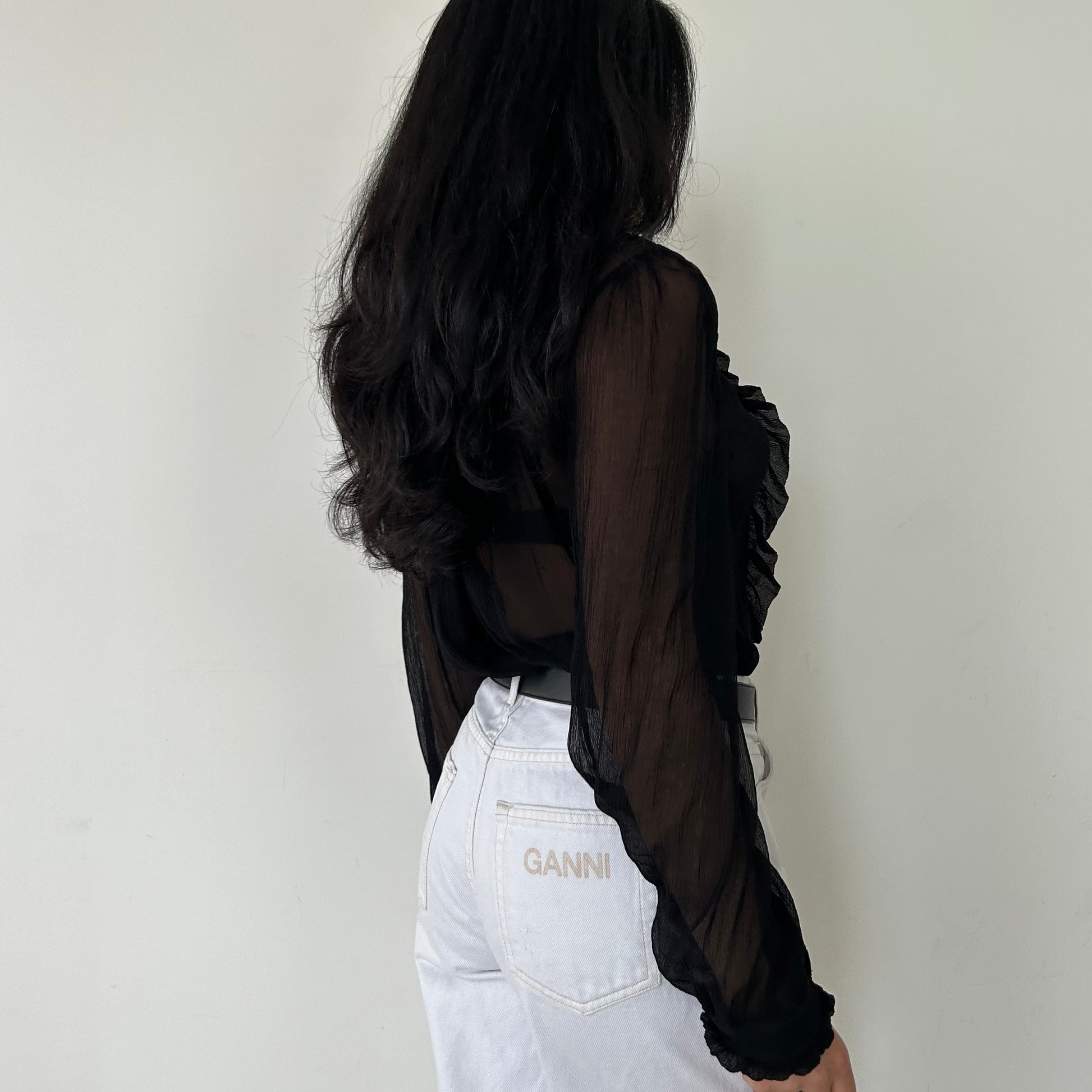 By Malene Birger Black Ruffle Silk Blouse - Medium