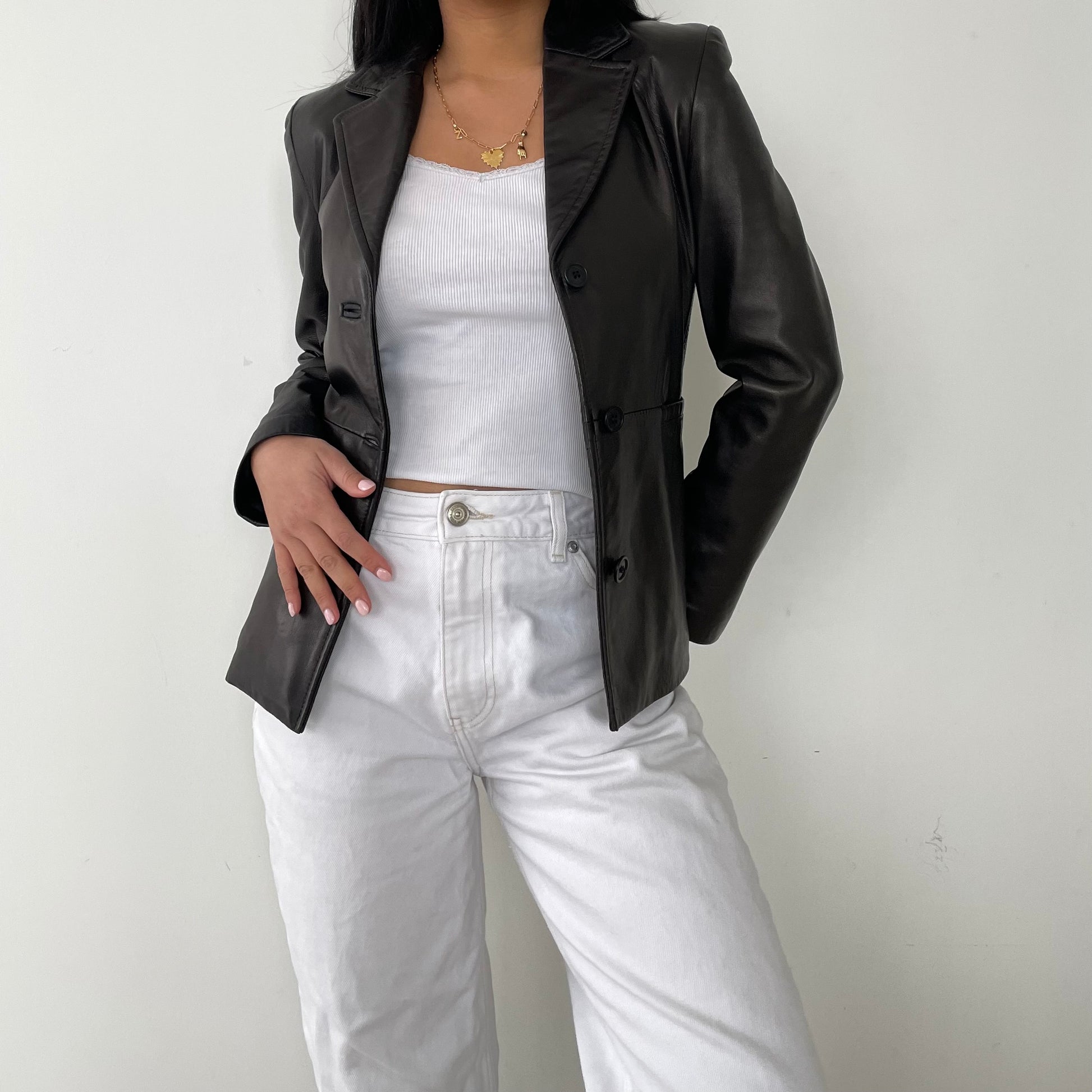 Danier Made in Canada Dark Brown Leather Blazer - X-Small