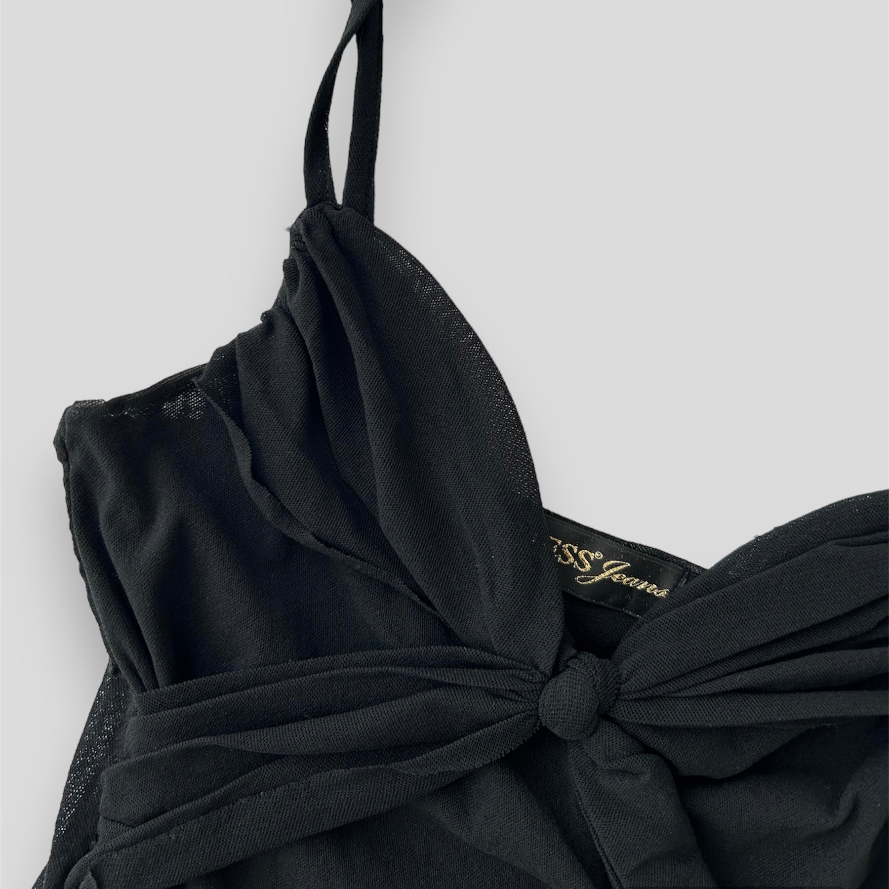 Deadstock BNWT Guess Jeans Black Mesh Knot Front Tank - Medium