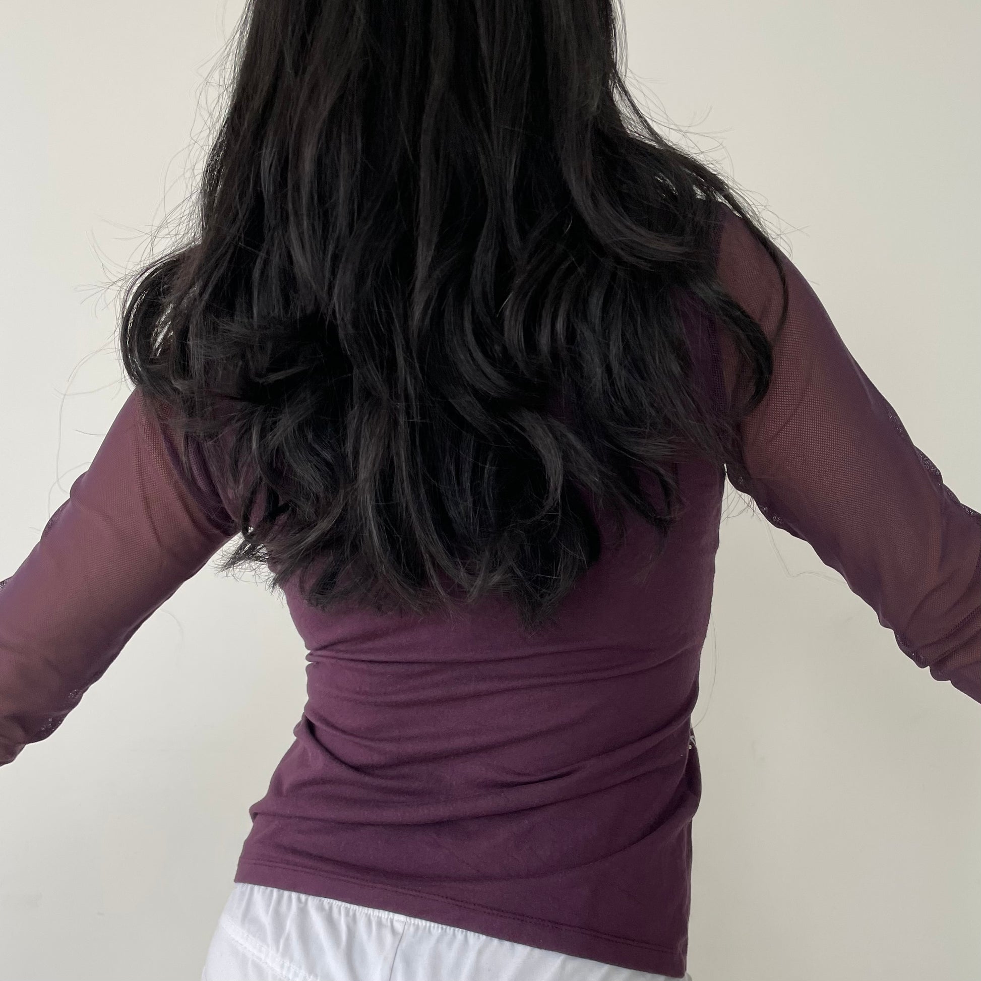 Dolce and Gabbana Plum Purple Long Sleeve Mesh Graphic Tee - Small/Medium