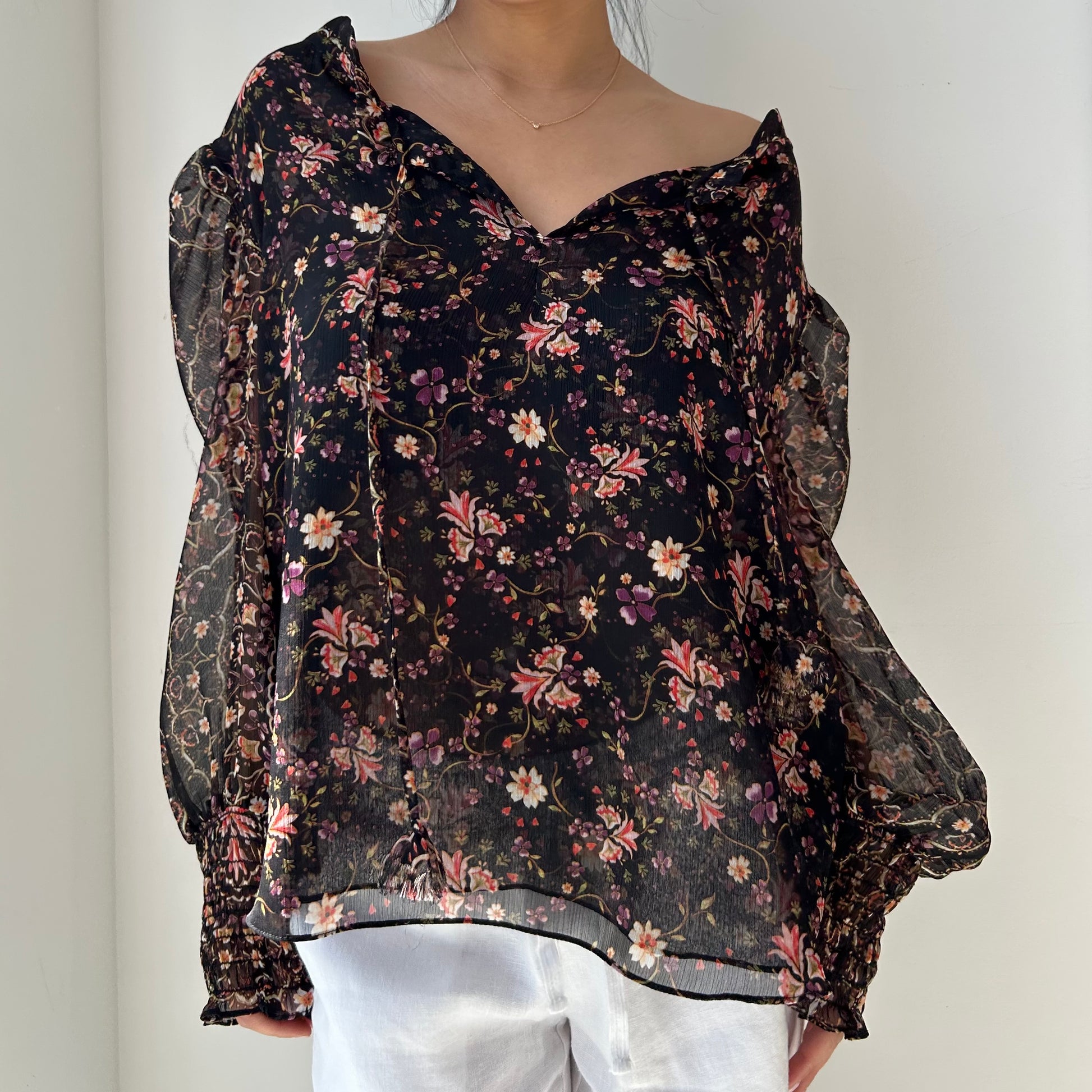 Misa Los Angeles Black Floral Long Sleeve Blouse - X-Large