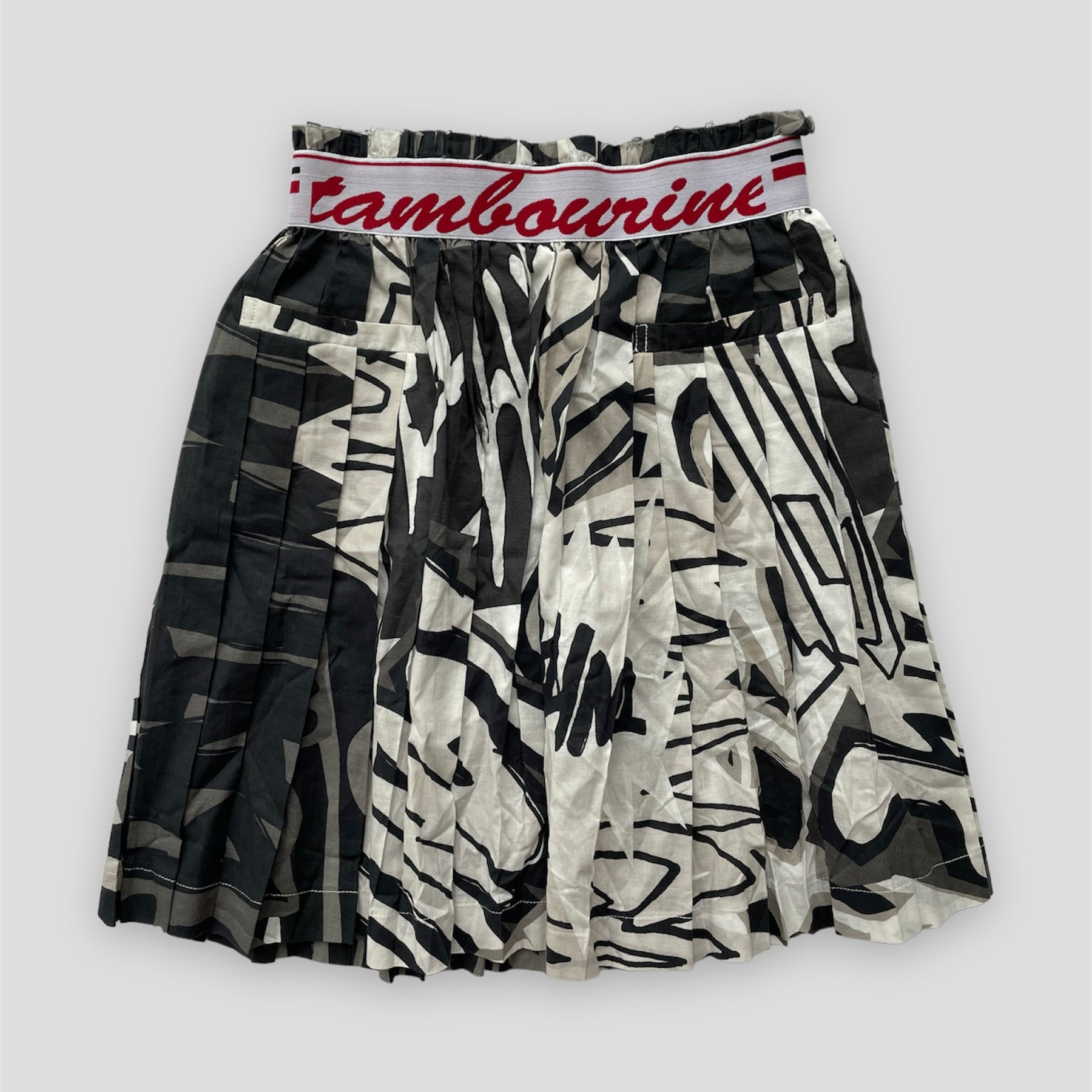 - Details: White elasticated waistband with red and black stripes and the 'Tambourine' logo; black and white monochrome abstract print; pleated skirt; two back pockets; most likely from the 2012/2013 collection