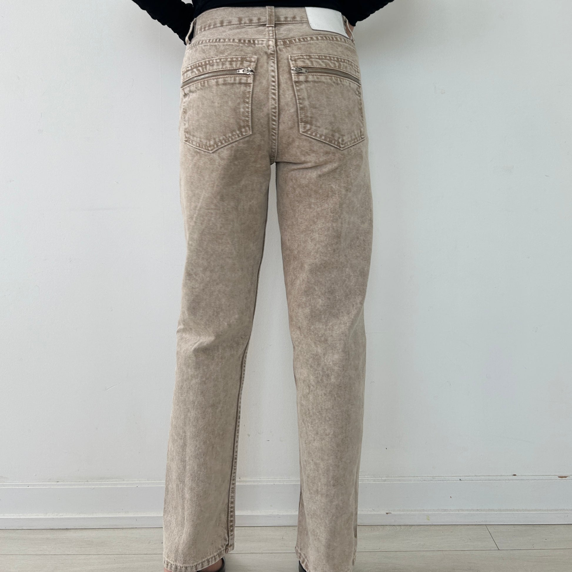 - Details: 'Cropped Straight Jeans'; mid-rise; taupe coloured acid-wash; straight leg silhouette; classic five-pocket design with added zipper details on the back pockets