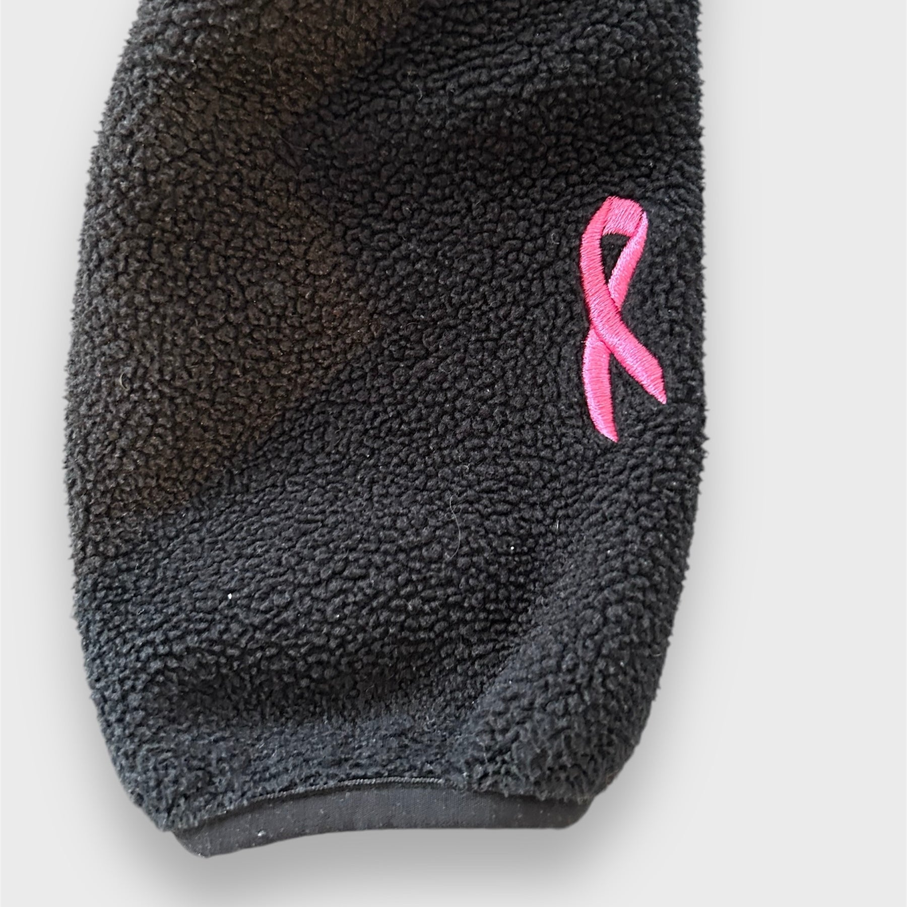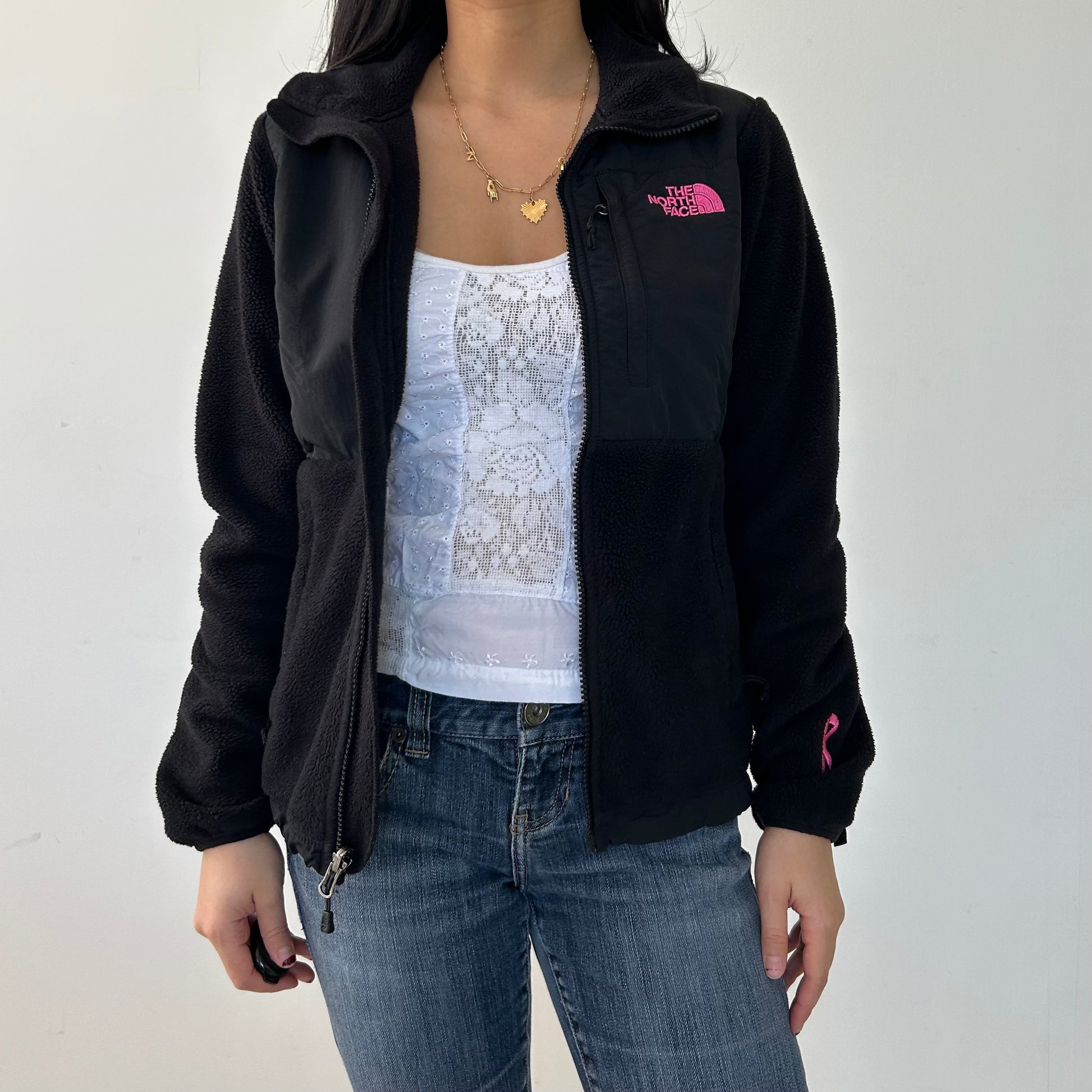 - Details: Limited edition Denali jacket for breast cancer awareness; pink embroidered ribbon on the left sleeve; pink embroidered logo on left chest and back-right shoulder; relaxed fit; woven overlay on collar, chest, back yoke, and lower-back sleeves; stand collar; covered zip chest pocket; exposed zip hand pockets; internal drawcord with cord locks at hem for adjustability; 'Polartec recycled'