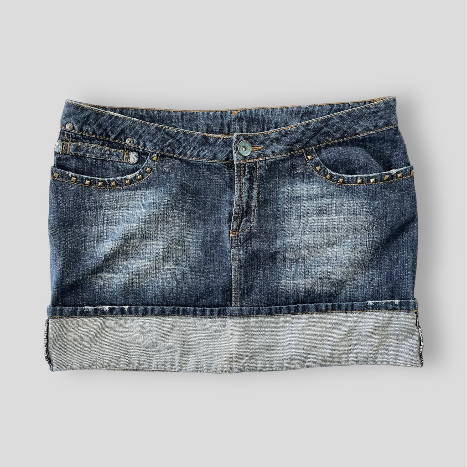 Early 2000s Mango Cuff Mini Denim Skirt - Medium
