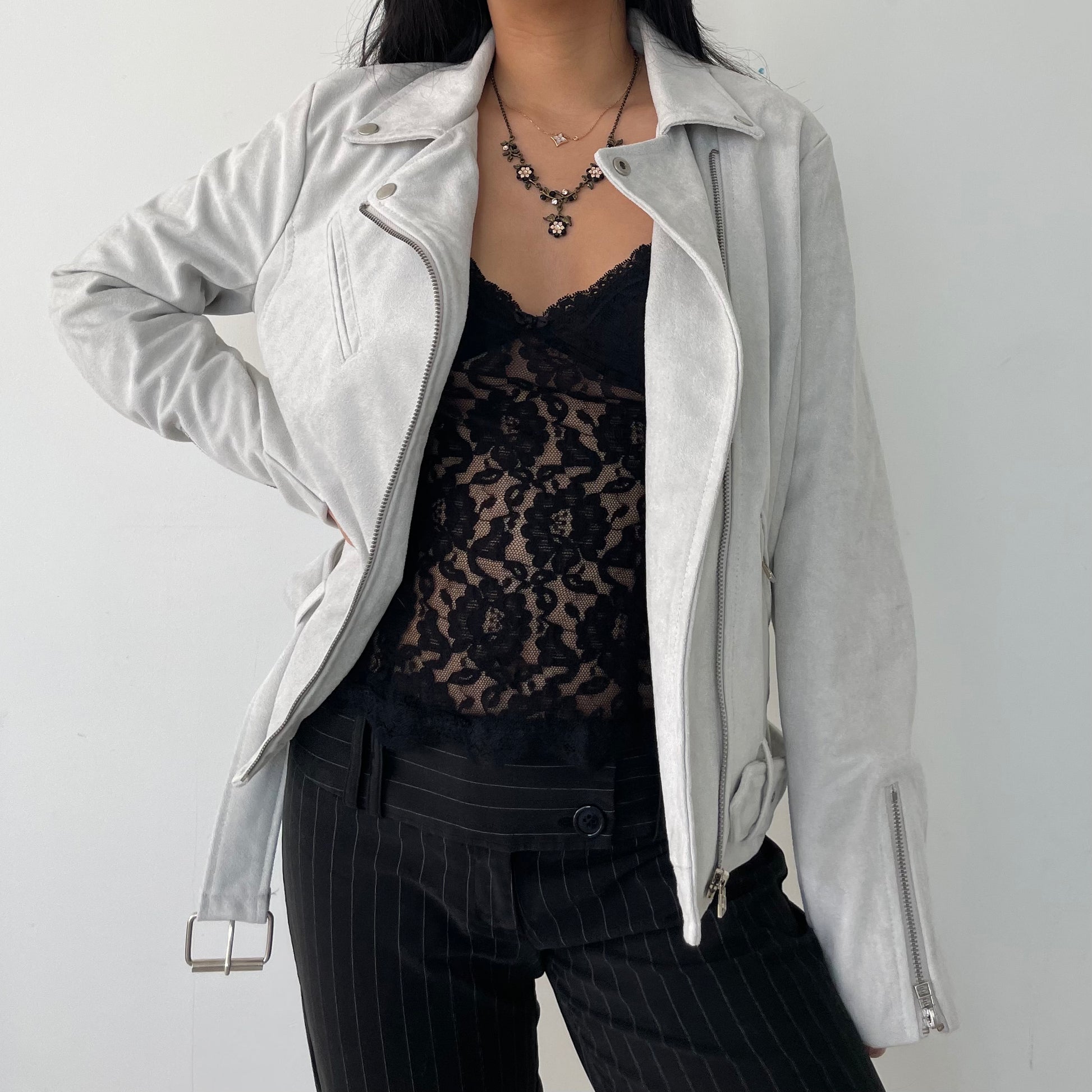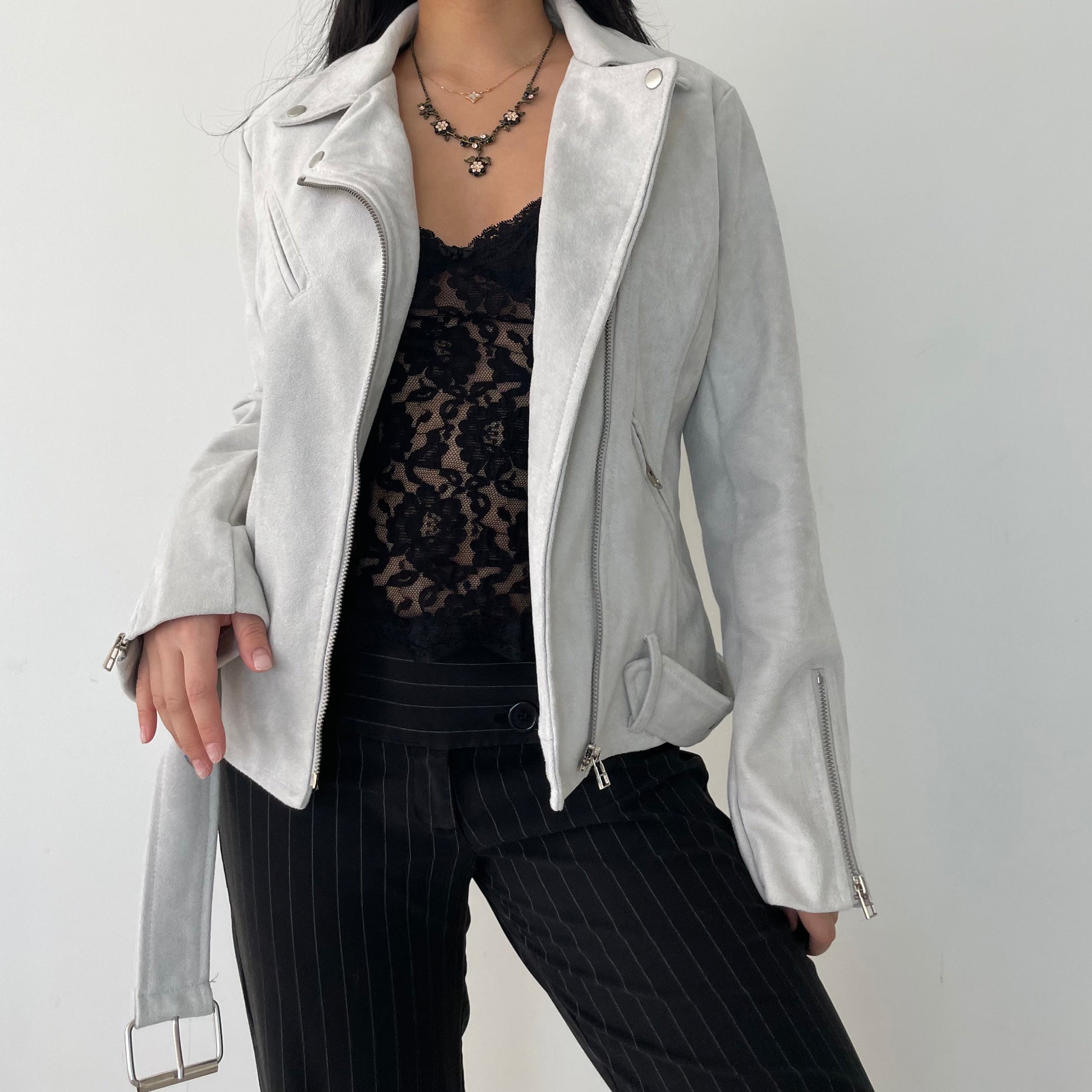 Lioness Light Grey Faux Suede Moto Jacket - Medium