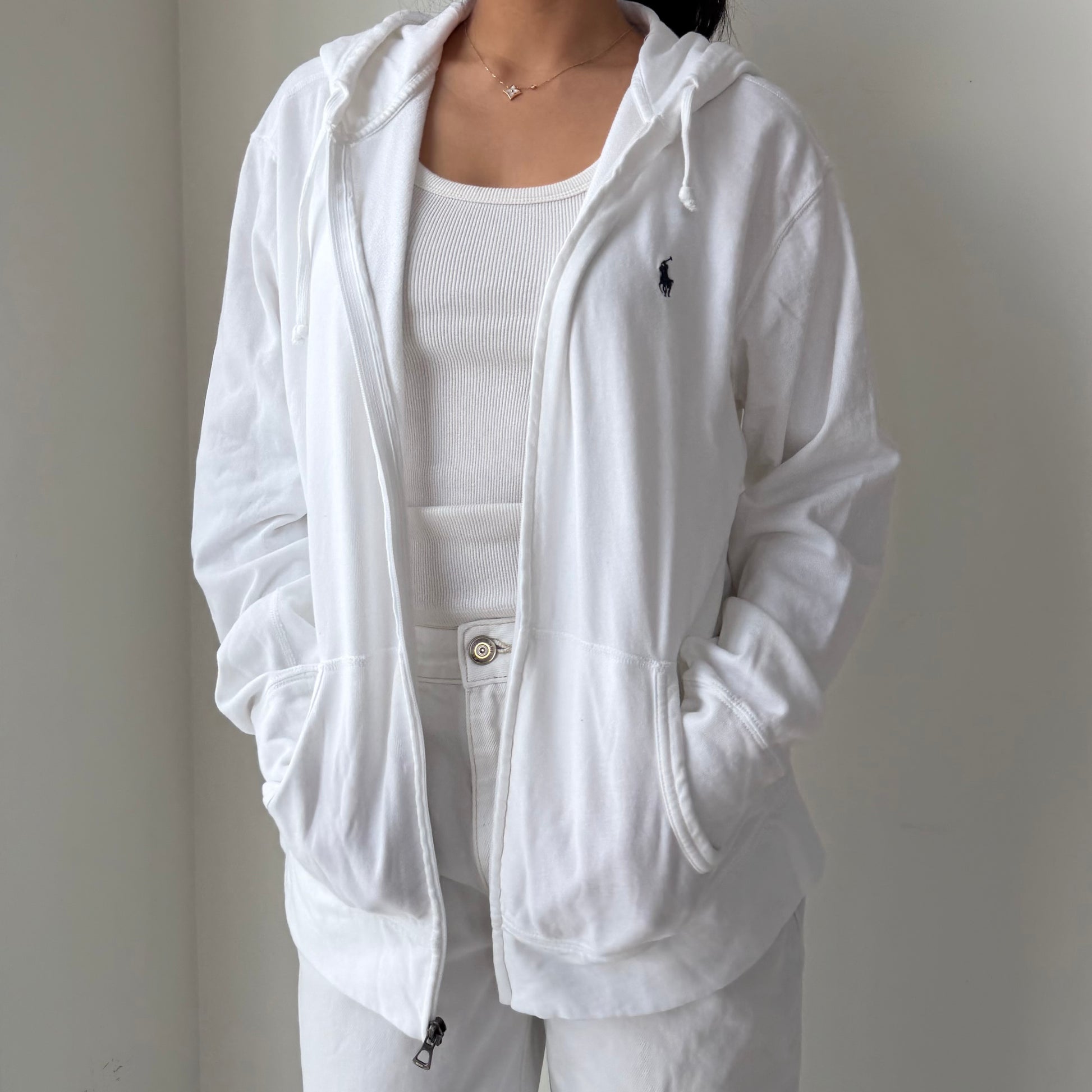 Polo Ralph Lauren White Full Zip Hoodie - Large