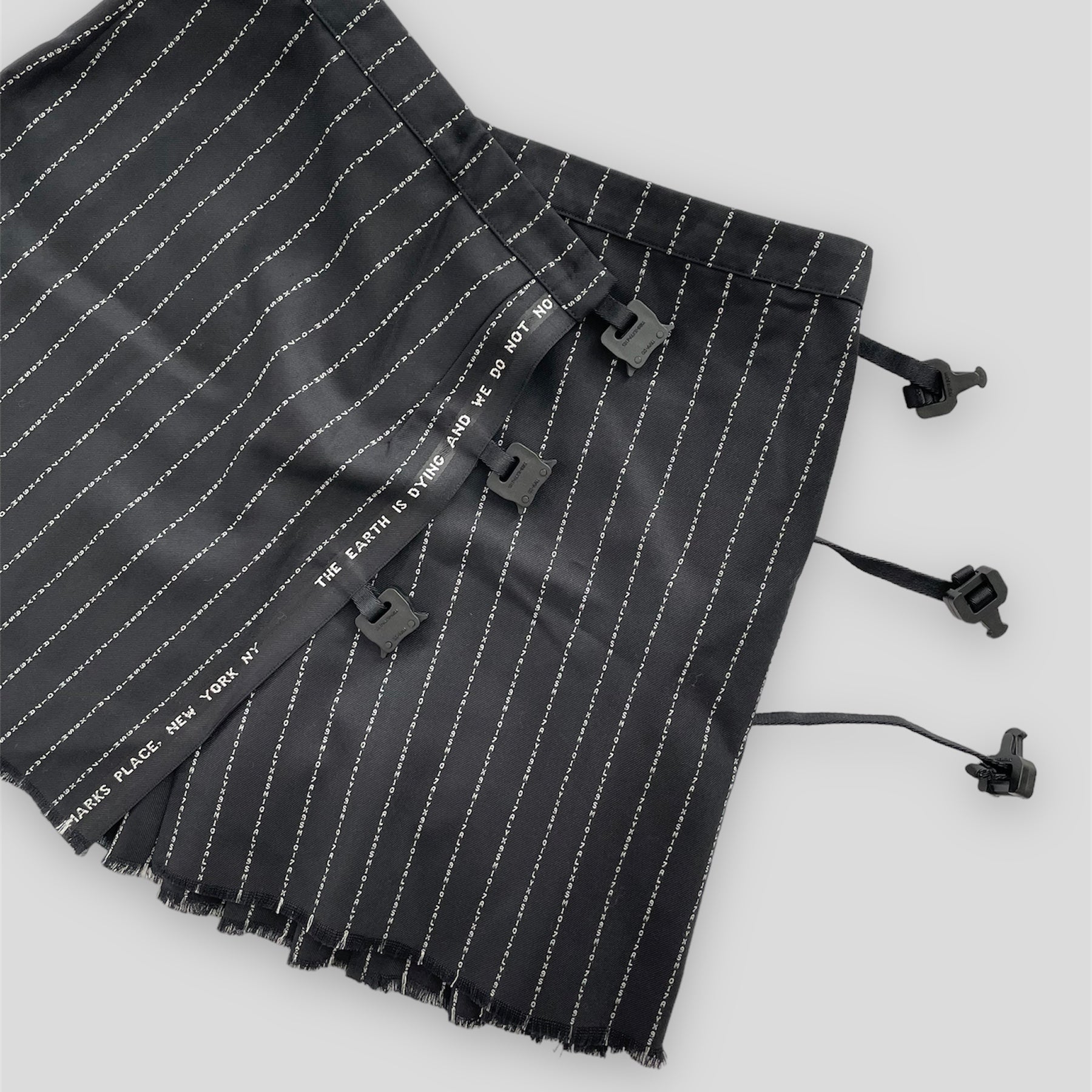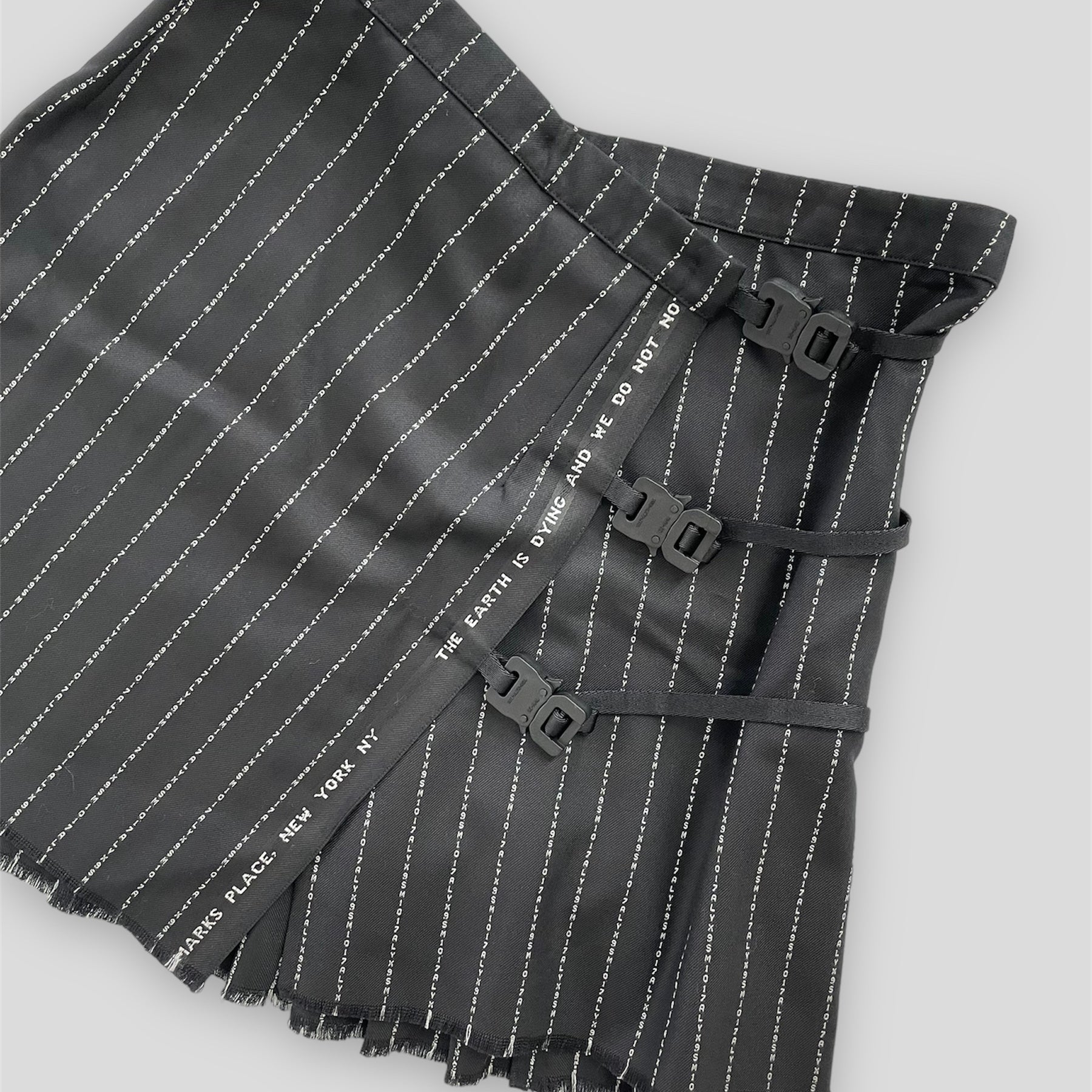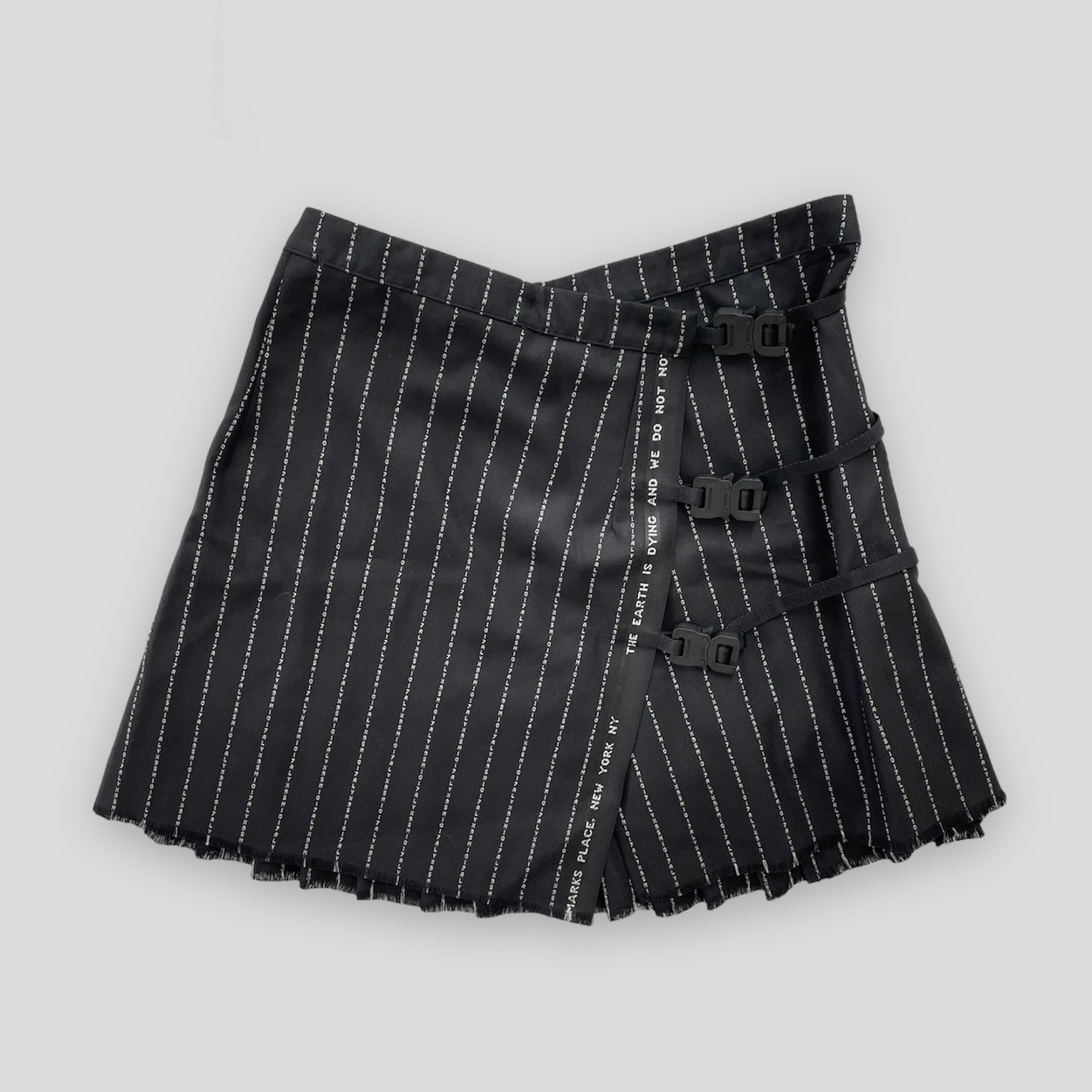1017 ALYX 9SM Wool & Cashmere Black Pinstripe Buckle Mini Skirt - W26