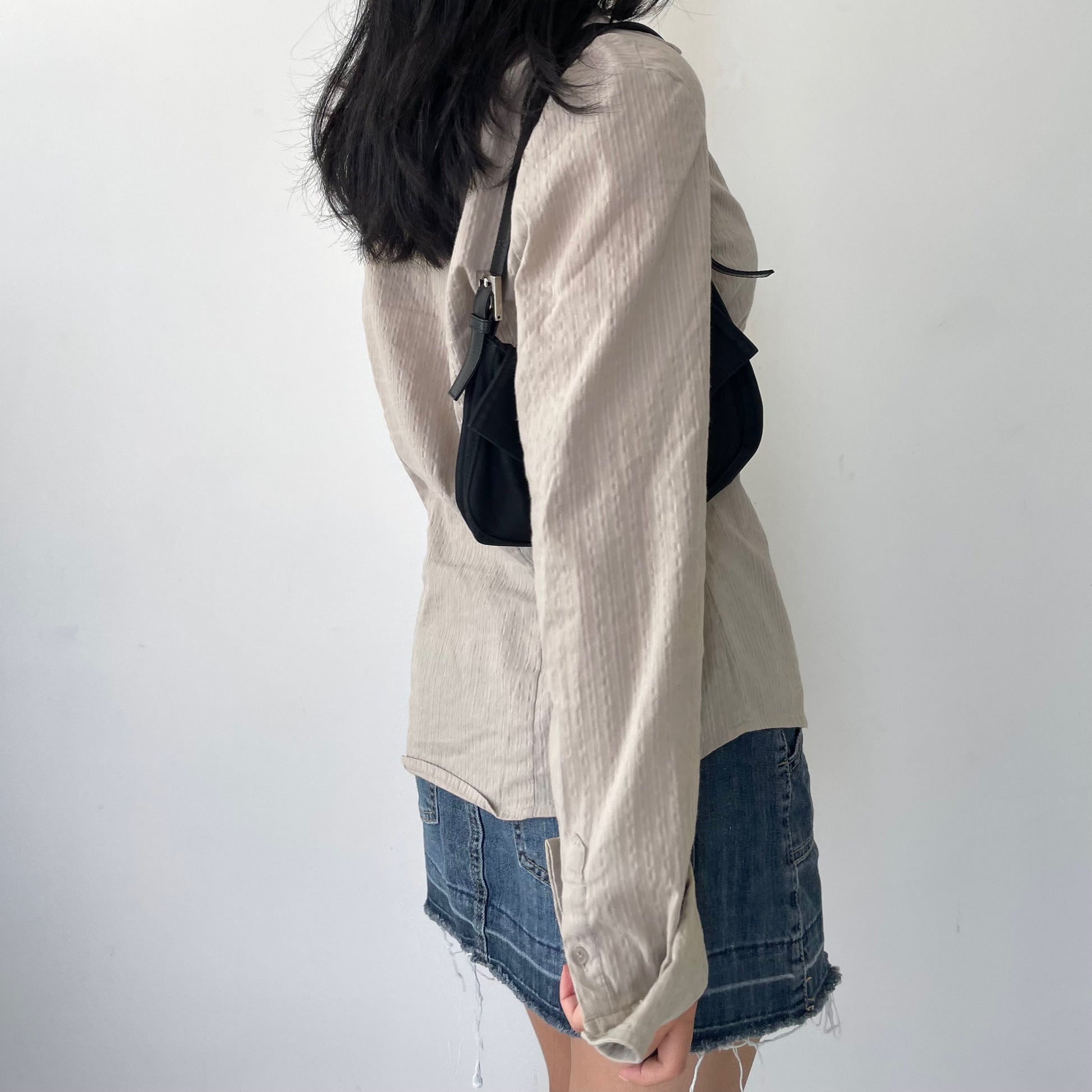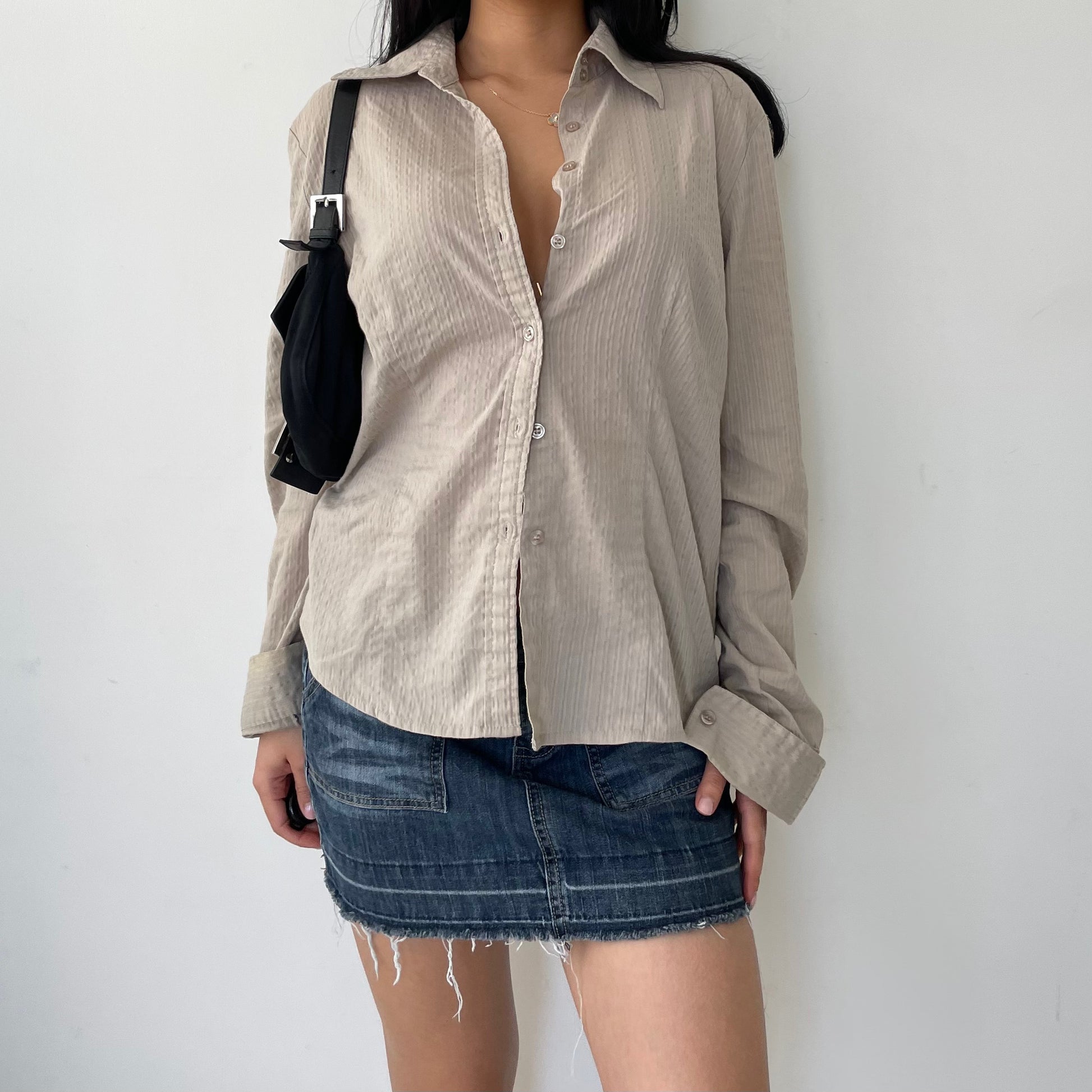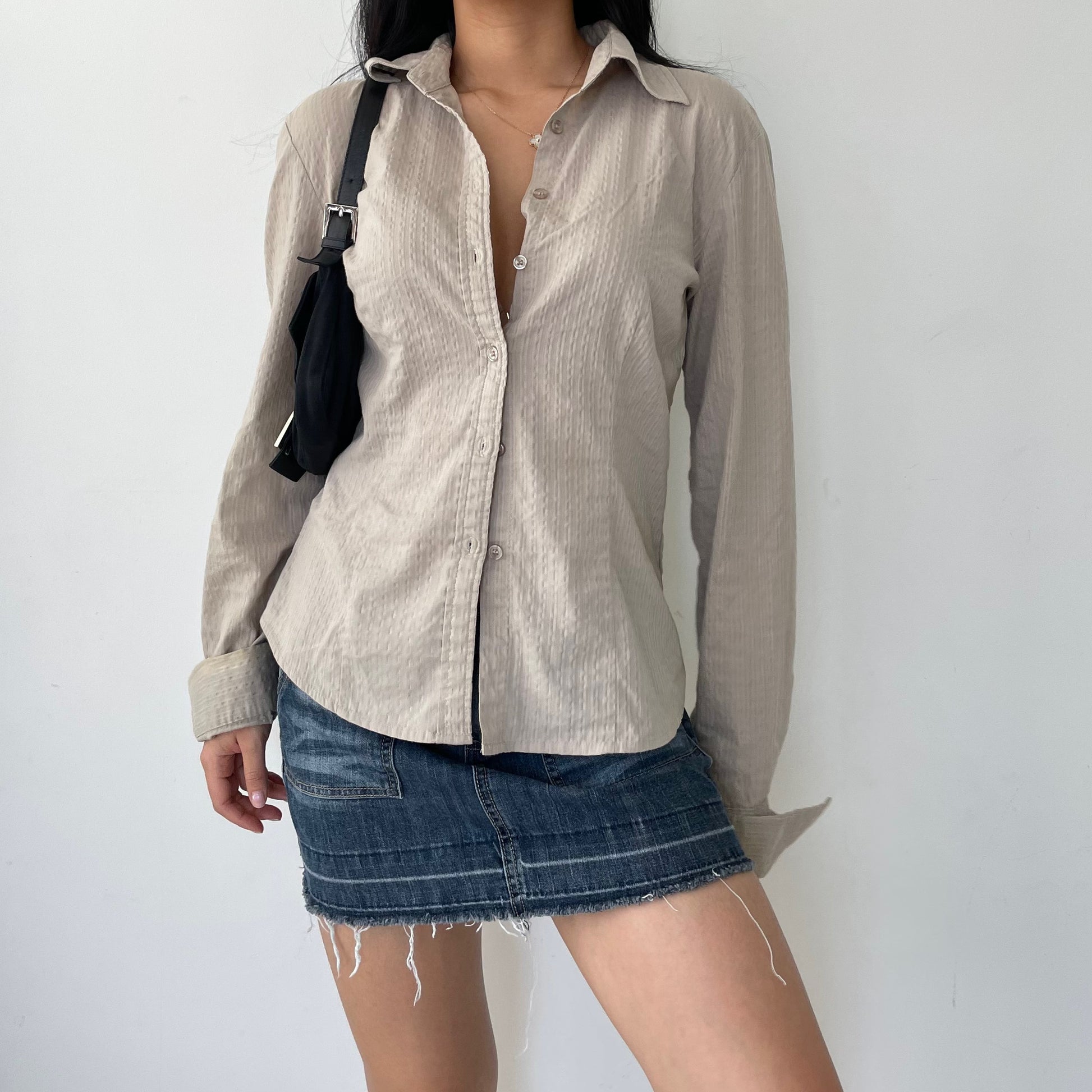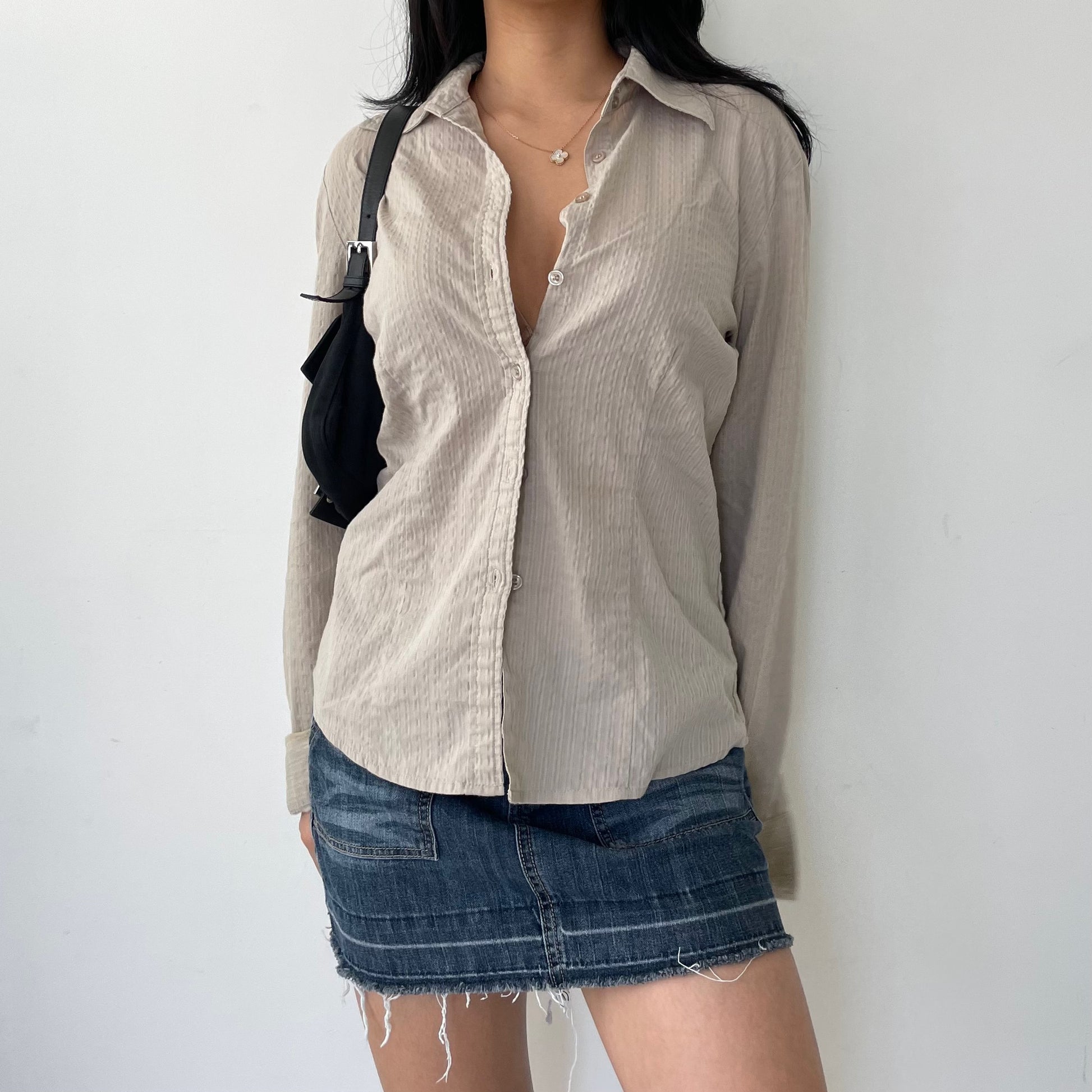 Anika Beige Long Sleeve Button Up Shirt - Medium