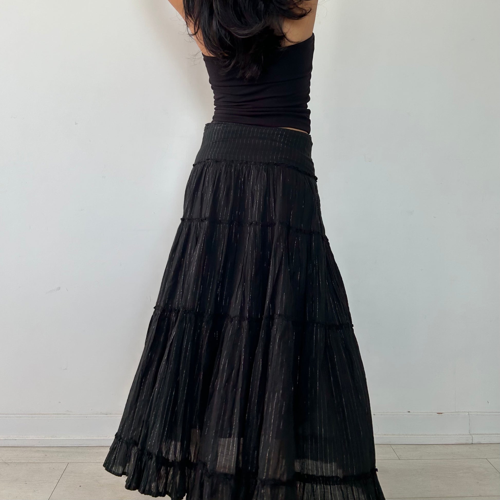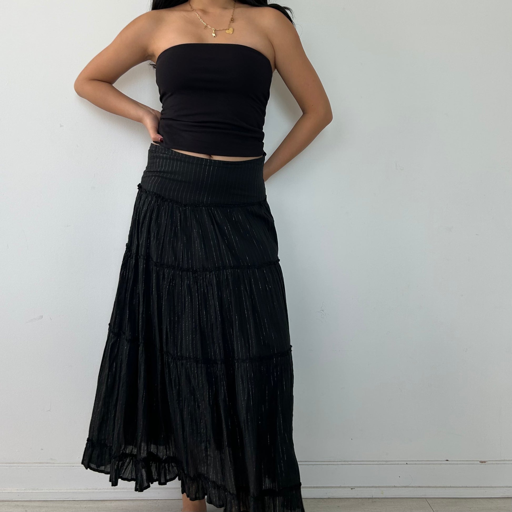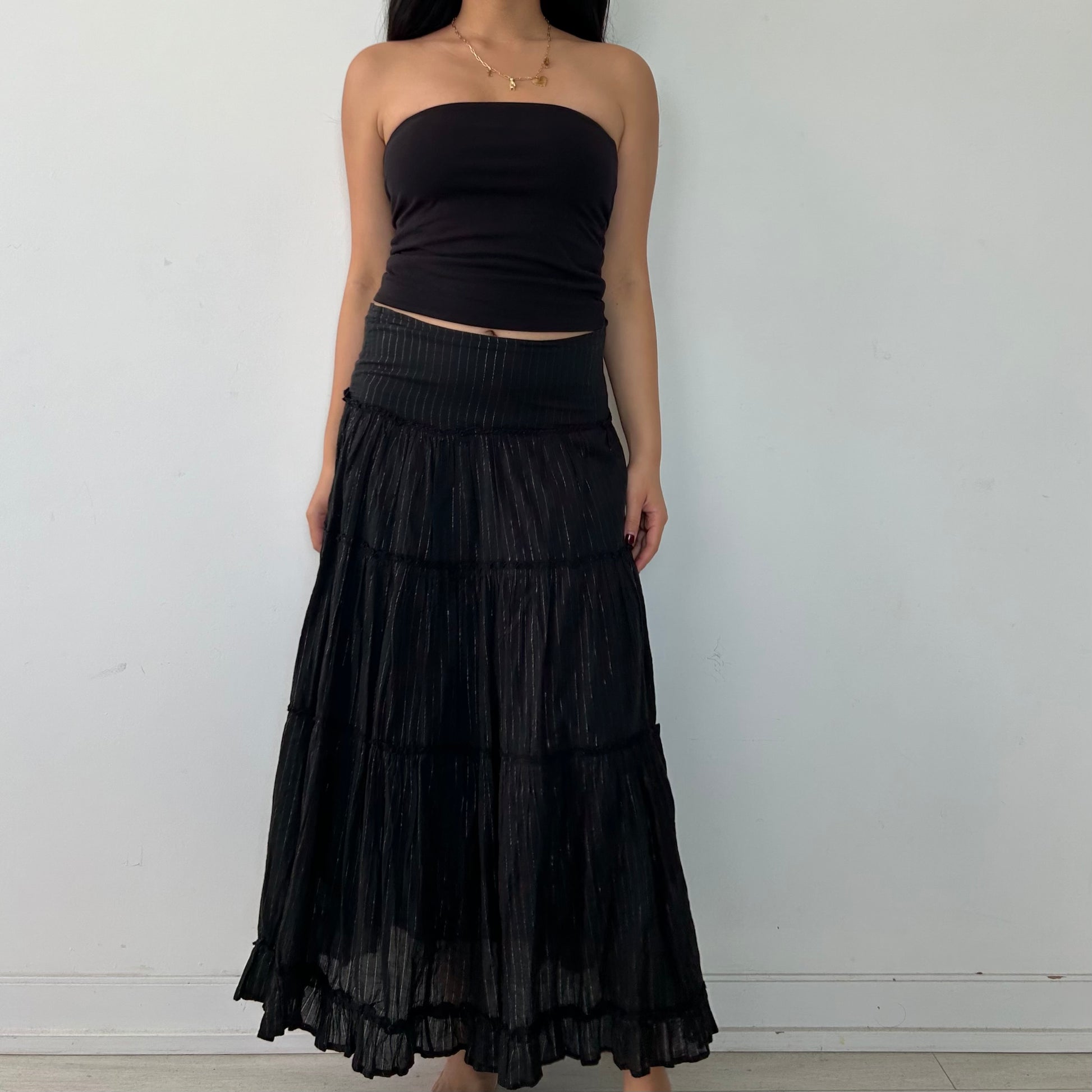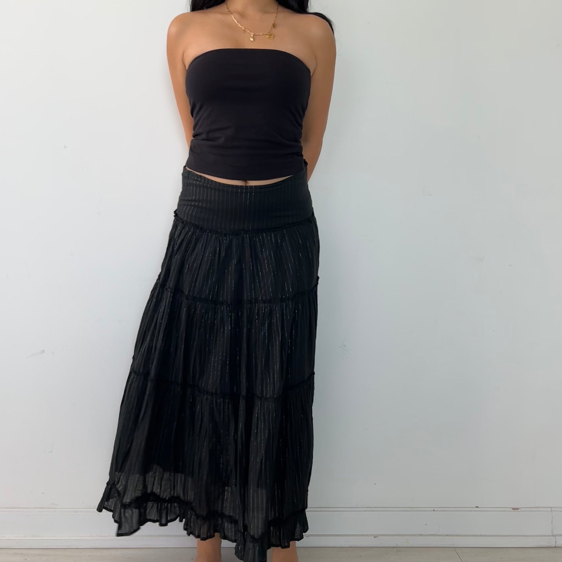 Black and Silver Pinstripe Tiered Maxi Skirt - Medium