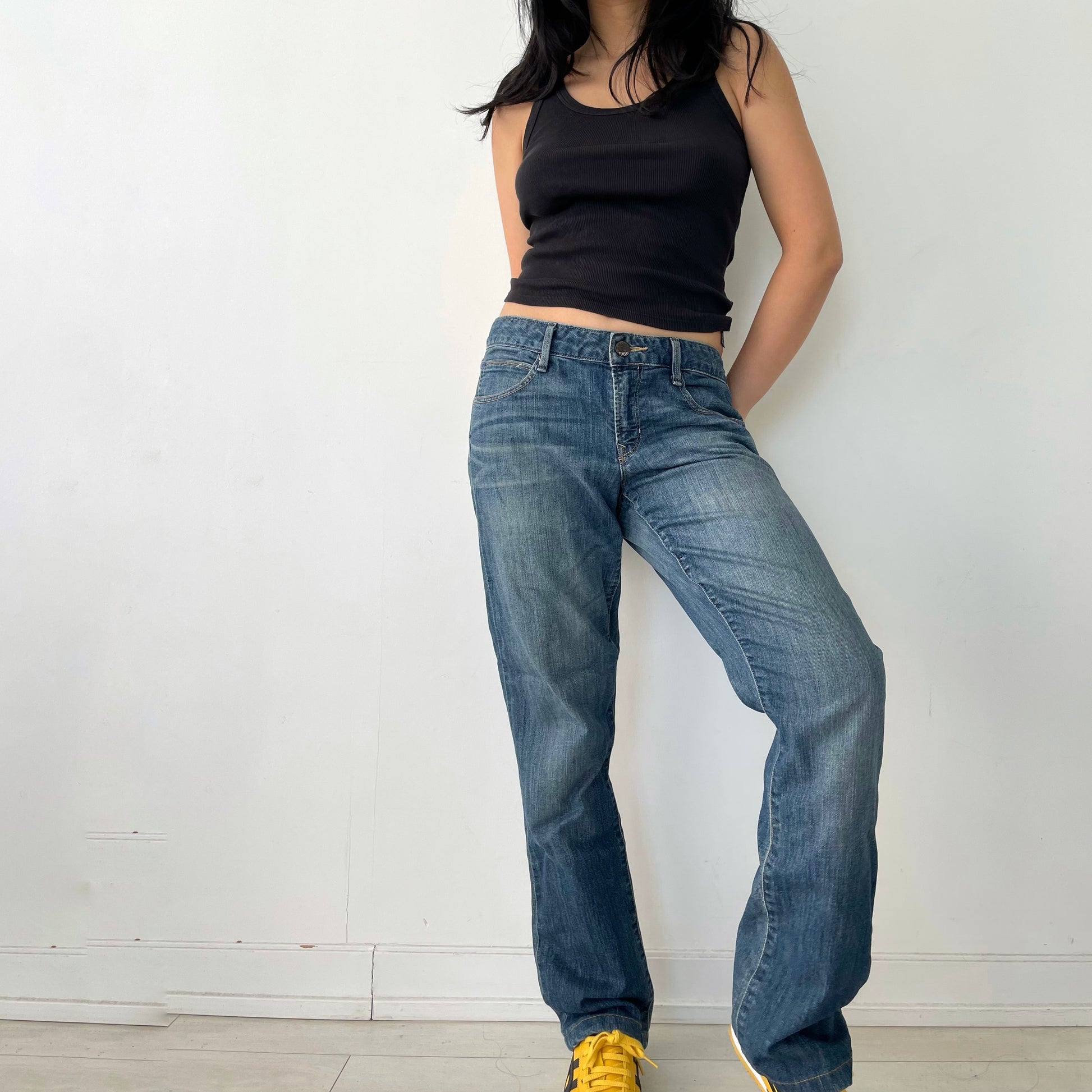 Model is 5'3 and normally wears W27. Jeans are pinned back to fit.