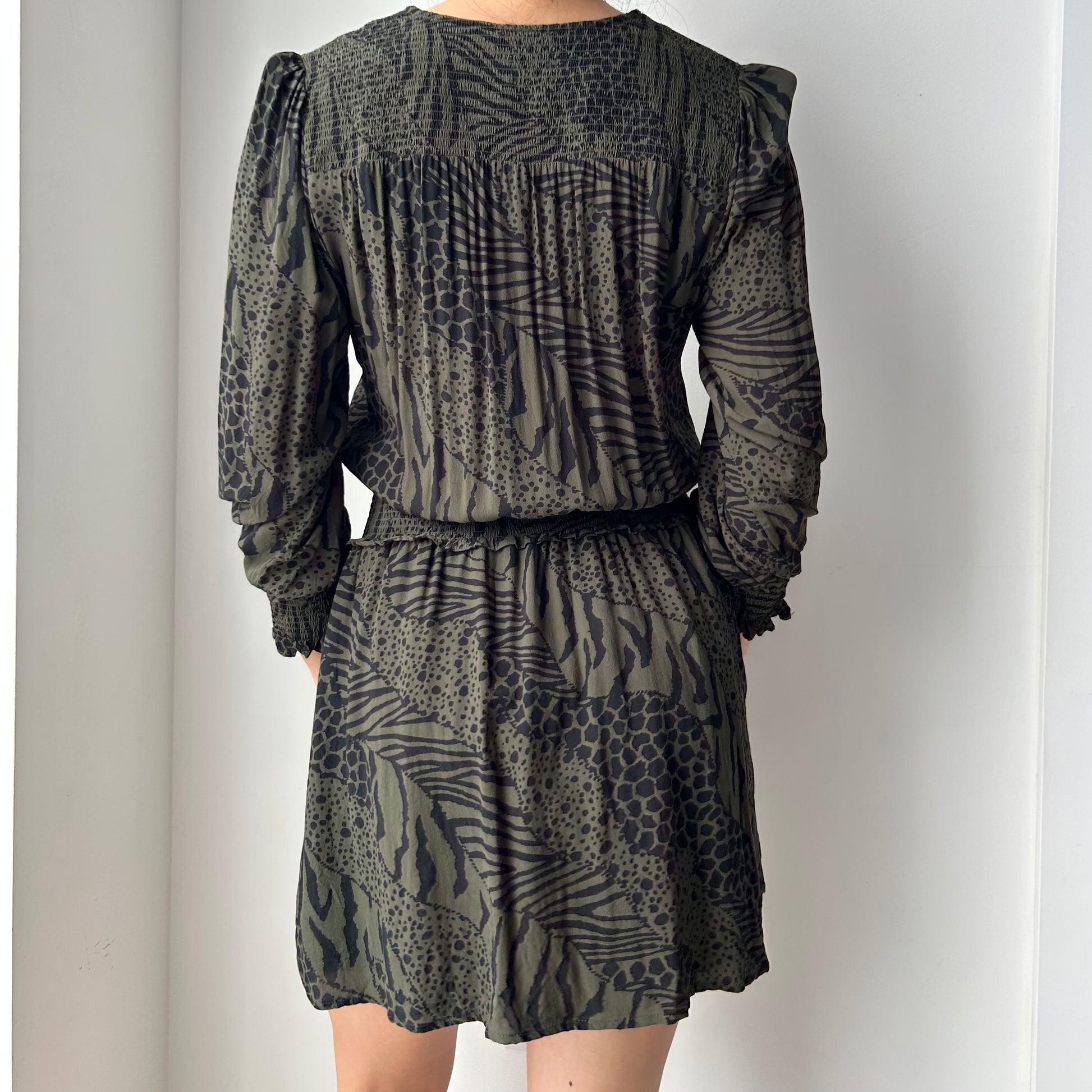 Rails Olive Green and Black Animal Print Long Sleeve Mini Dress - Small