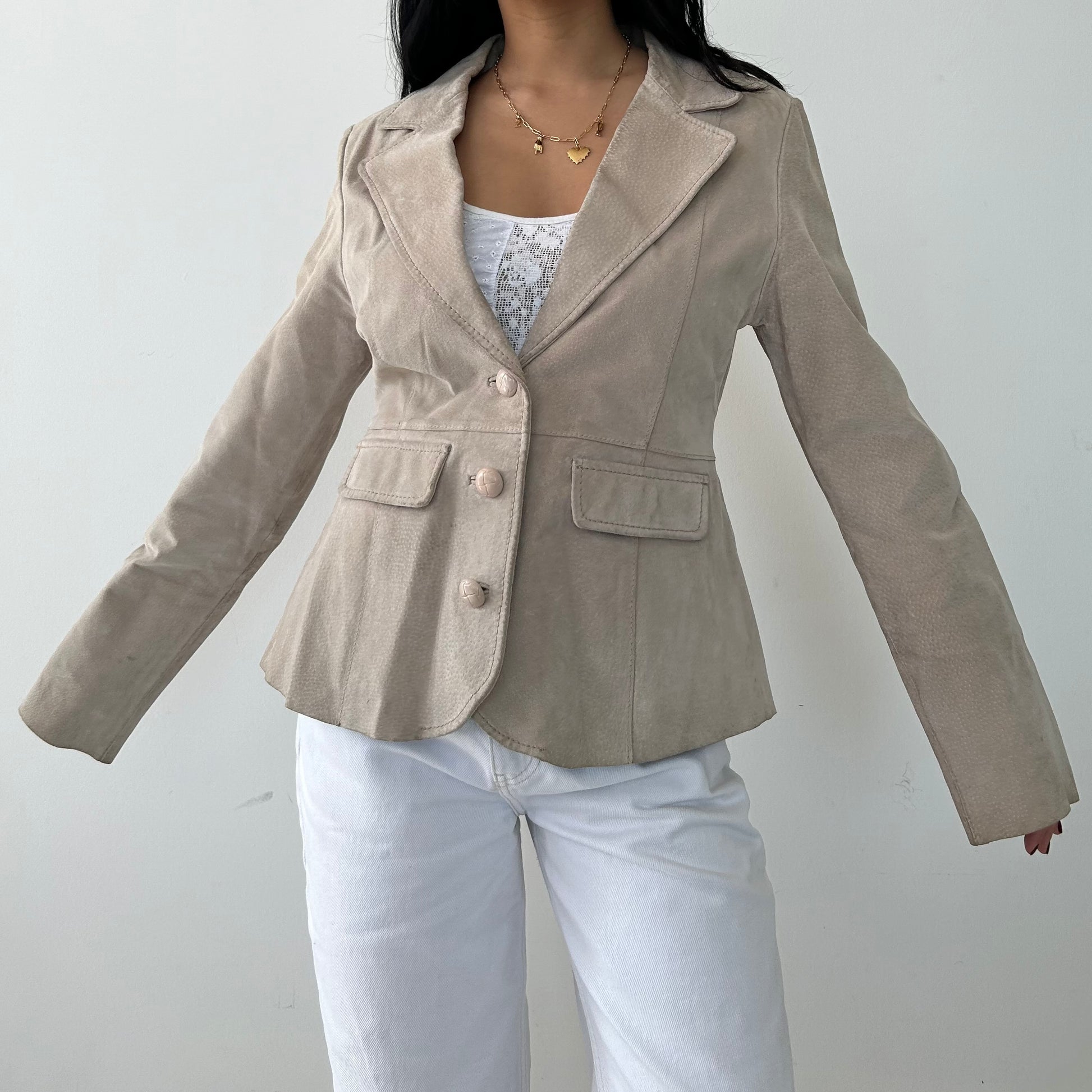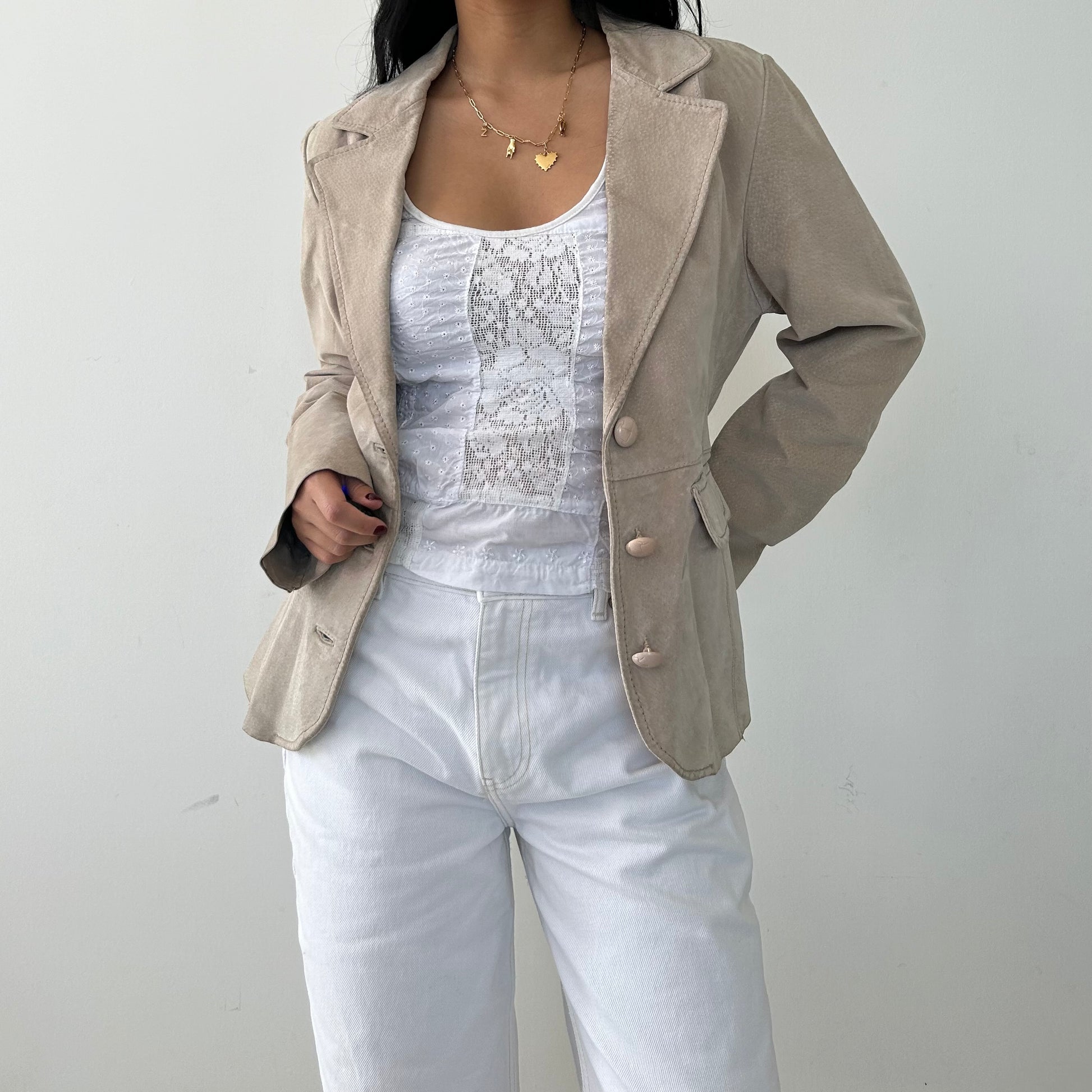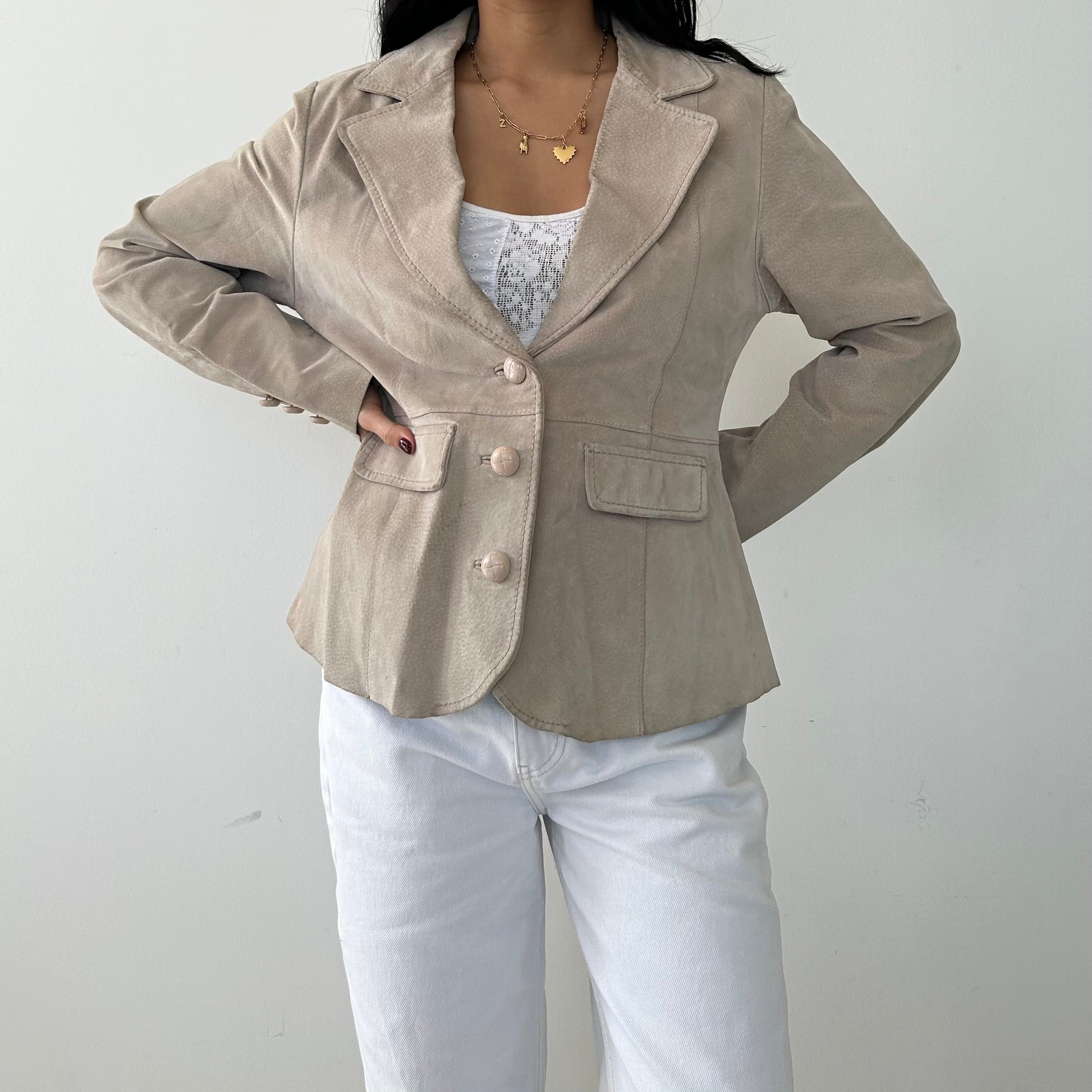 Suzy Shier Tan Leather Blazer - Medium