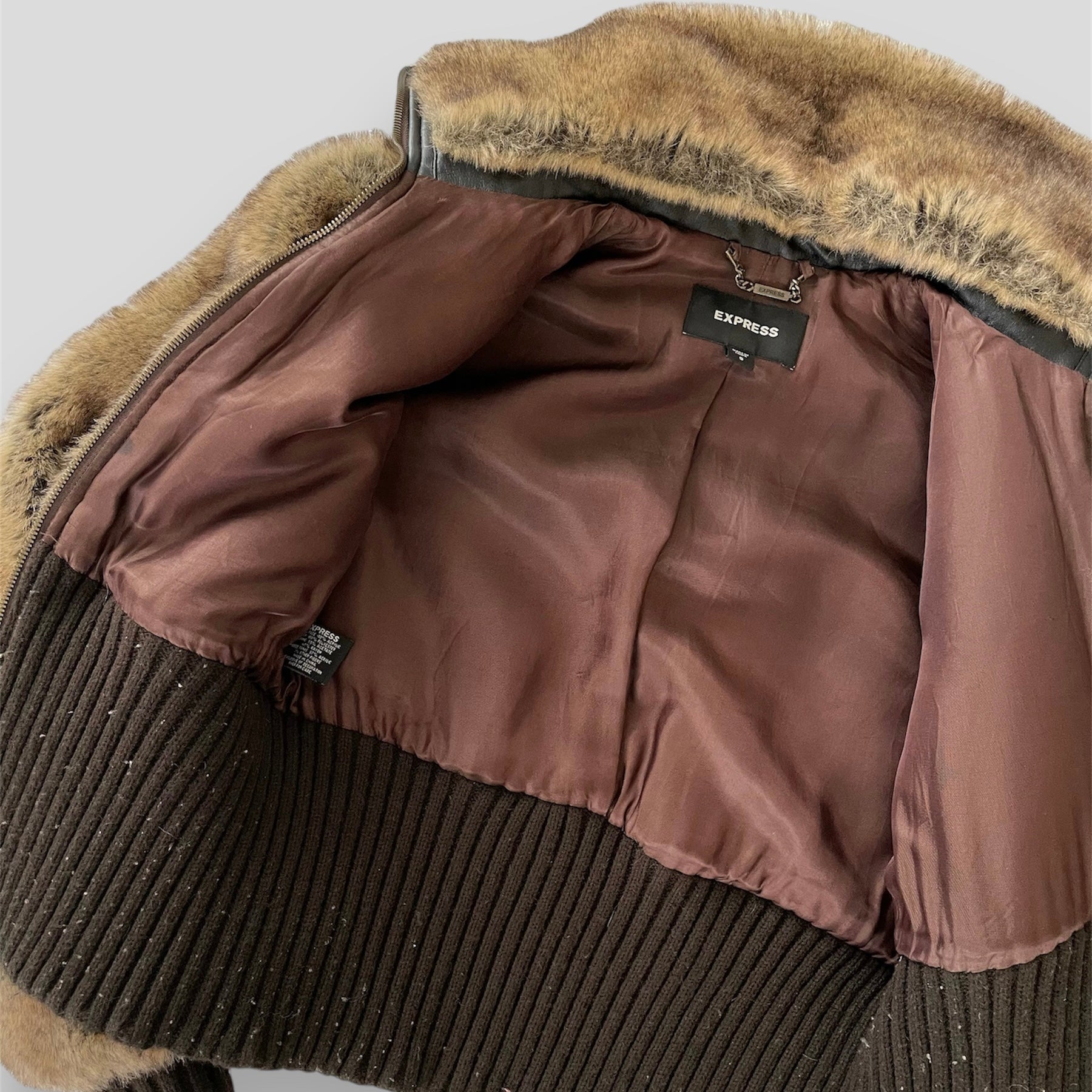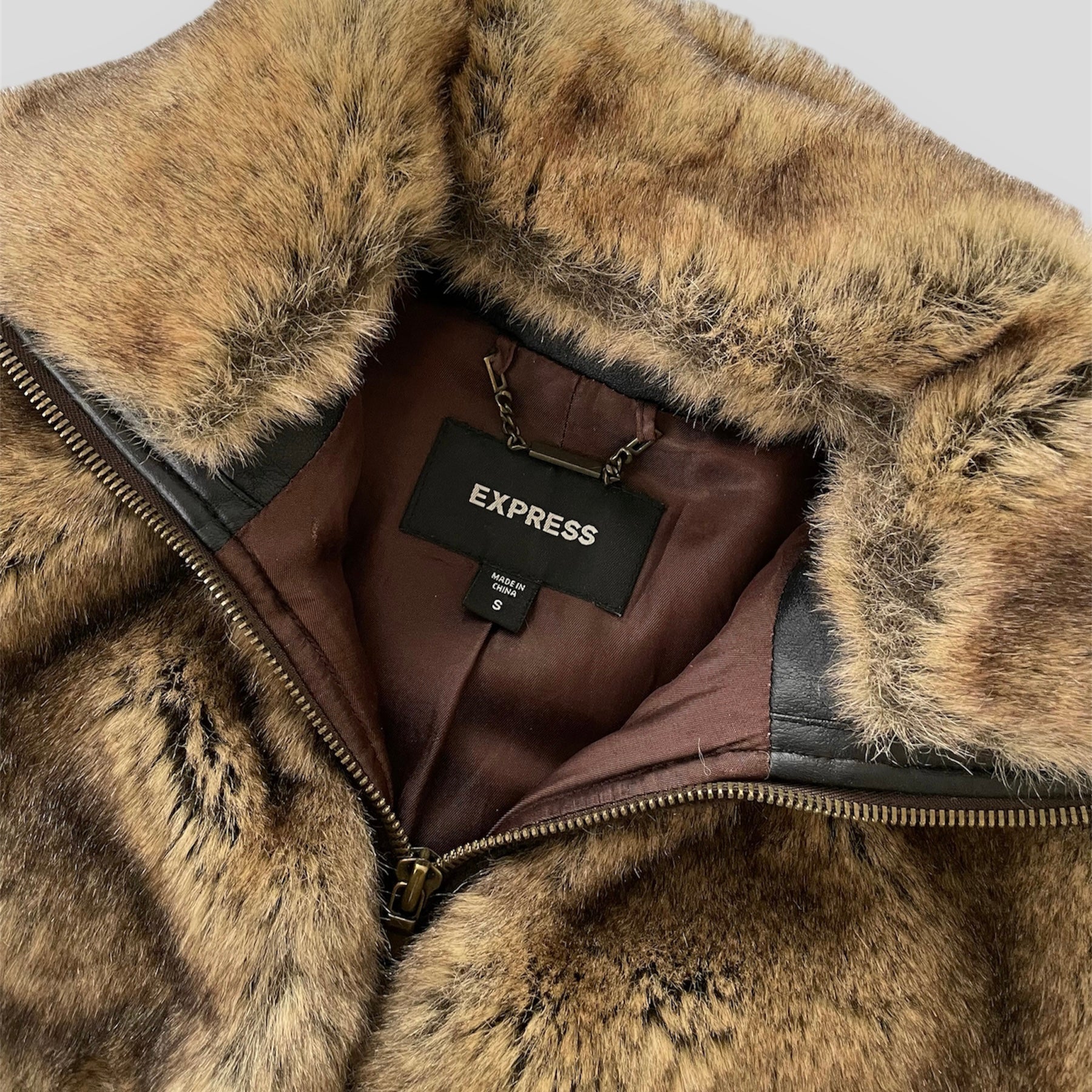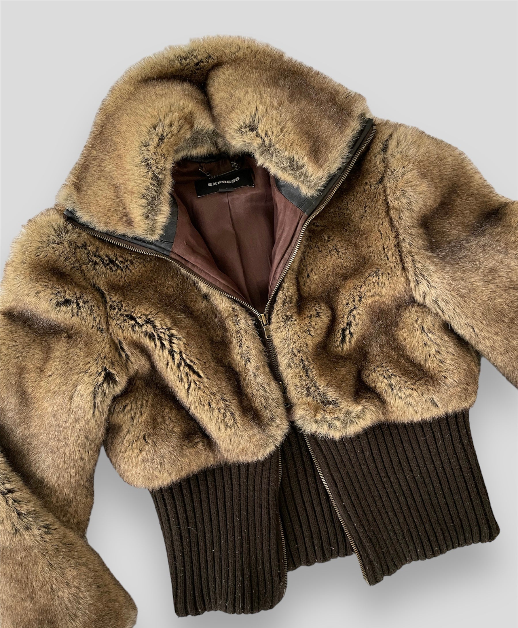 Express Brown Y2K Faux Fur Jacket - Small