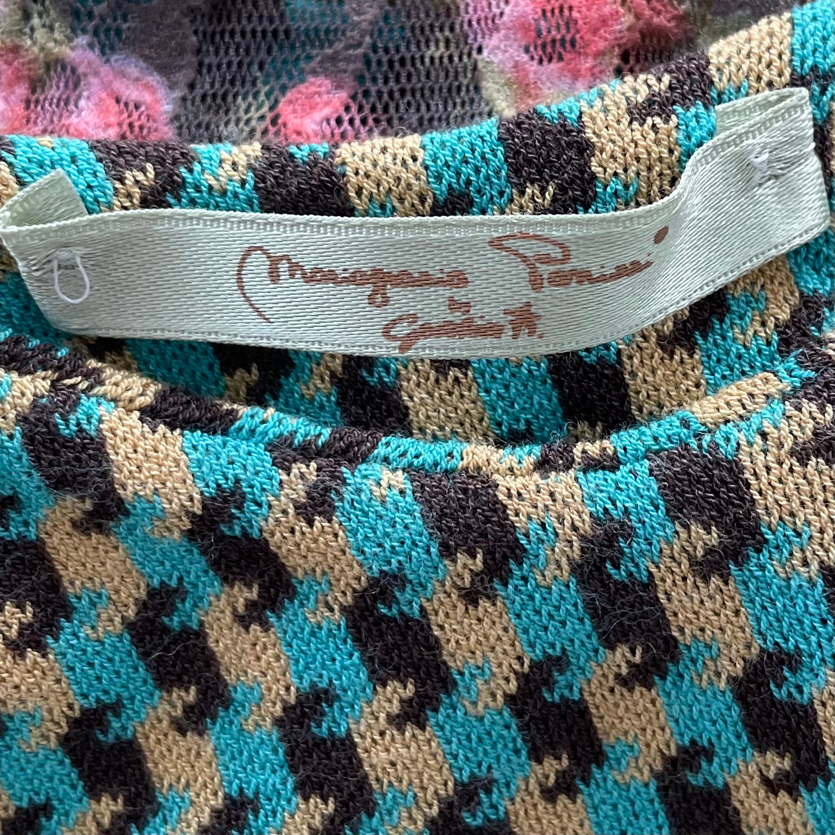 Mariagrazia Panizzi Turquoise and Brown Floral Knit Lace Sundress - Small/Medium