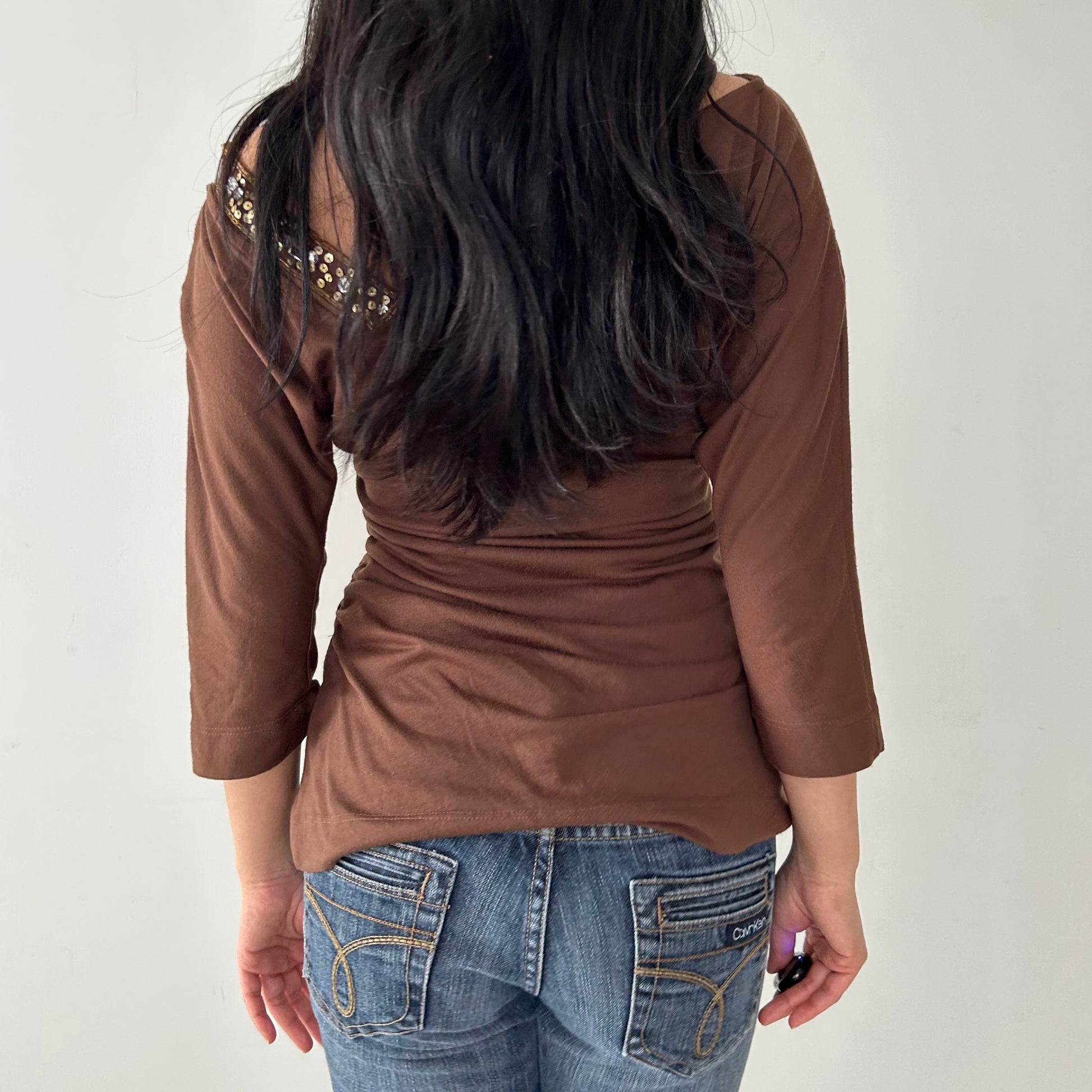 Guess Made in USA Brown Asymmetric Off Shoulder Top - Medium