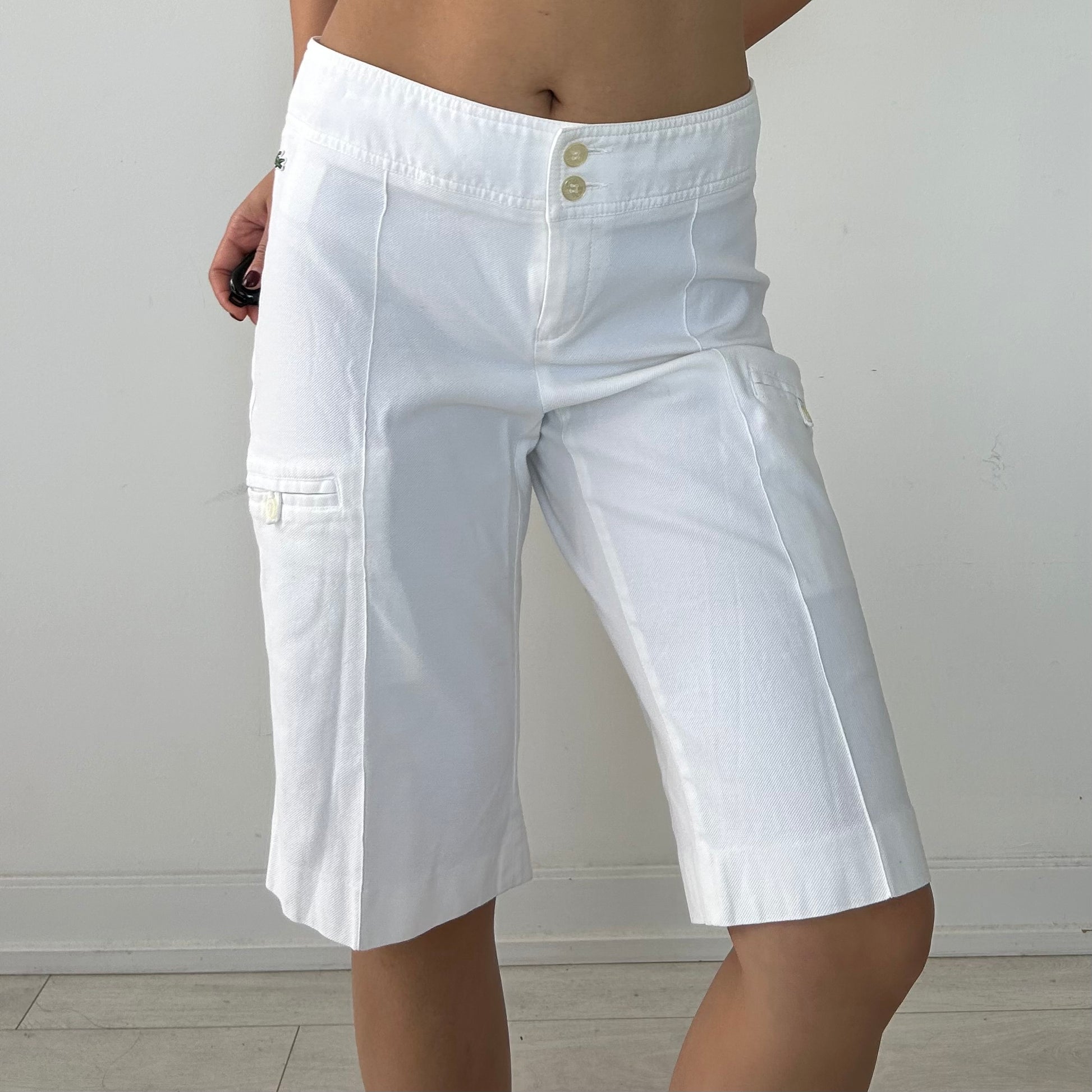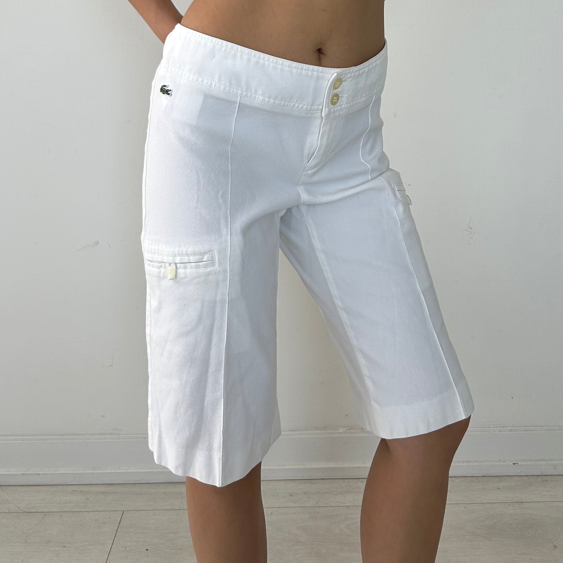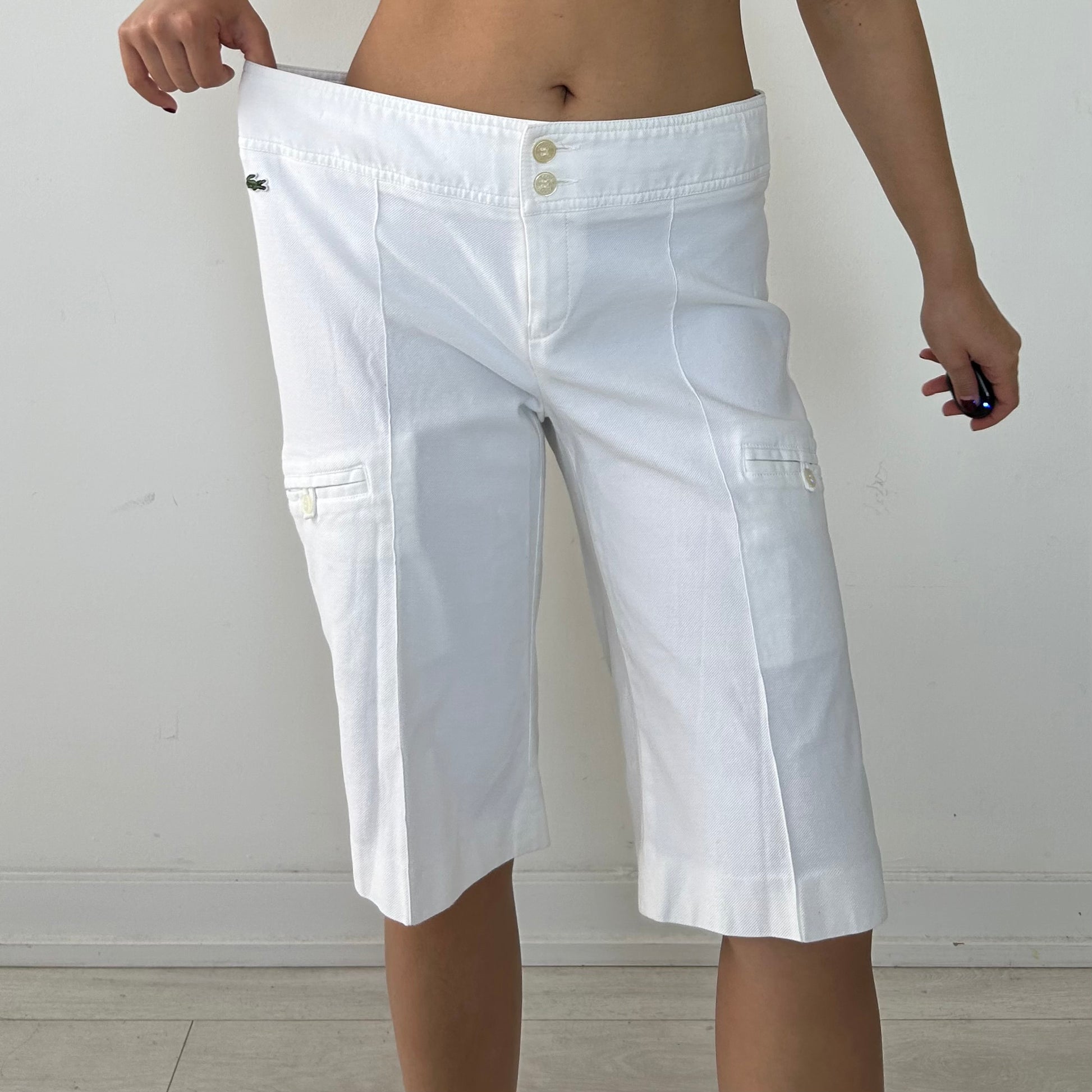 - Details: White capris; signature embroidered crocodile on the right hip; pocket details on the leg