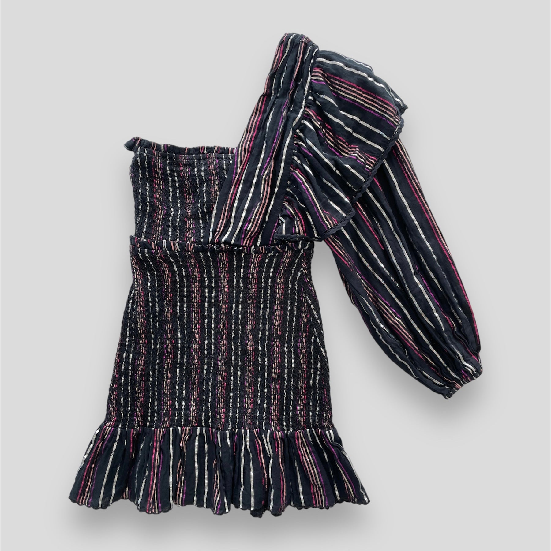 Navy Metallic Striped One Shoulder Mini Dress - Small