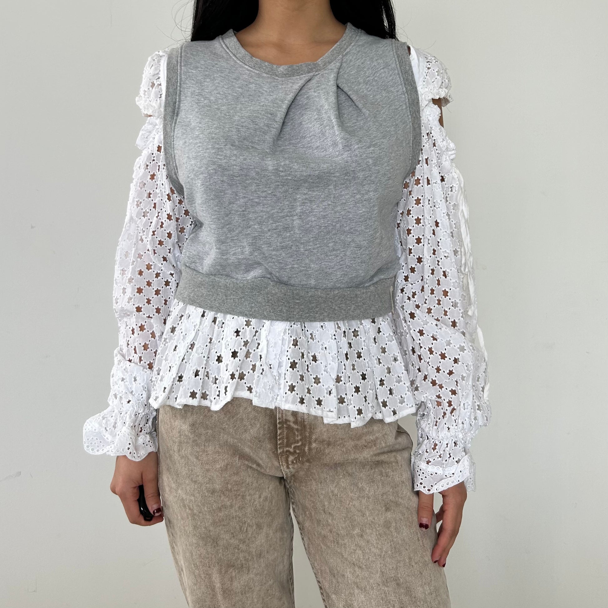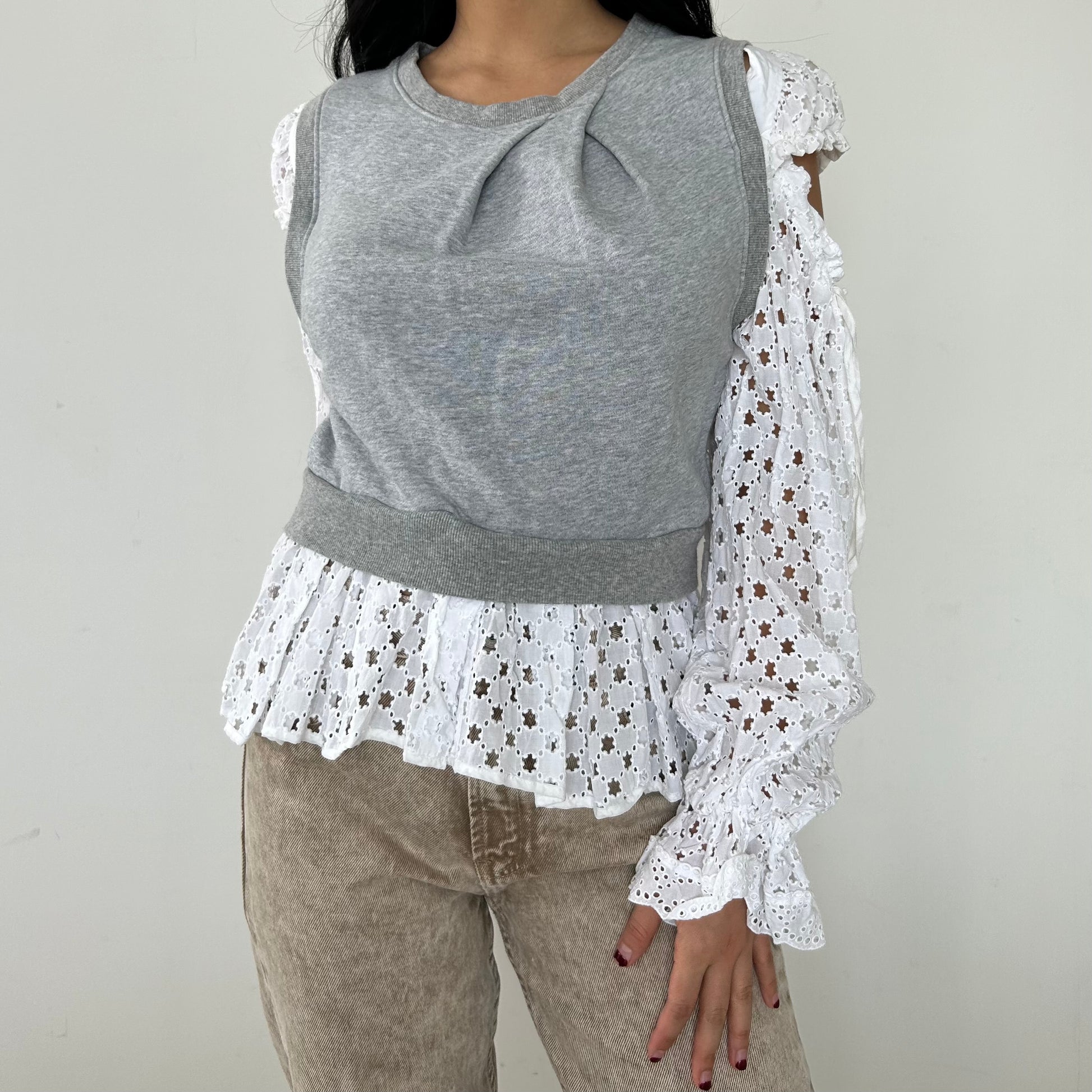 Shan Shan Ruan Bi-Fabric Sweatshirt with Detachable Sleeve - X-Small