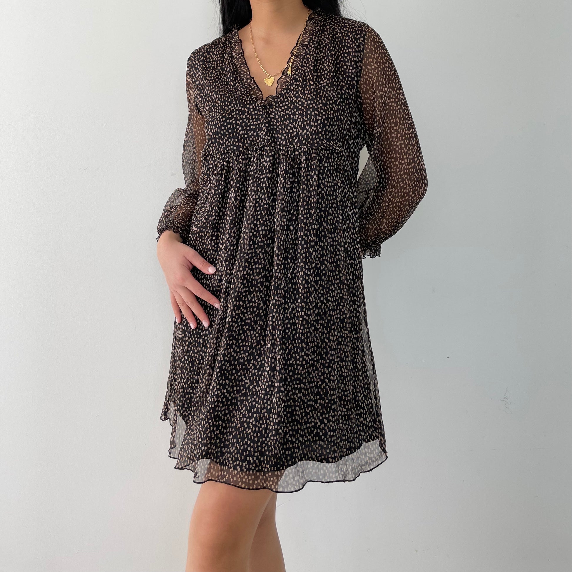 Zara Brown Polka Dot Long 3/4 Sleeve Babydoll Dress - Small