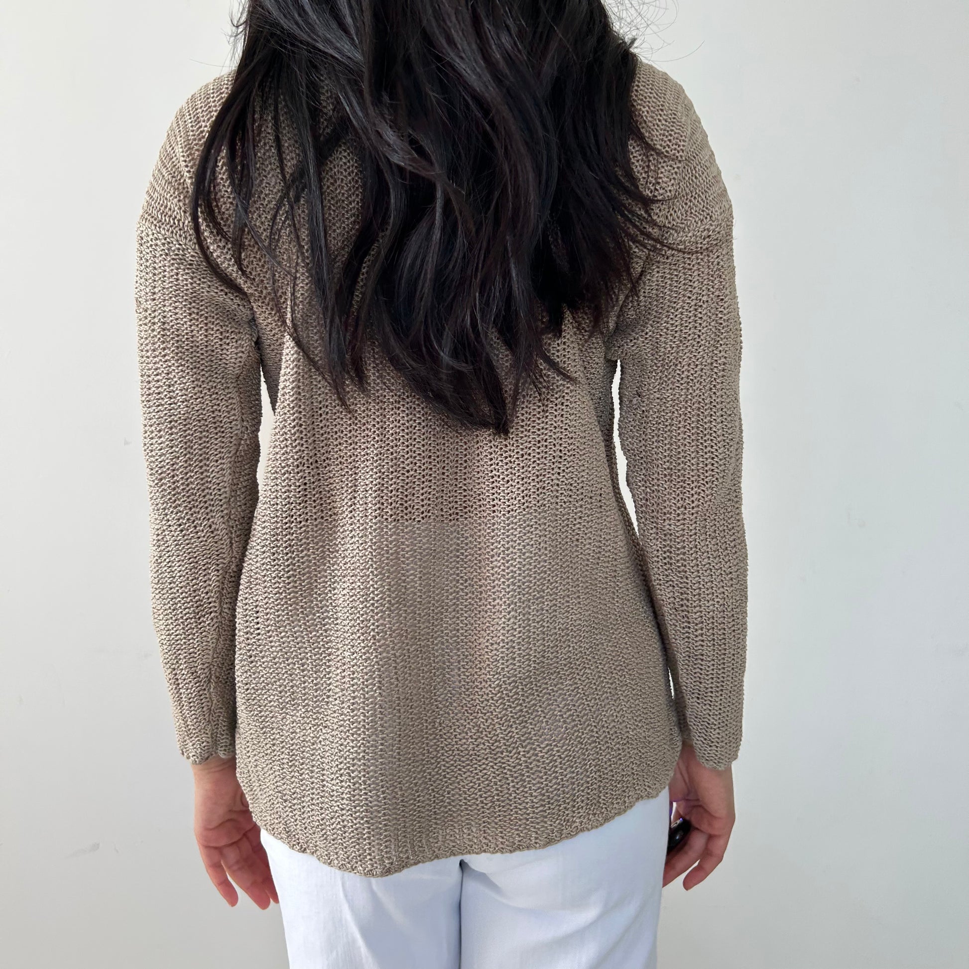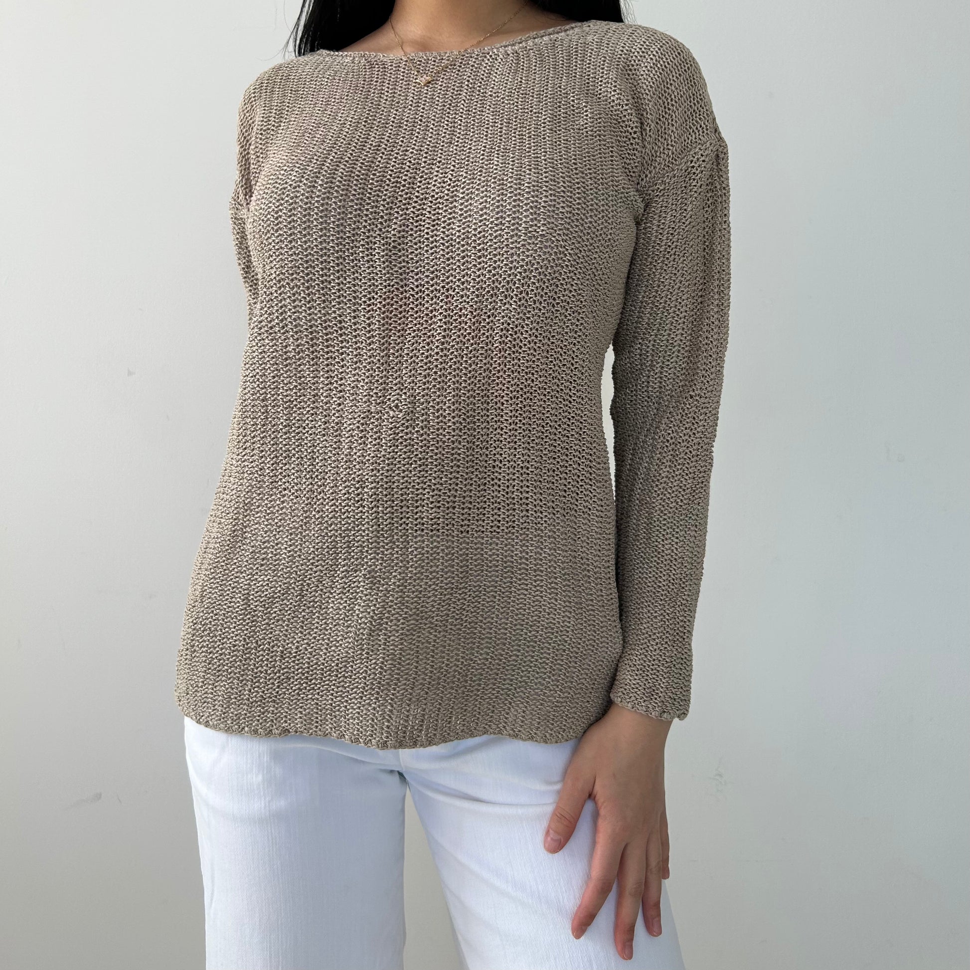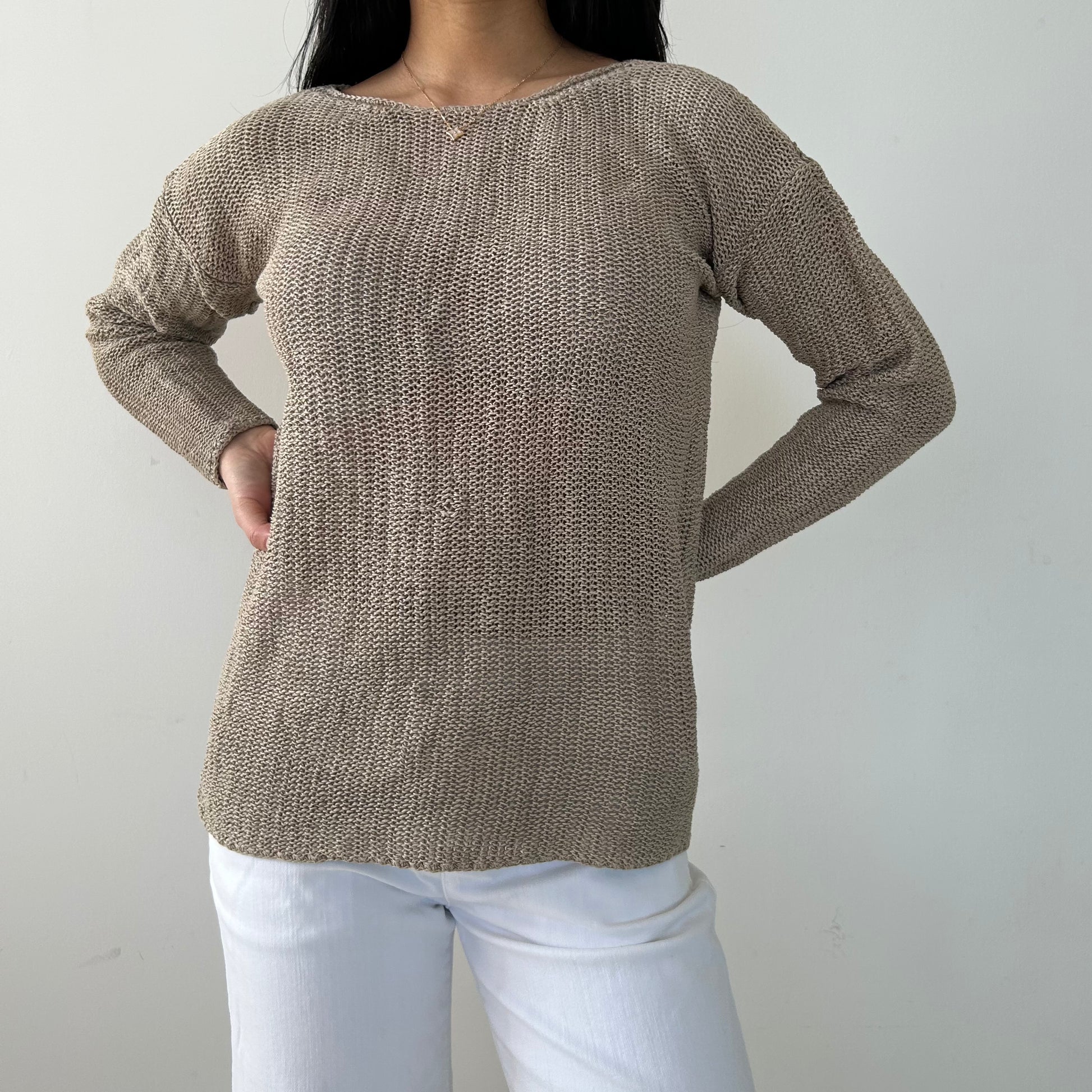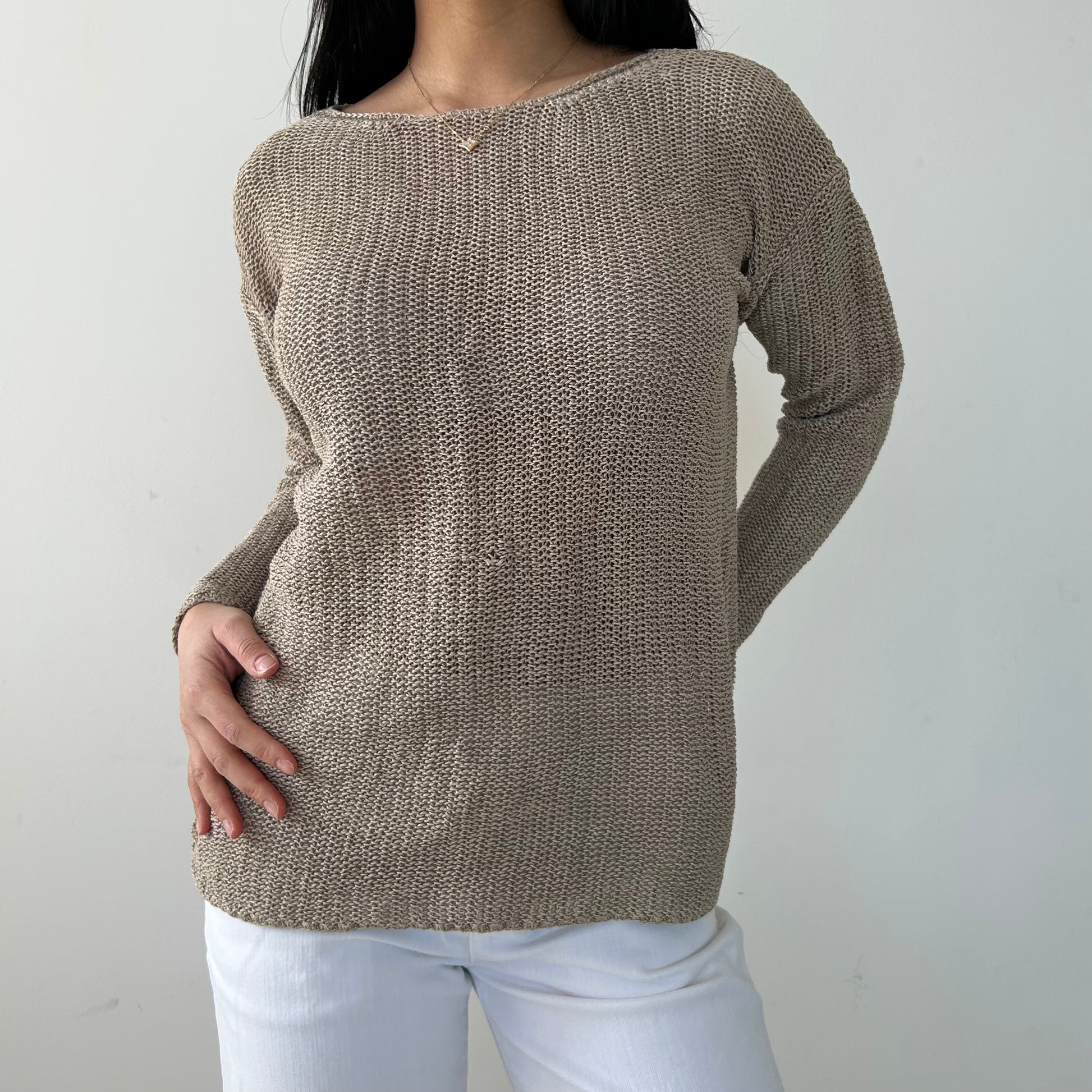 - Details: Beige lightweight linen crewneck knit sweater; vintage from the 90s