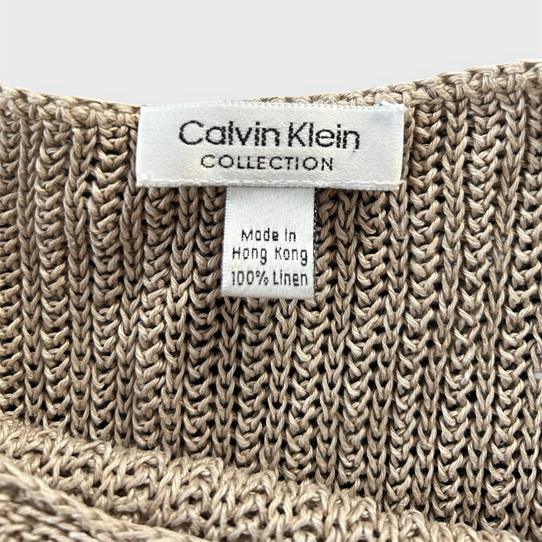 Vintage 1990s Calvin Klein Collection Beige Linen Crewneck Knit - Medium