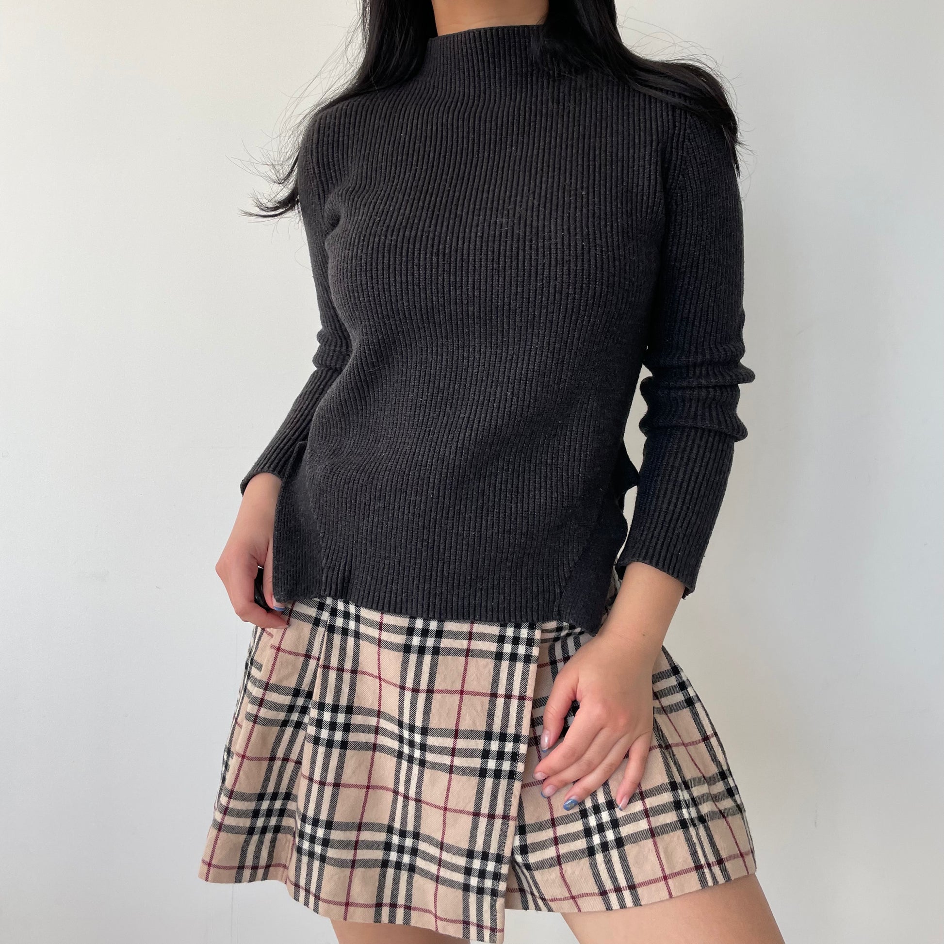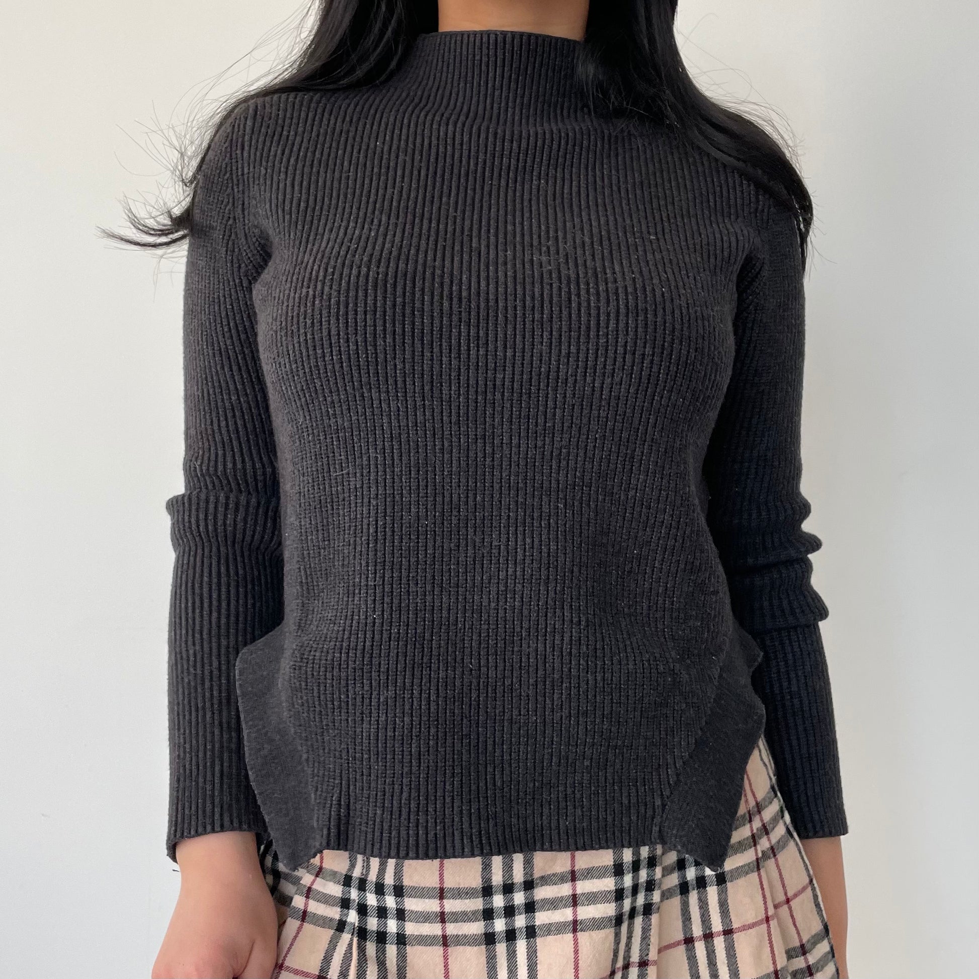 Zara Dark Grey Mock Neck Knit Jumper - X-Small