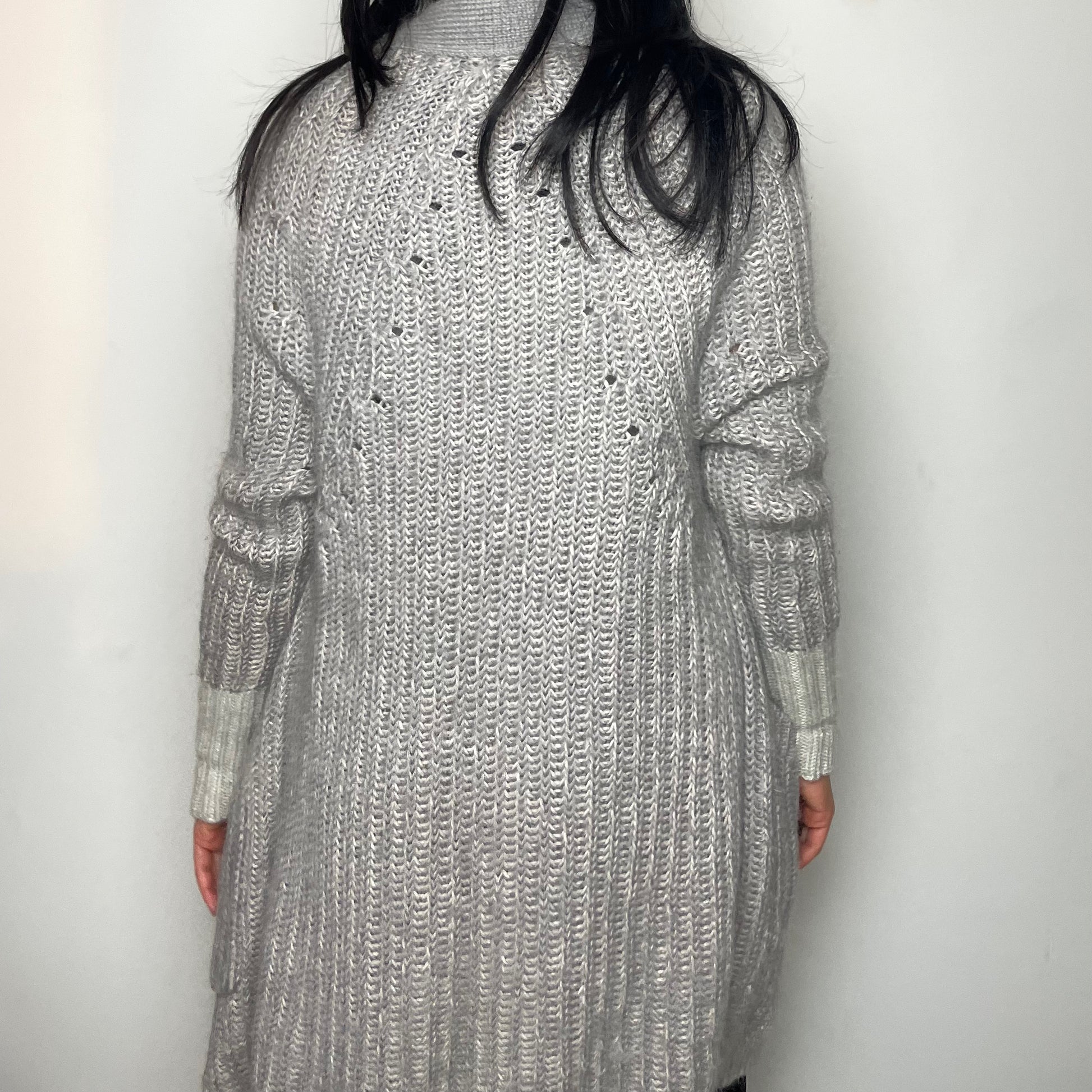 All Saints Grey Open Longline Mohair Blend Cardigan - X-Small