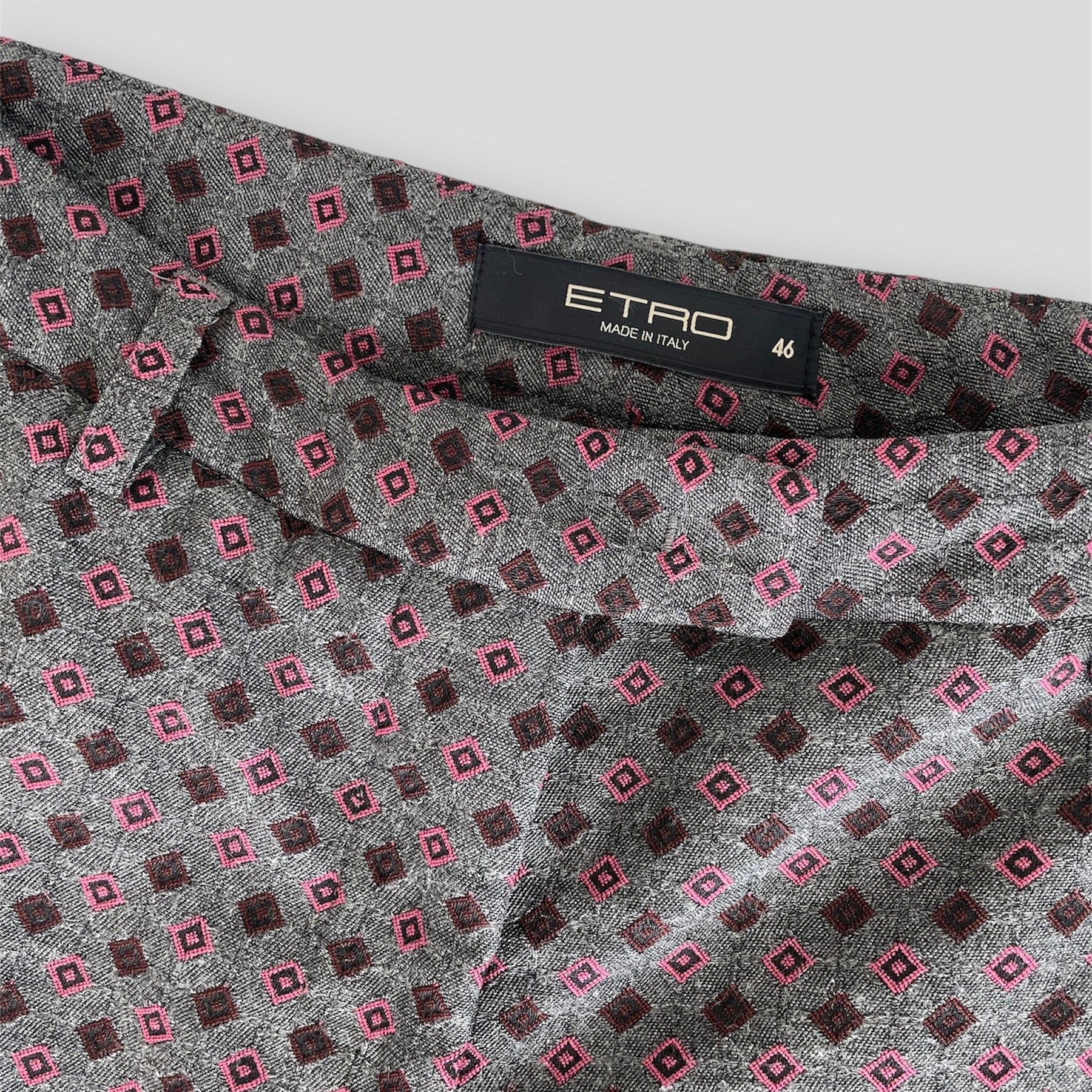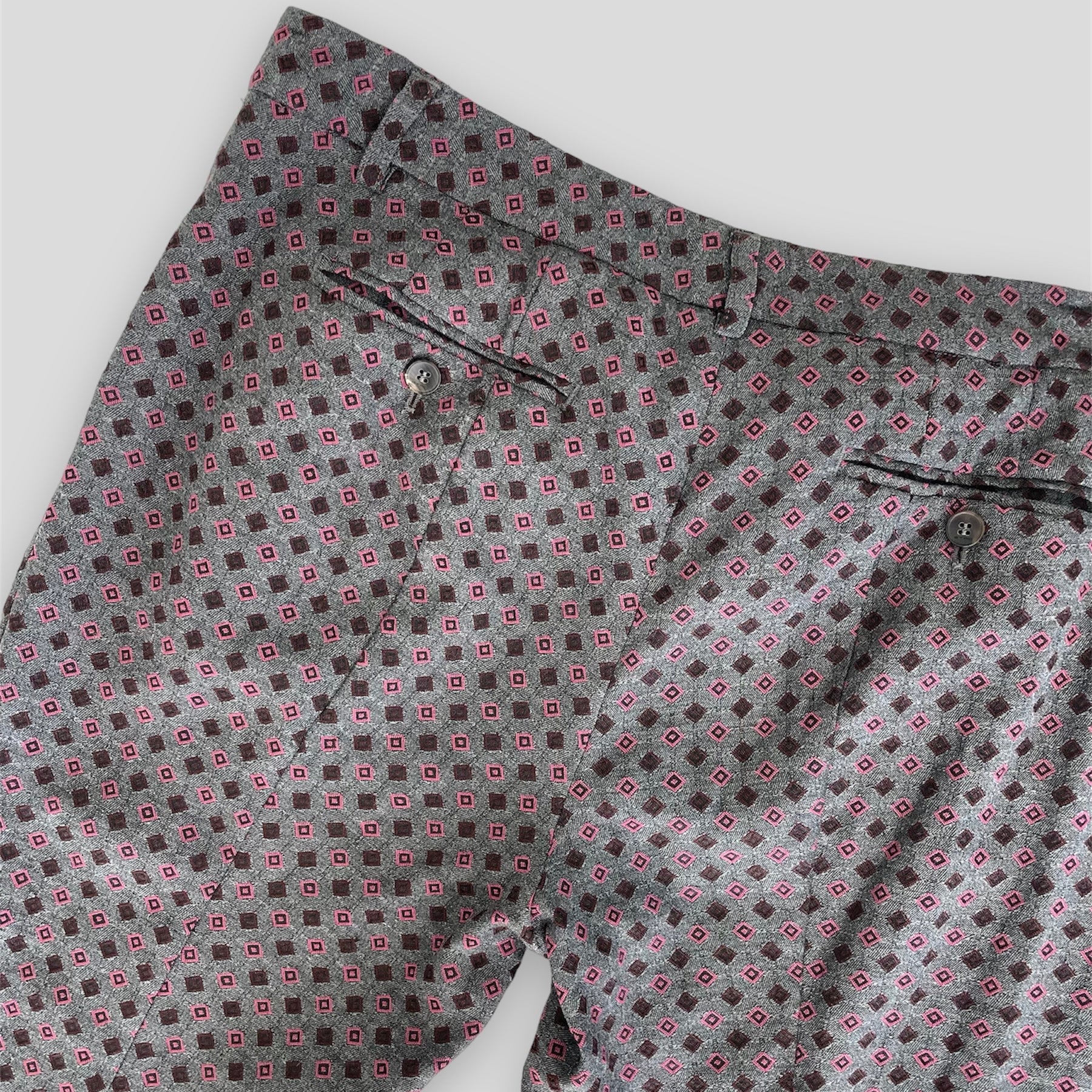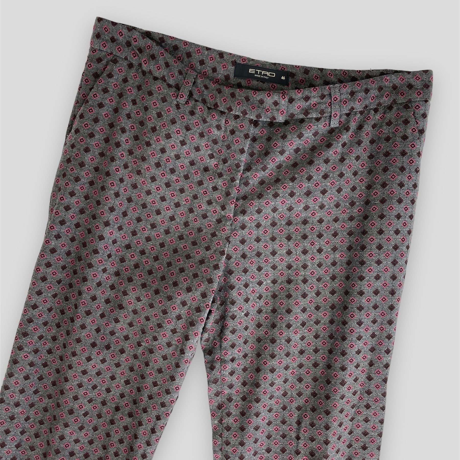 Etro Grey and Pink Diamond Printed Straight Leg Trousers - IT 46/W33/Large