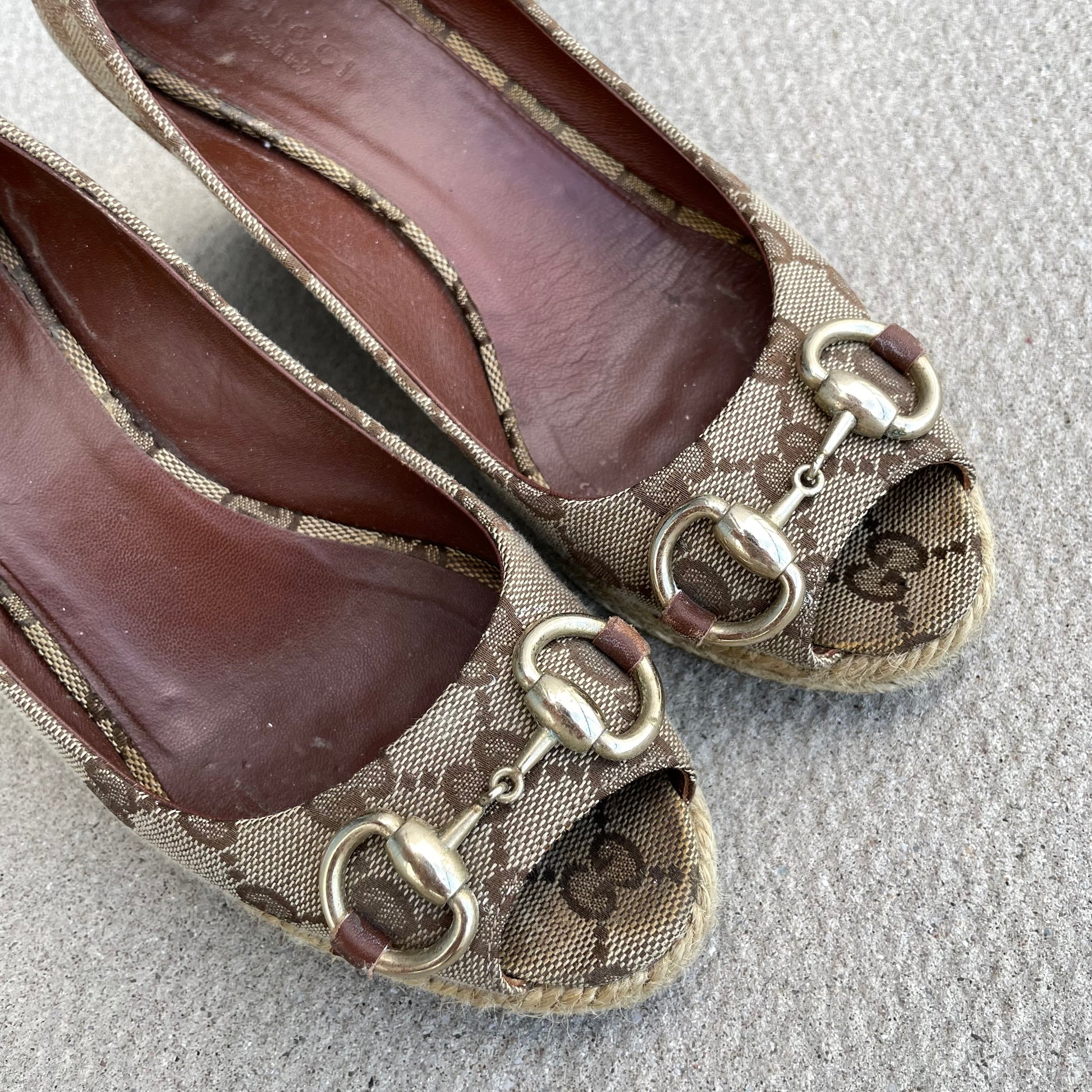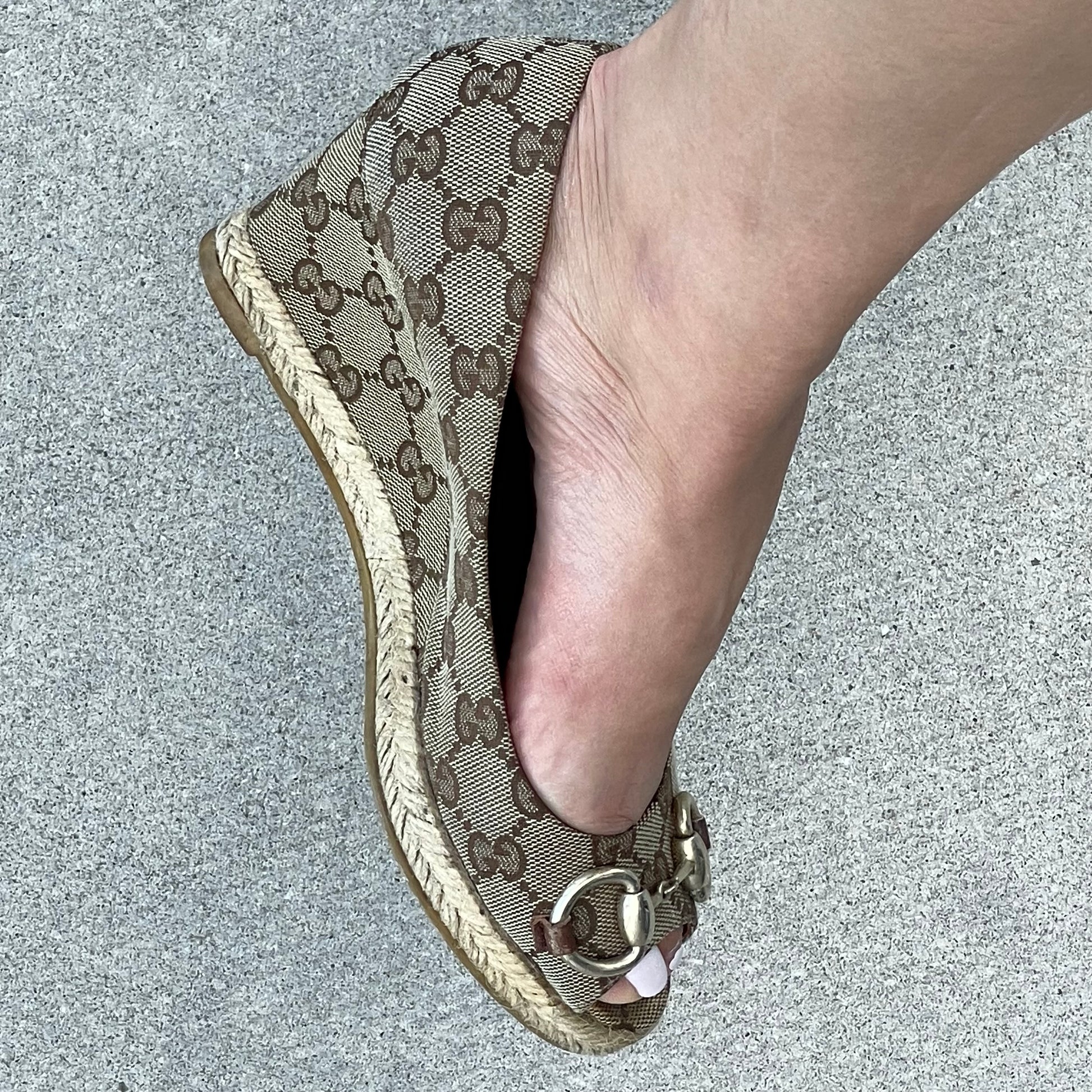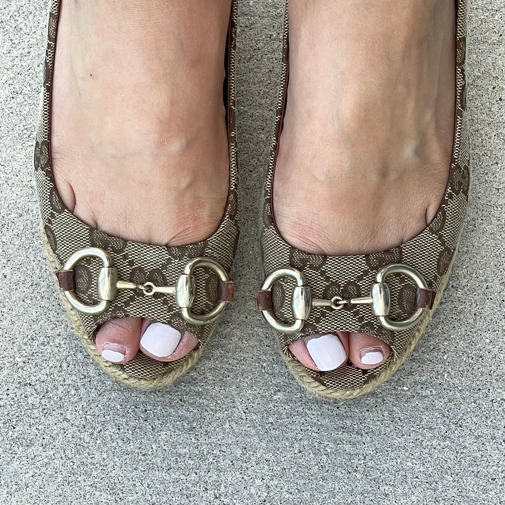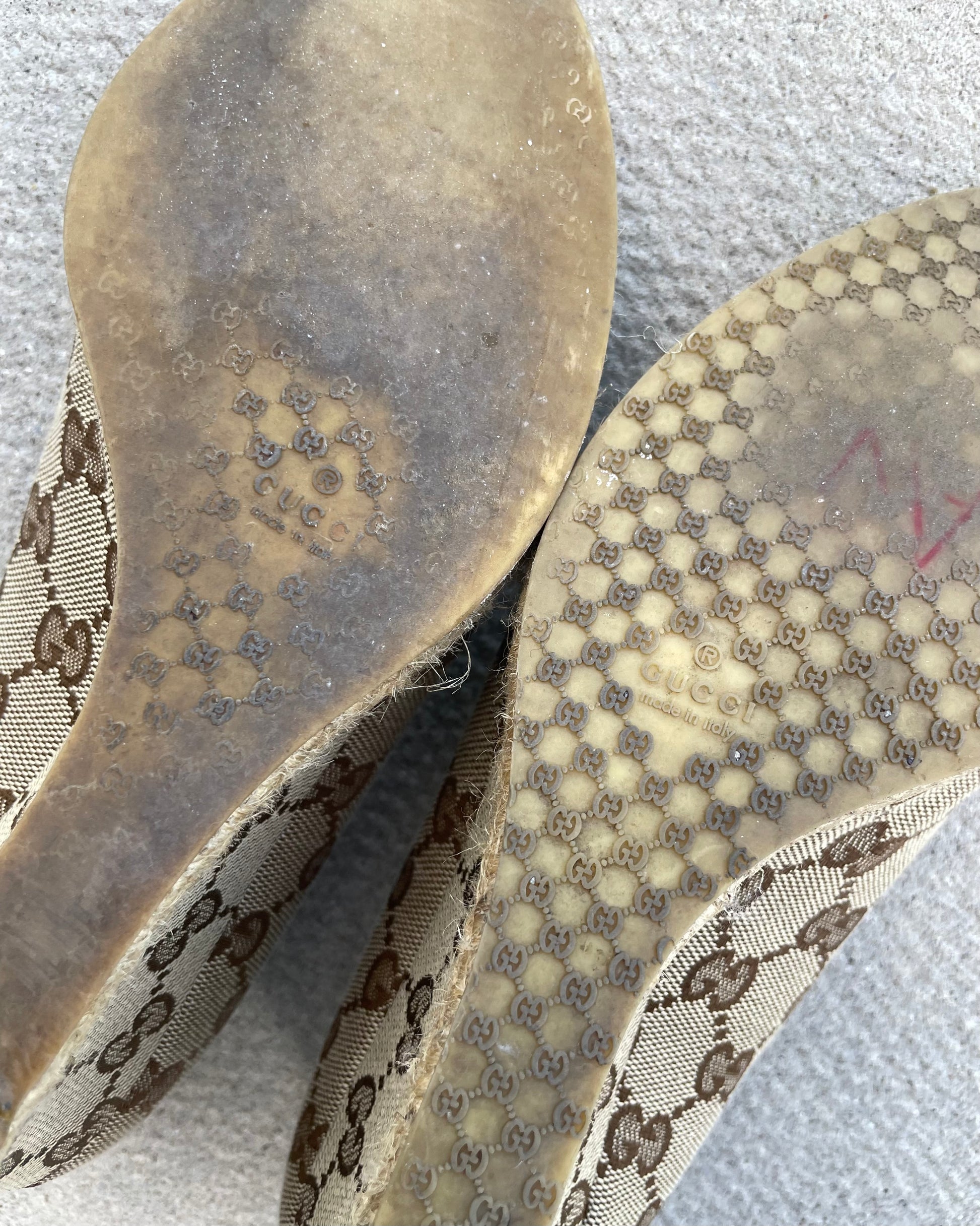 - Details: Retails $1000+ CAD; canvas espadrilles; GG canvas and horsebit accent; jute trim
