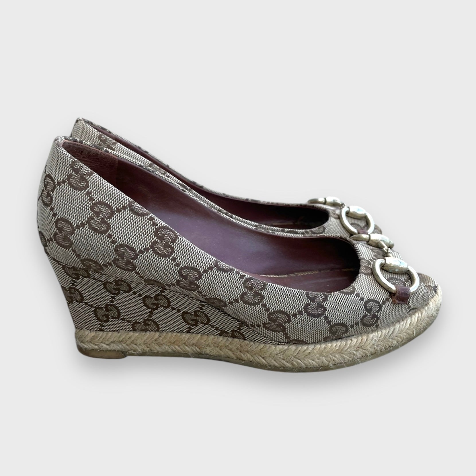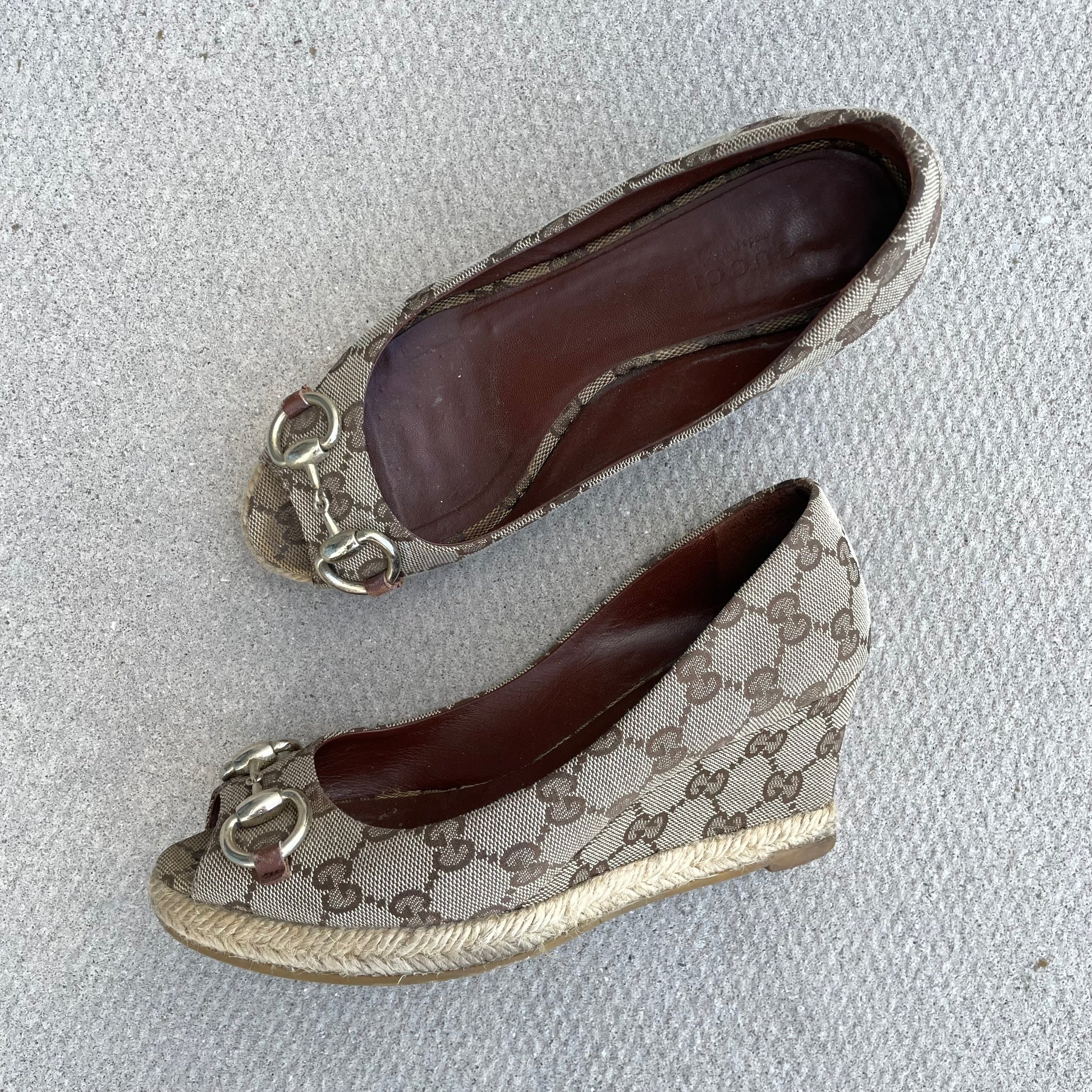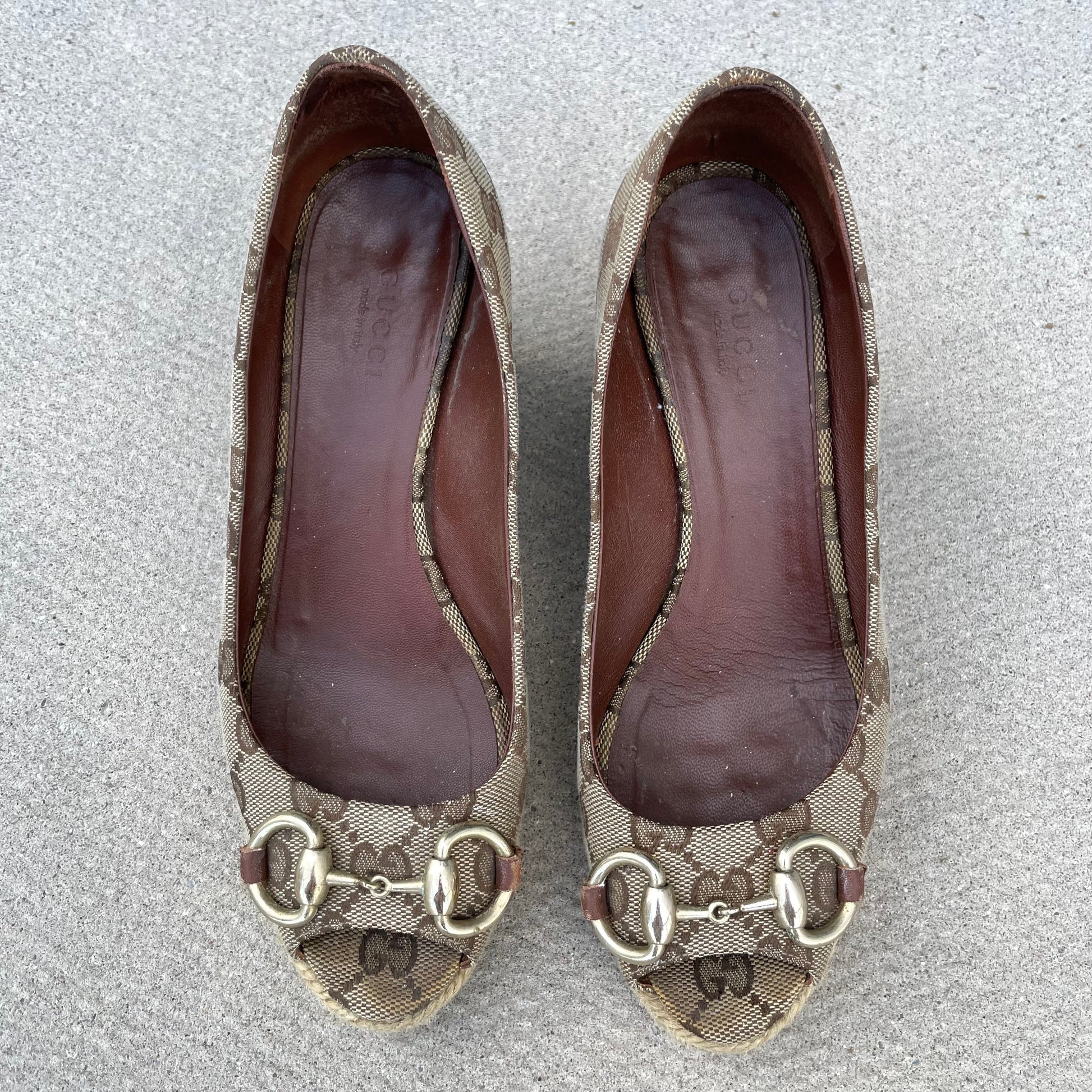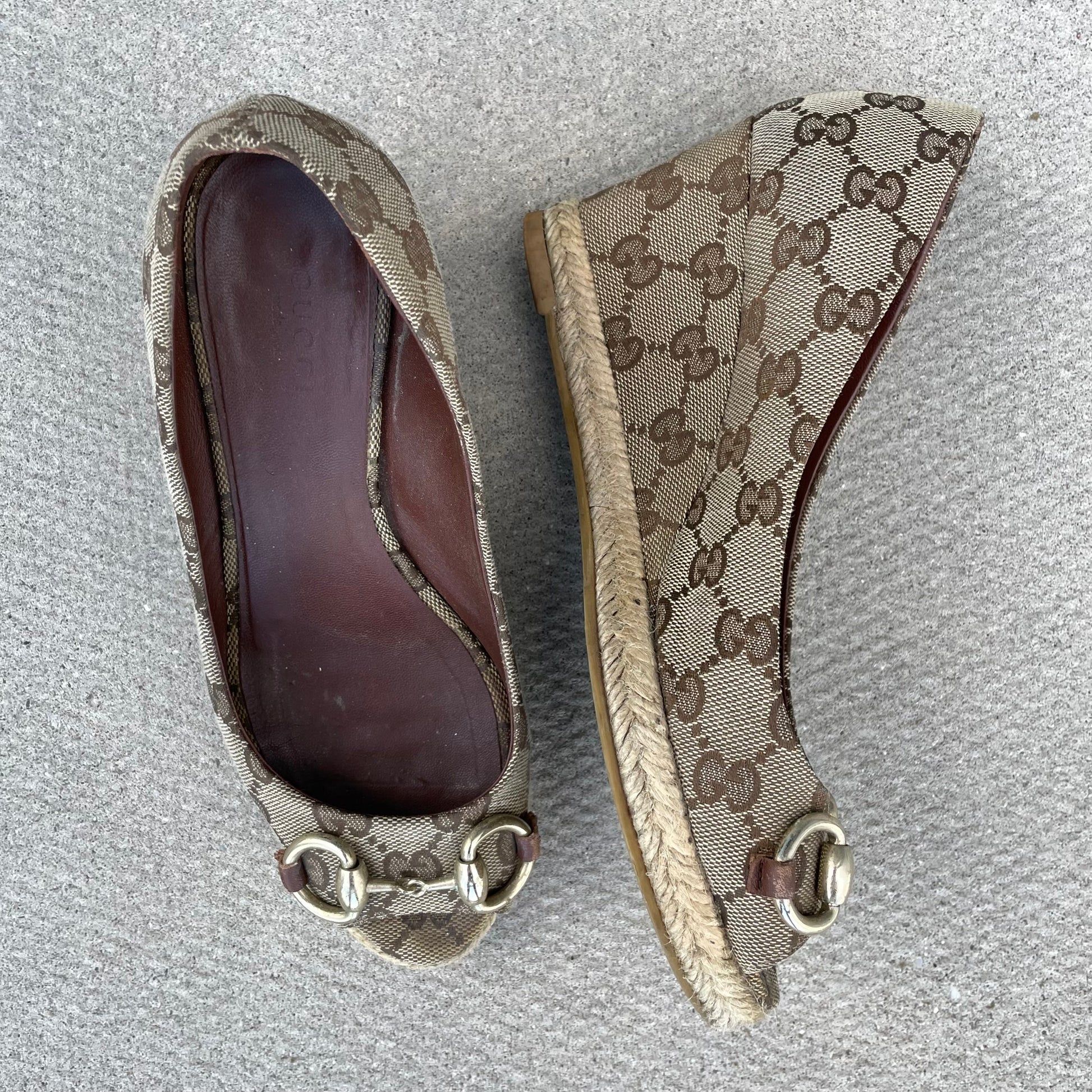 - Details: Retails $1000+ CAD; canvas espadrilles; GG canvas and horsebit accent; jute trim