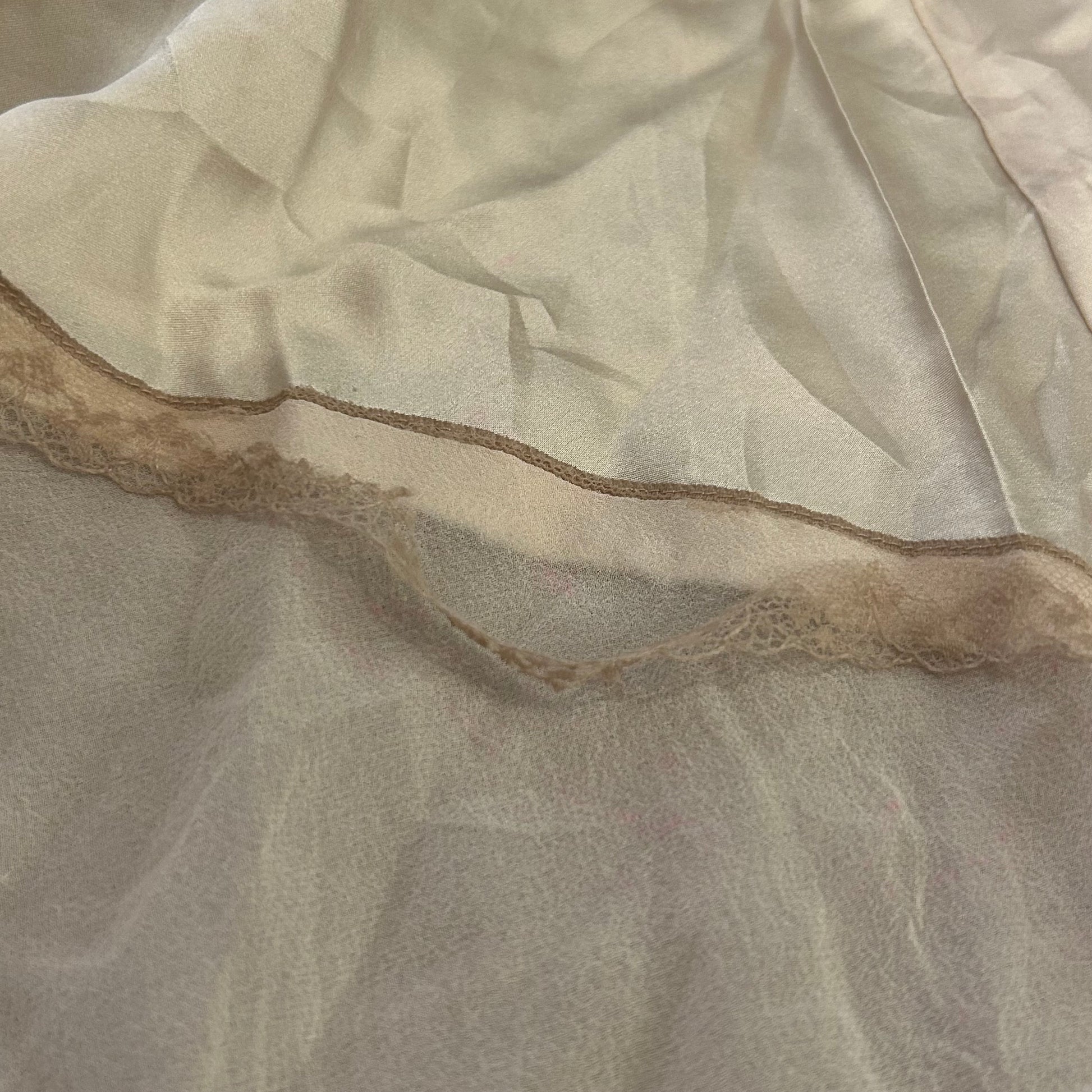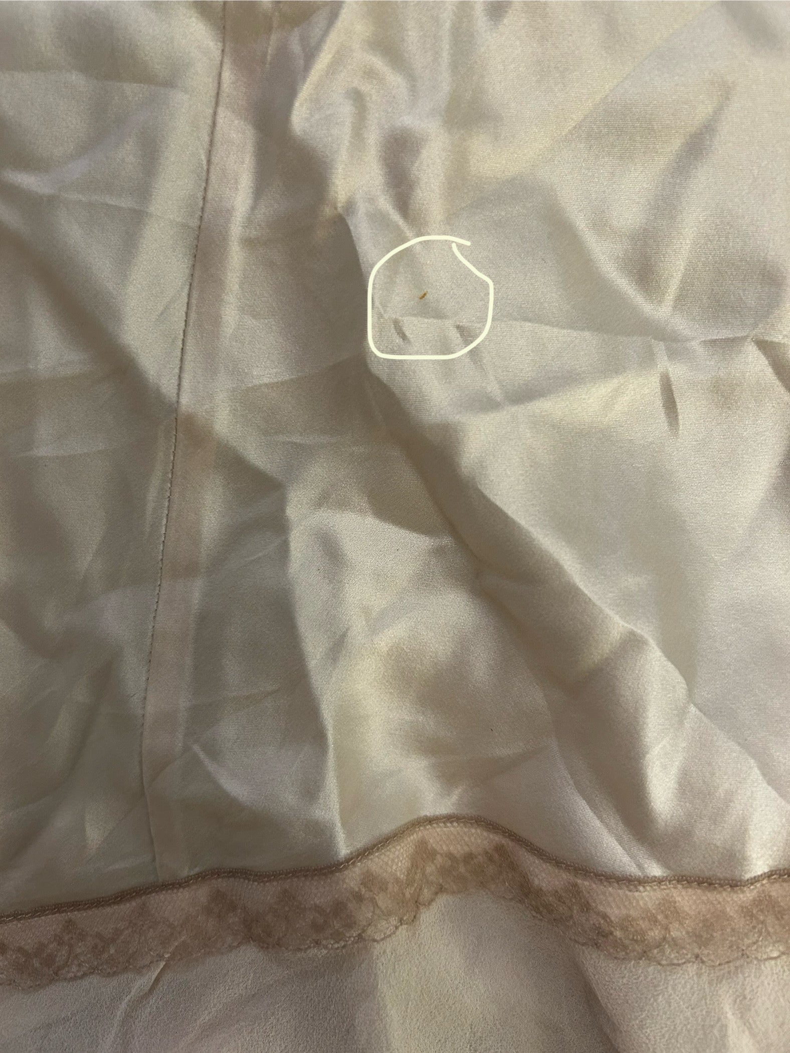 - Condition: Good; very faint pink pen marks on the back; some rust stains near metal hardware; lace trim detail on the back has come undone in one part (see picture)