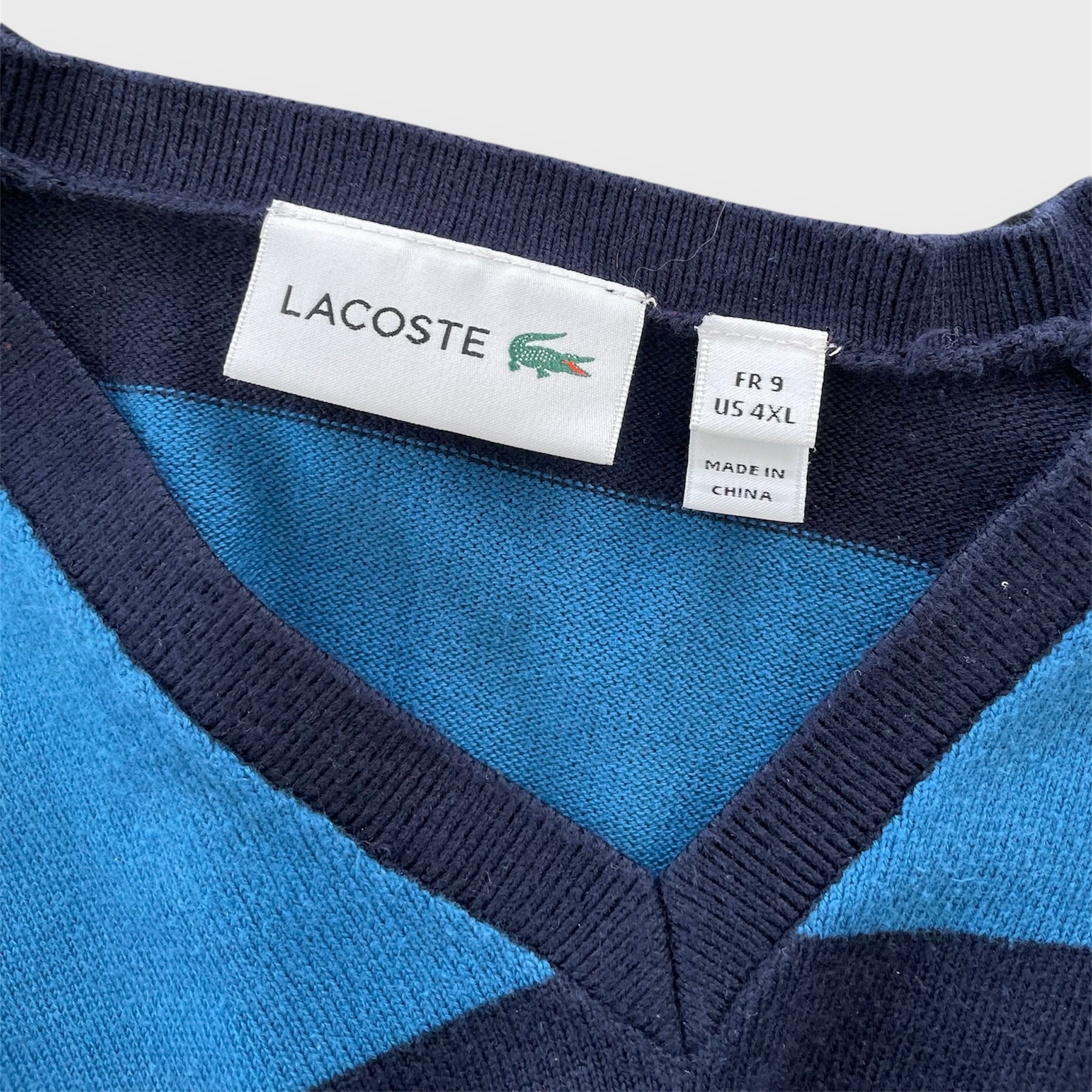 Lacoste Blue Striped V-Neck Knit Jumper - 4XL