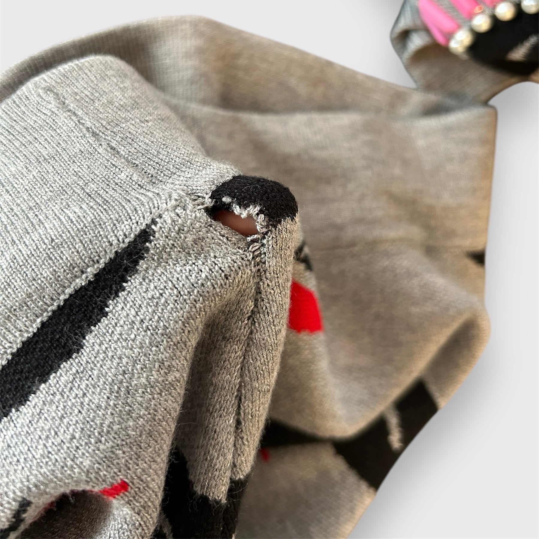 May Queen Grey Graphic Face Intarsia Knit Set - X-Small