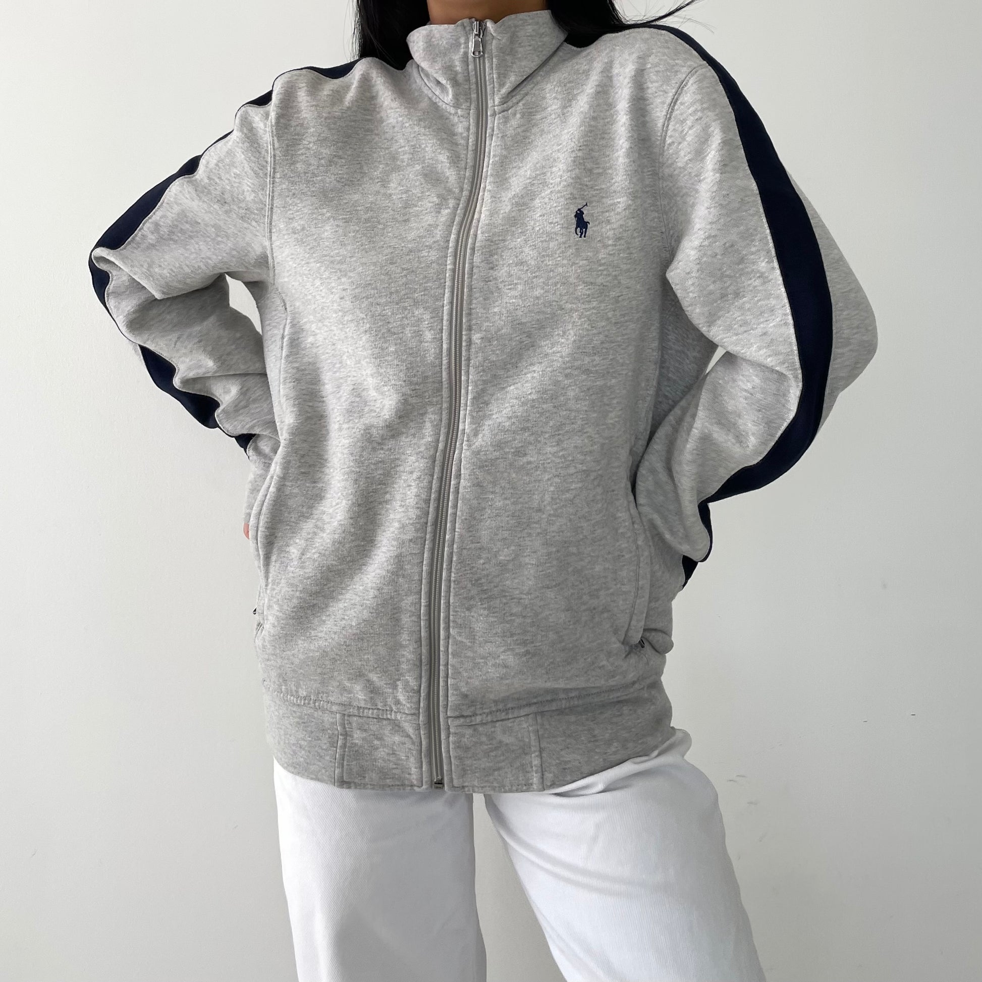 Polo Ralph Lauren Grey and Navy Track Jacket - Medium