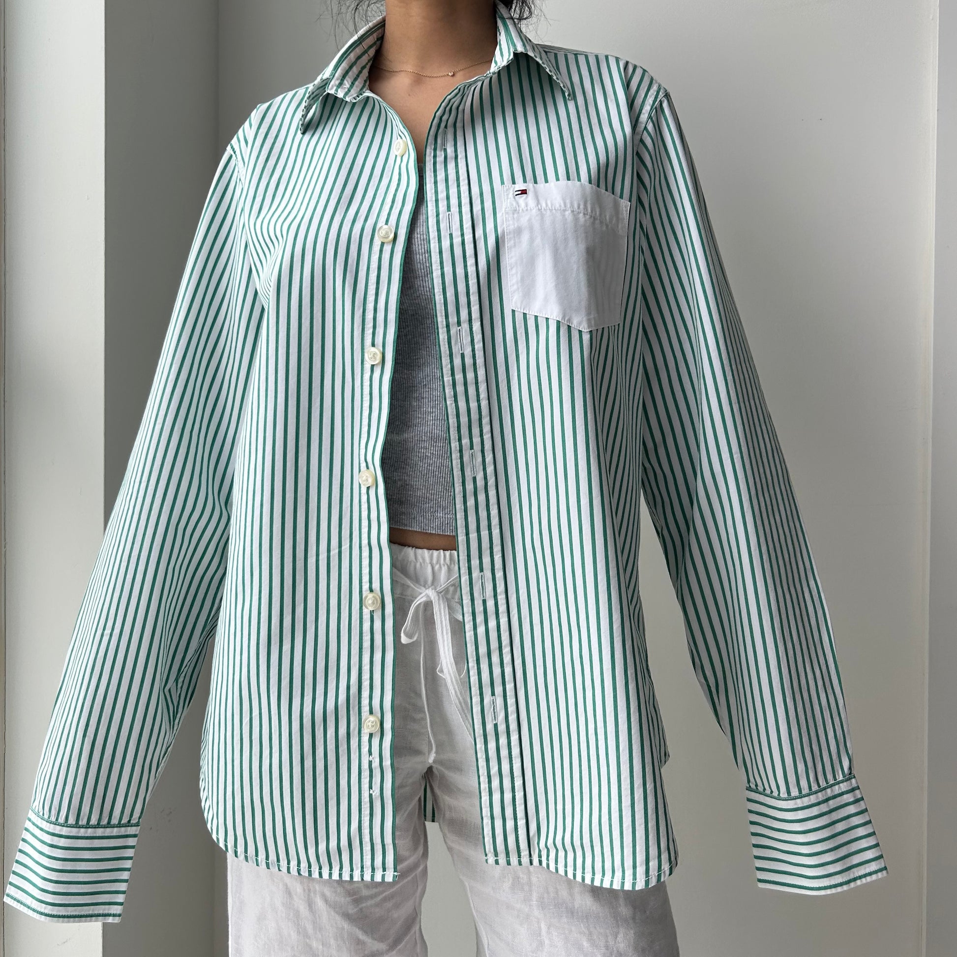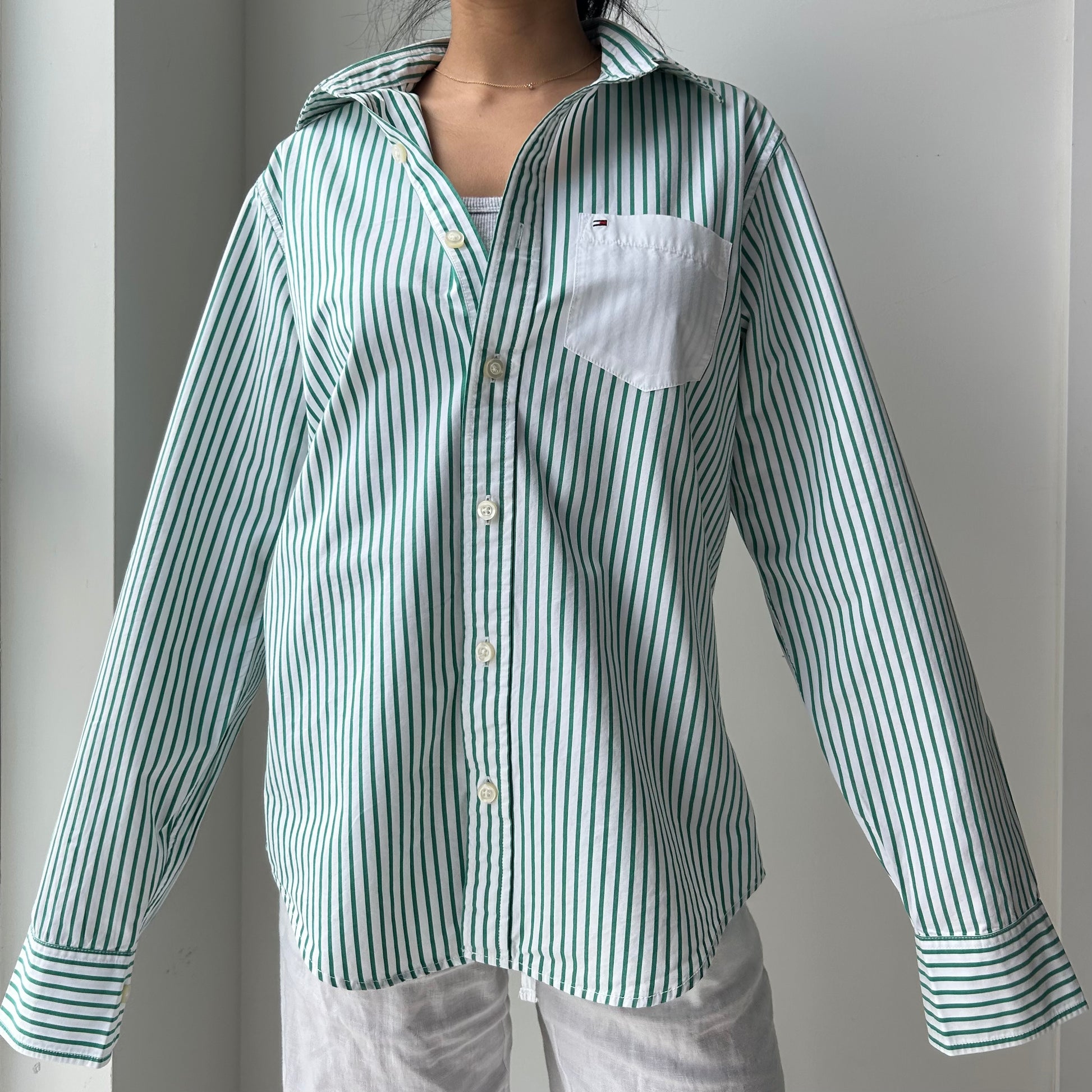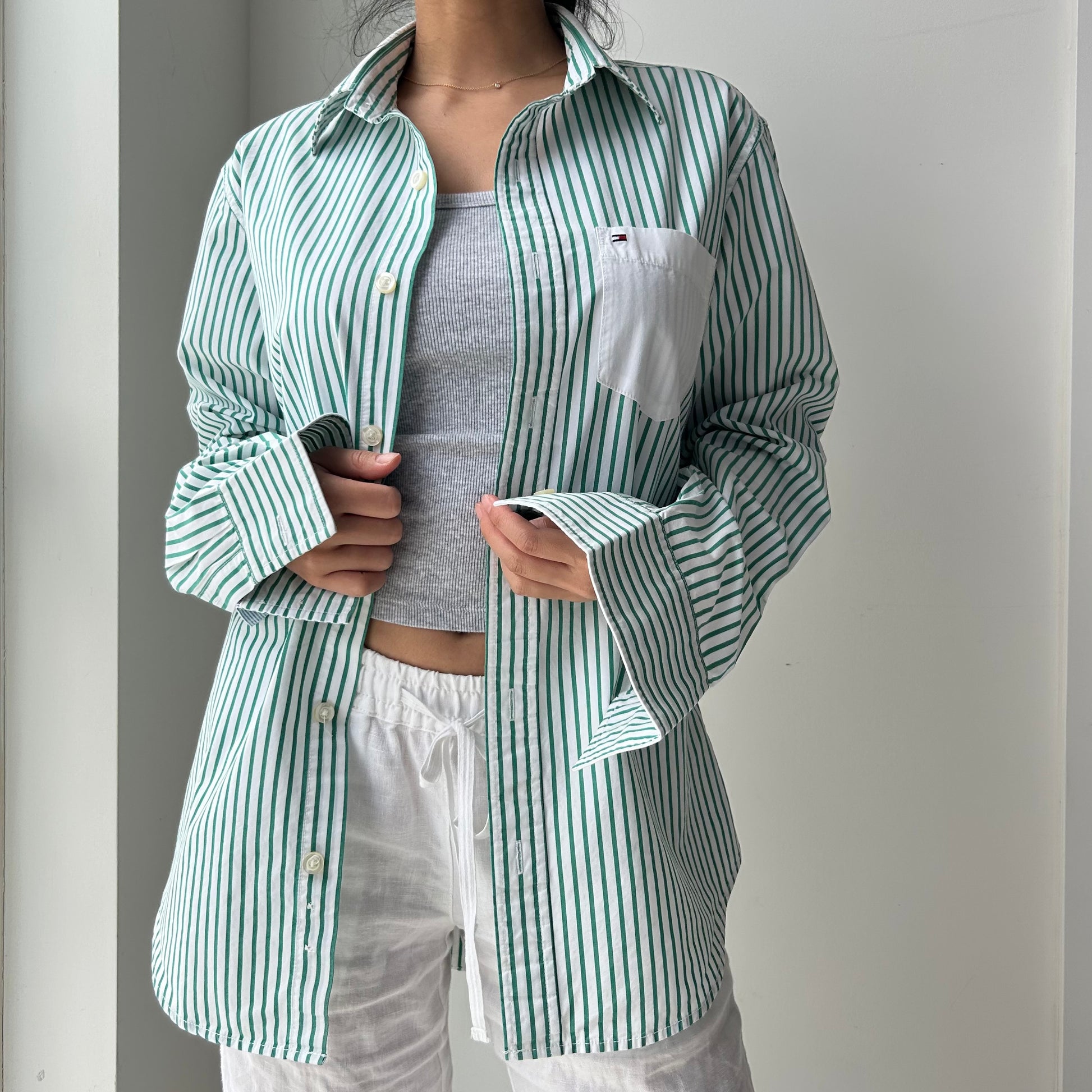 Tommy Hilfiger Green Striped Button Up Shirt - Small