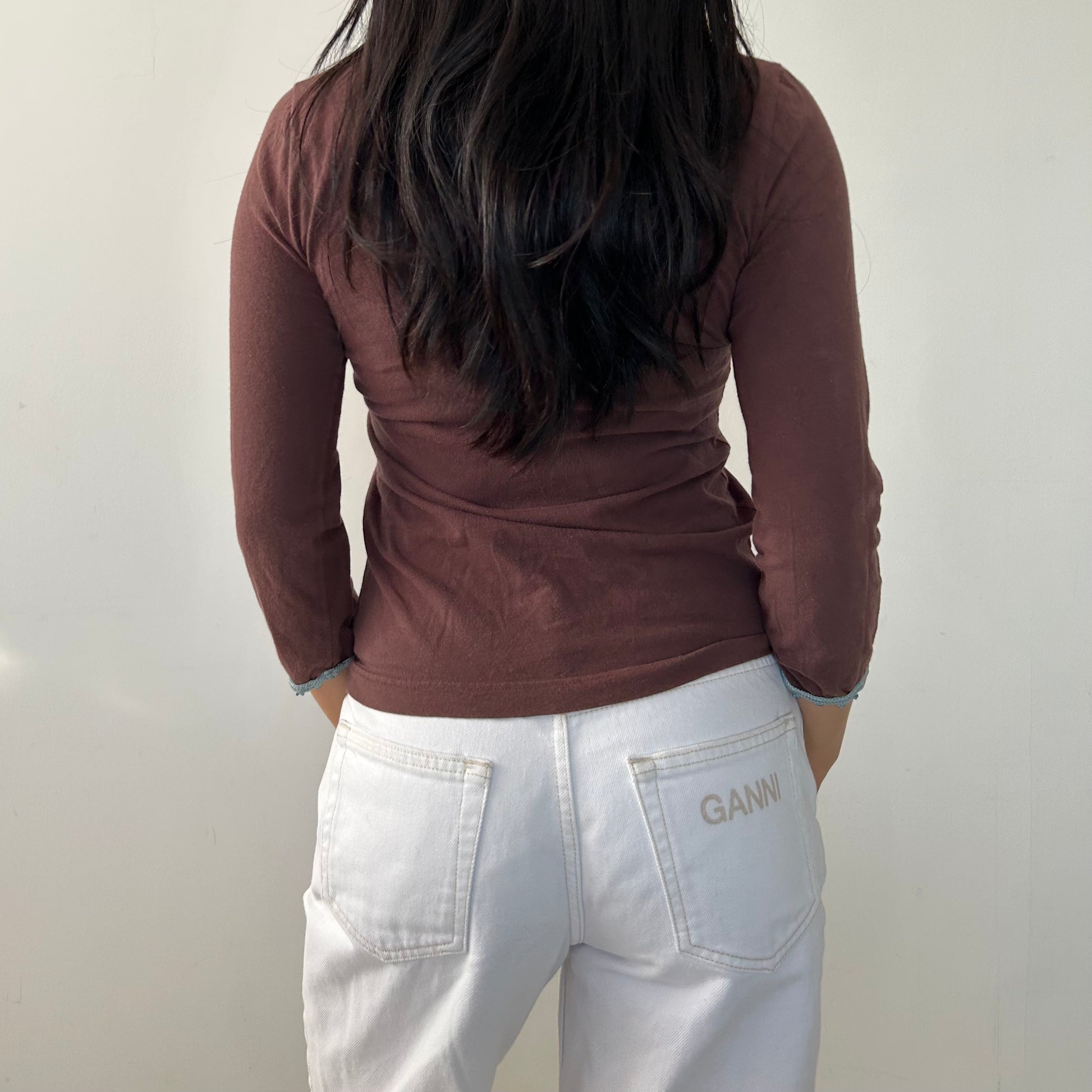 Vanessa Bruno Brown 3/4 Sleeve Top - Small