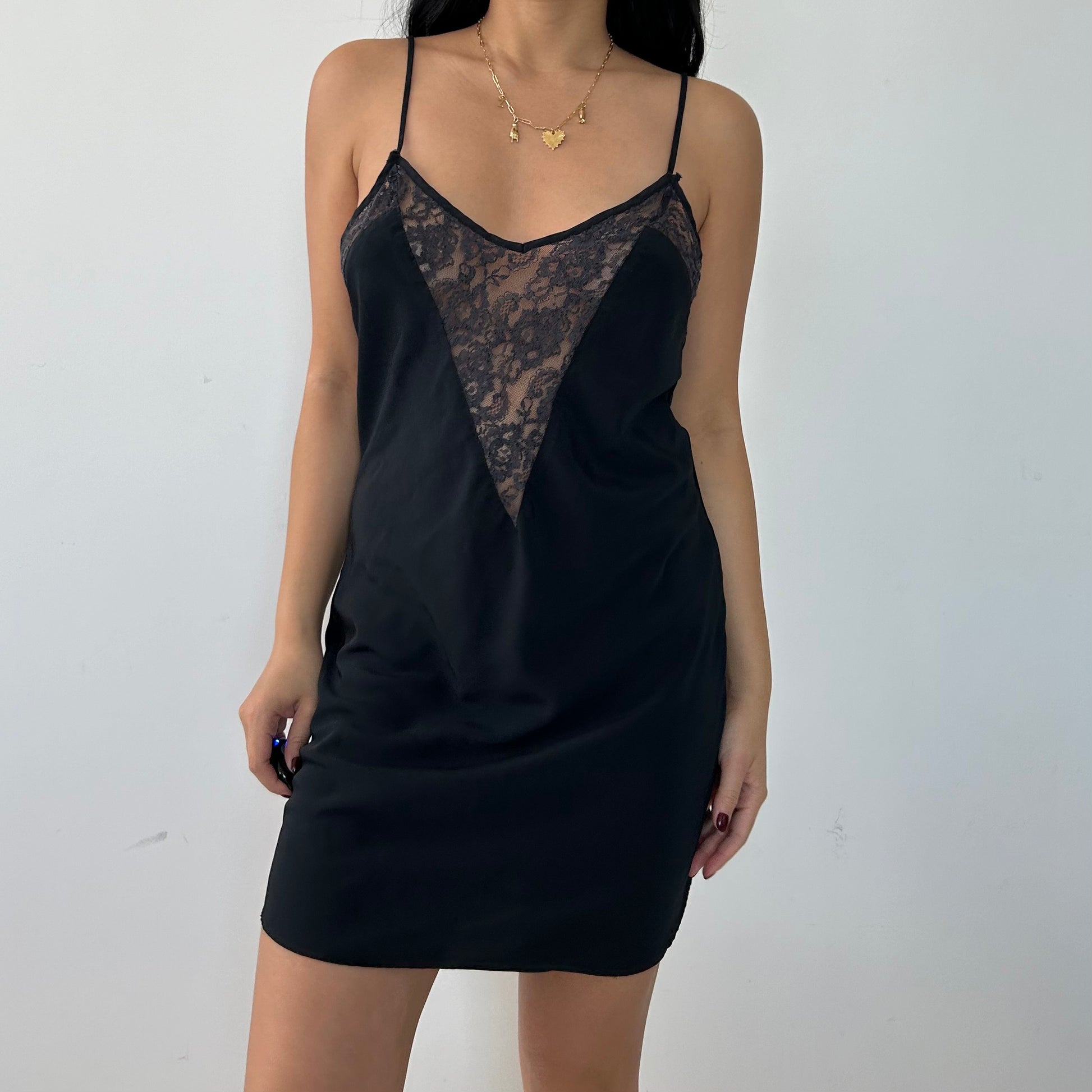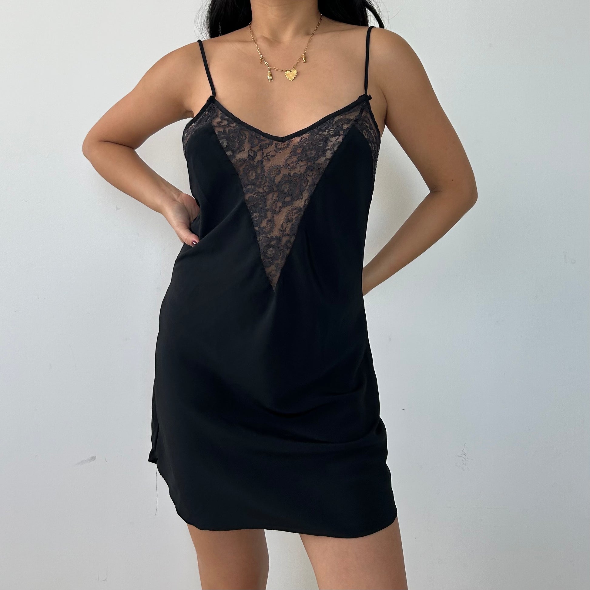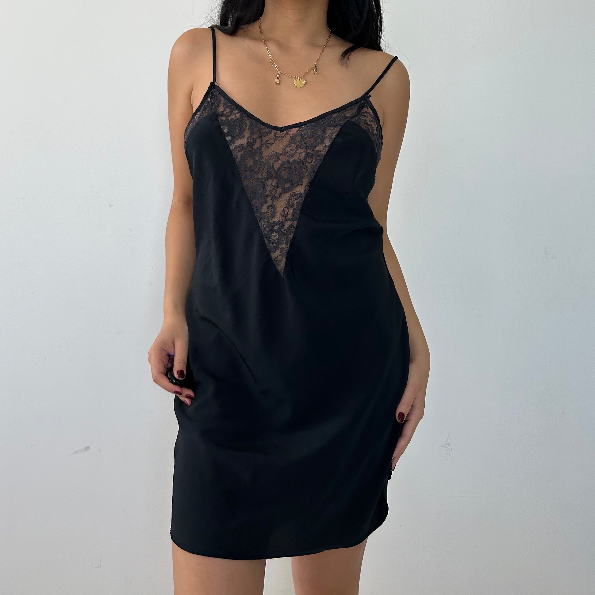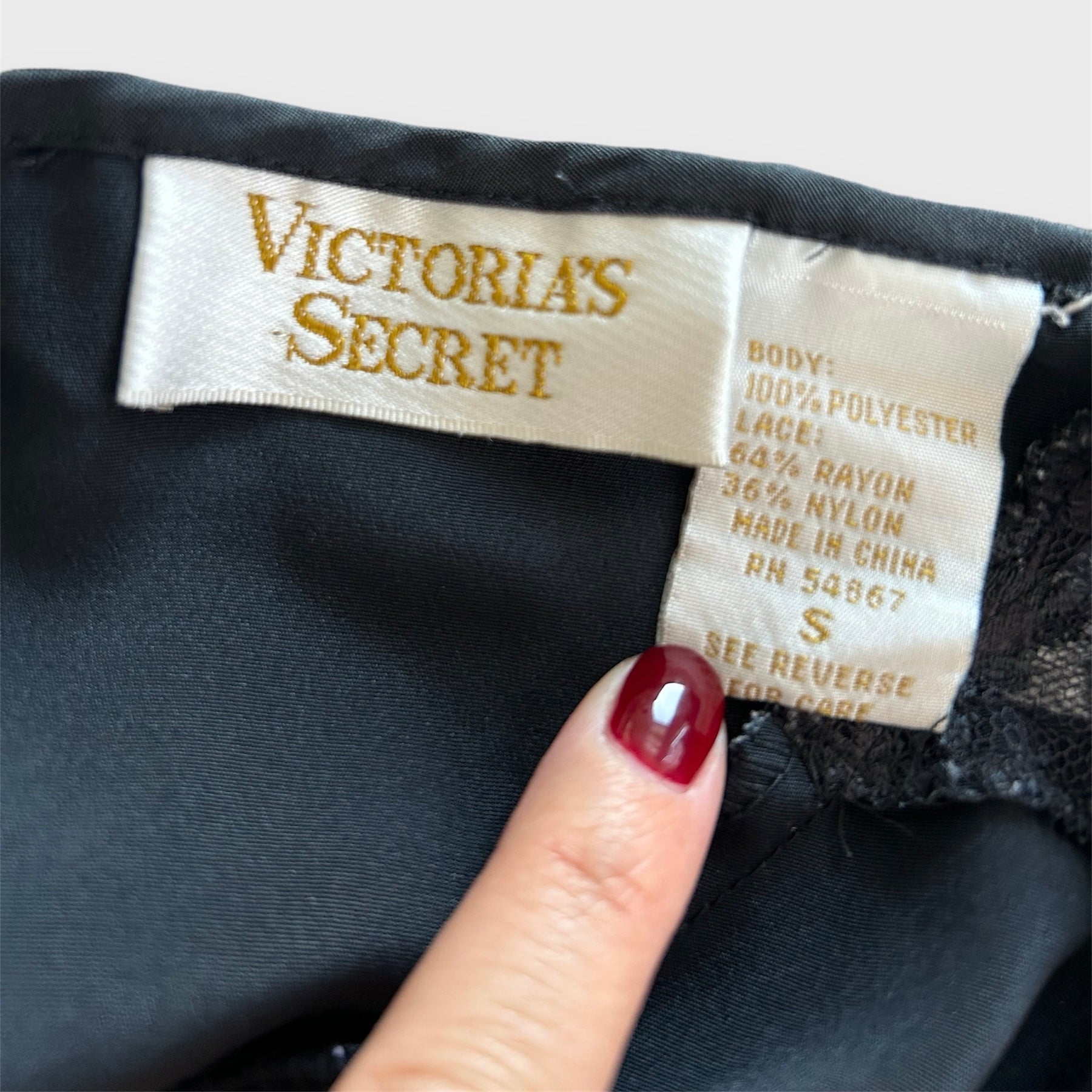 Vintage 1980s Victoria’s Secret Gold Label Black Lace Slip - Small