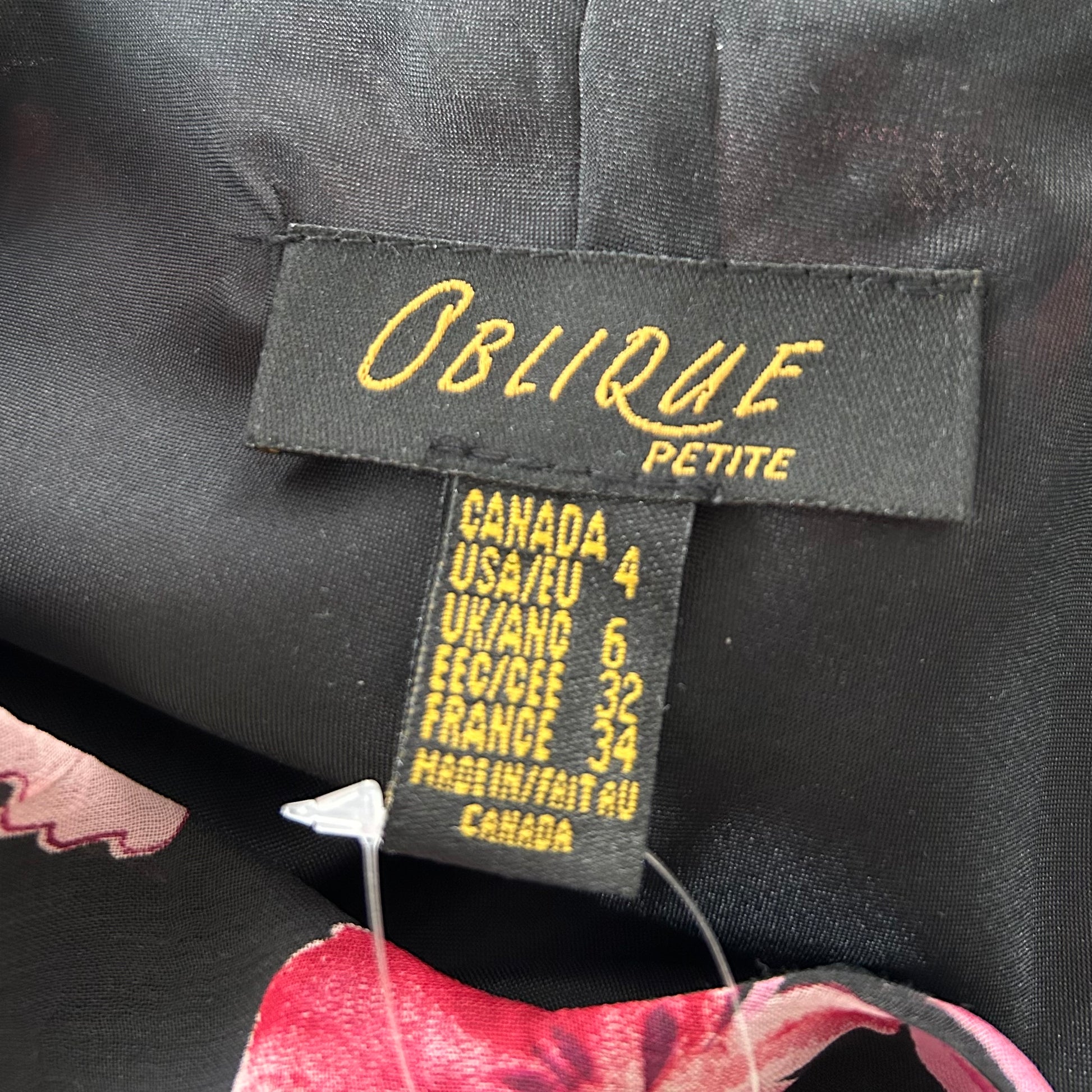 - Details: Vintage from the 90s; cap sleeve midi dress; black and pink floral print