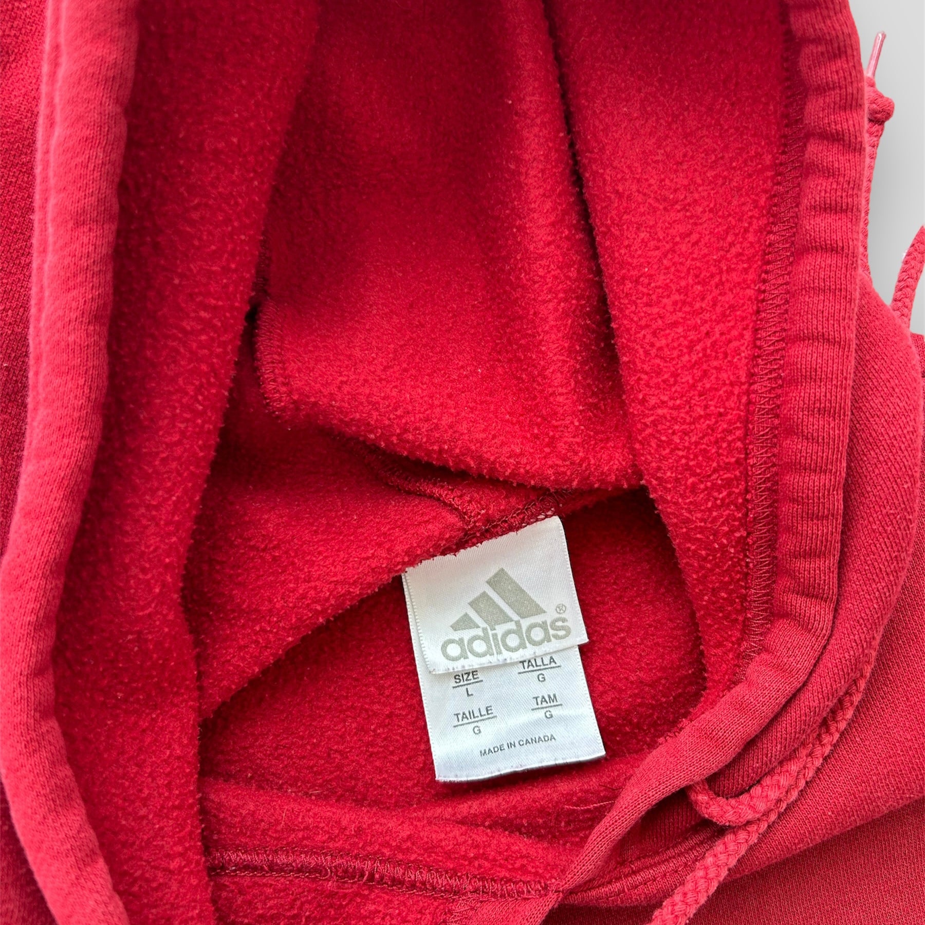 Vintage Made in Canada Adidas Red Spell Out Hoodie - Large