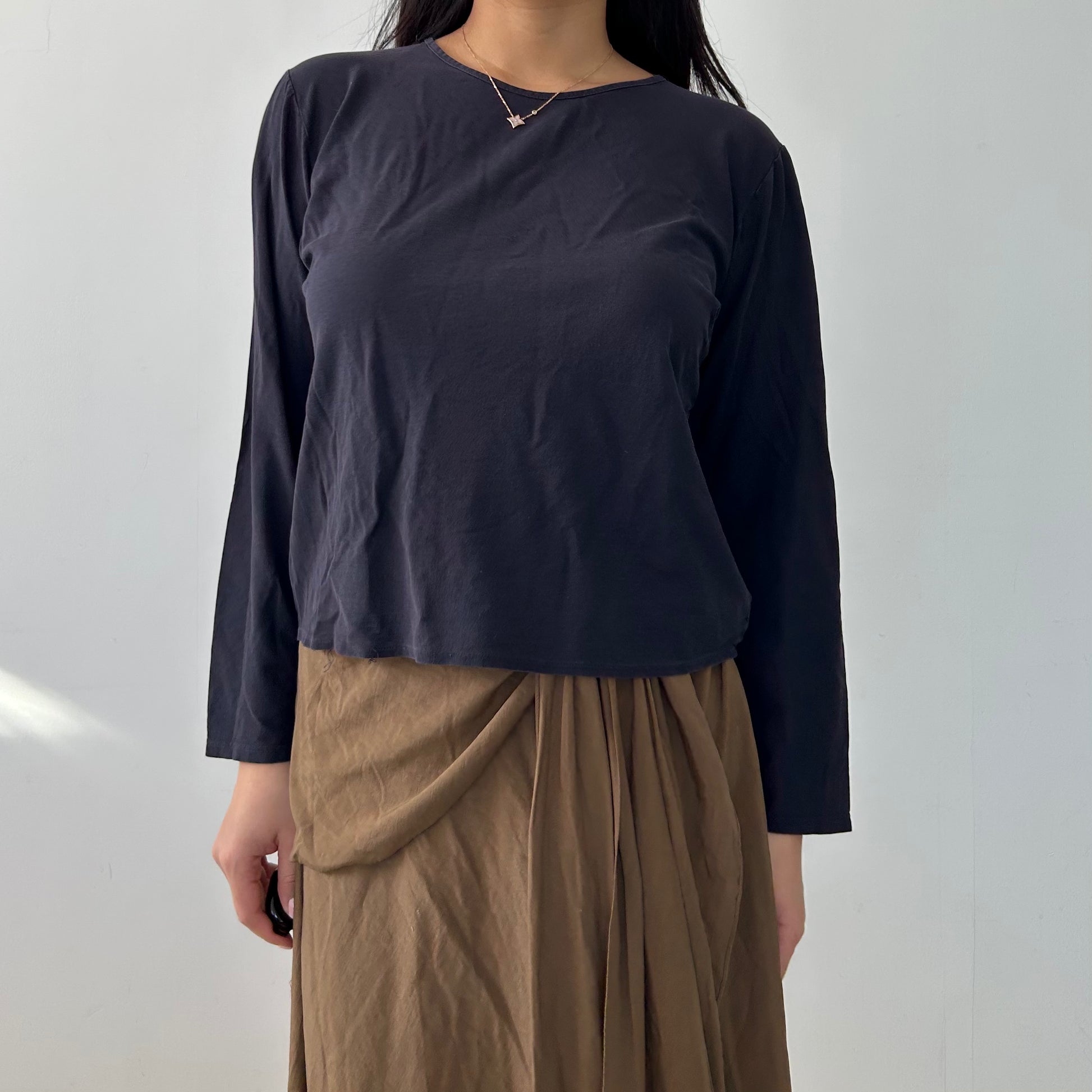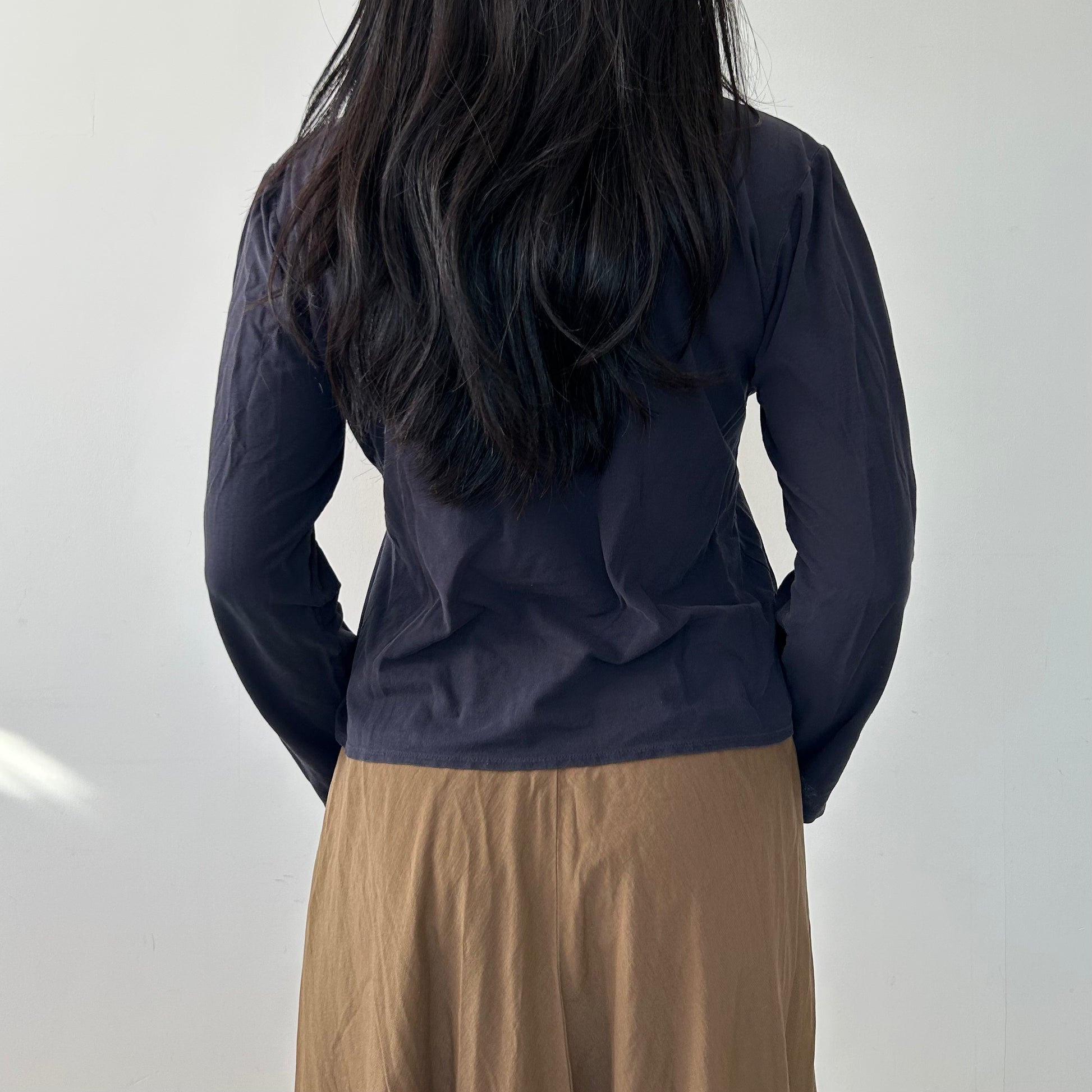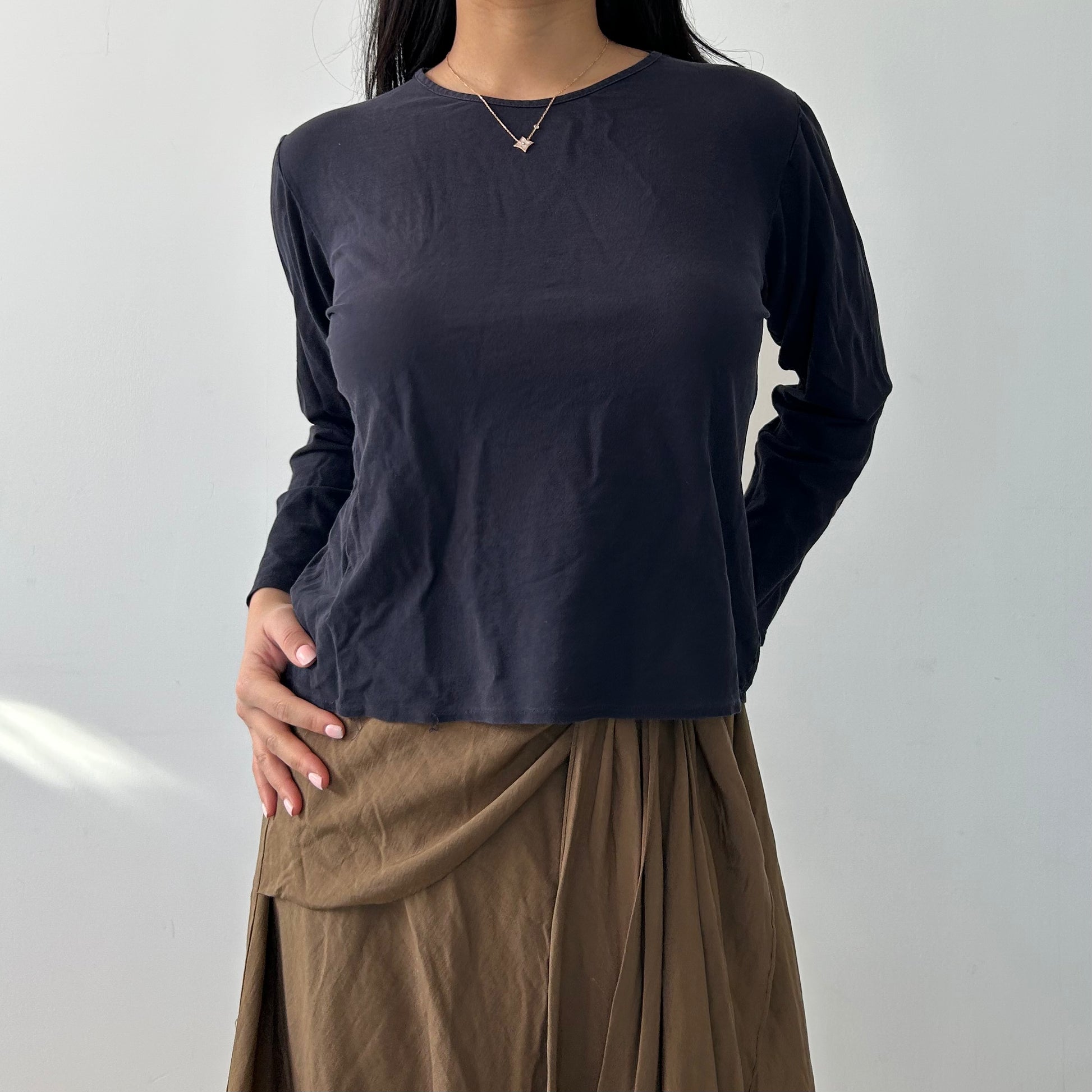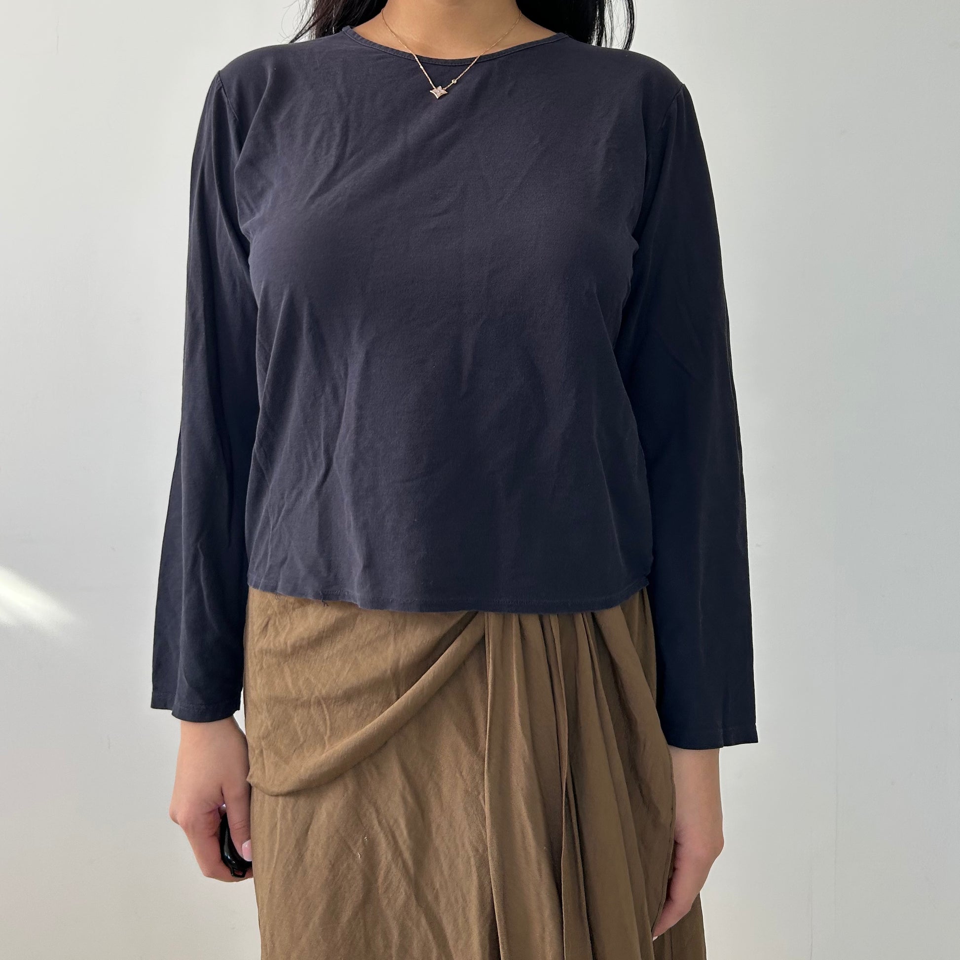 - Details: Navy crewneck long sleeve tee