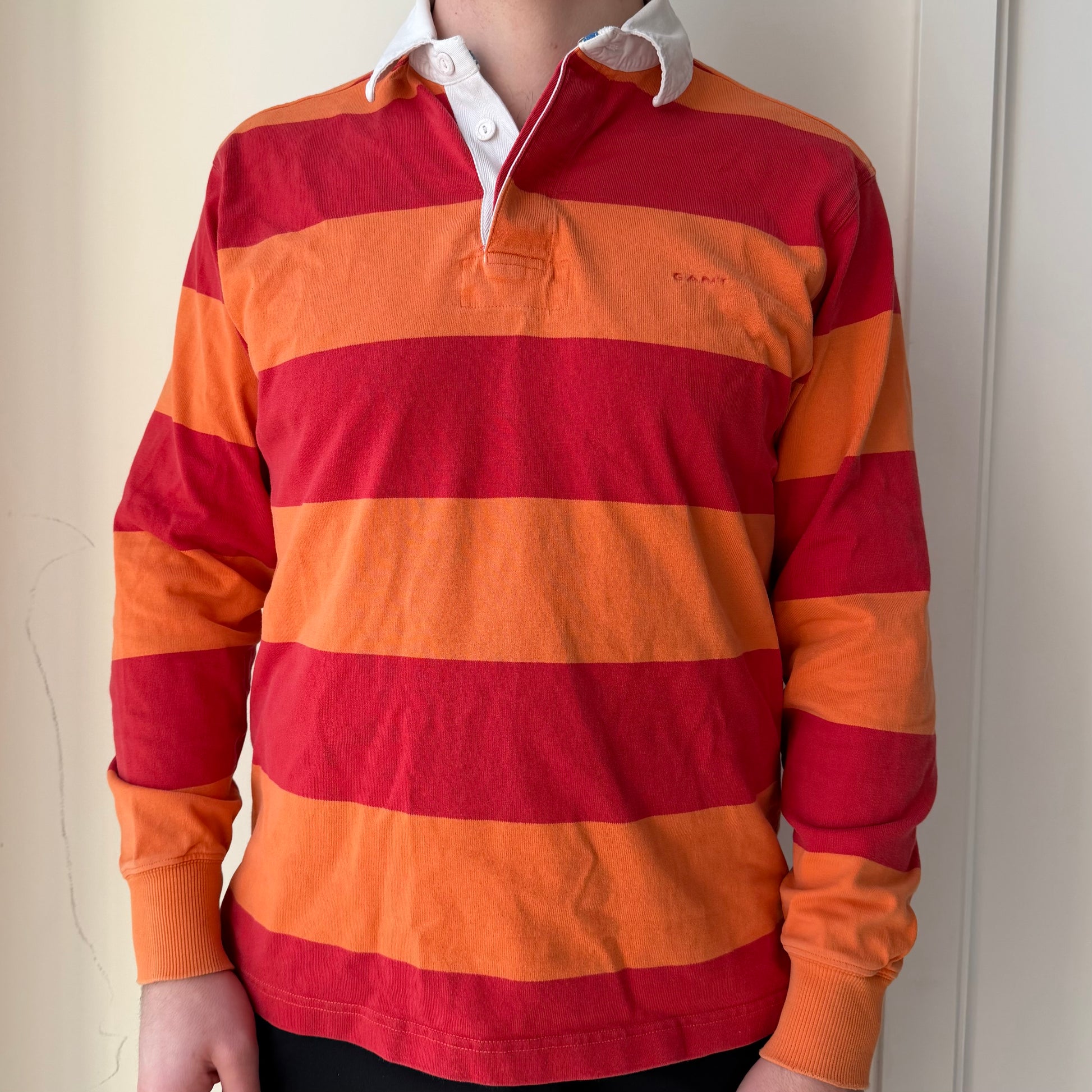 1990s Gant Orange Striped Long Sleeve Rugby Shirt - Large