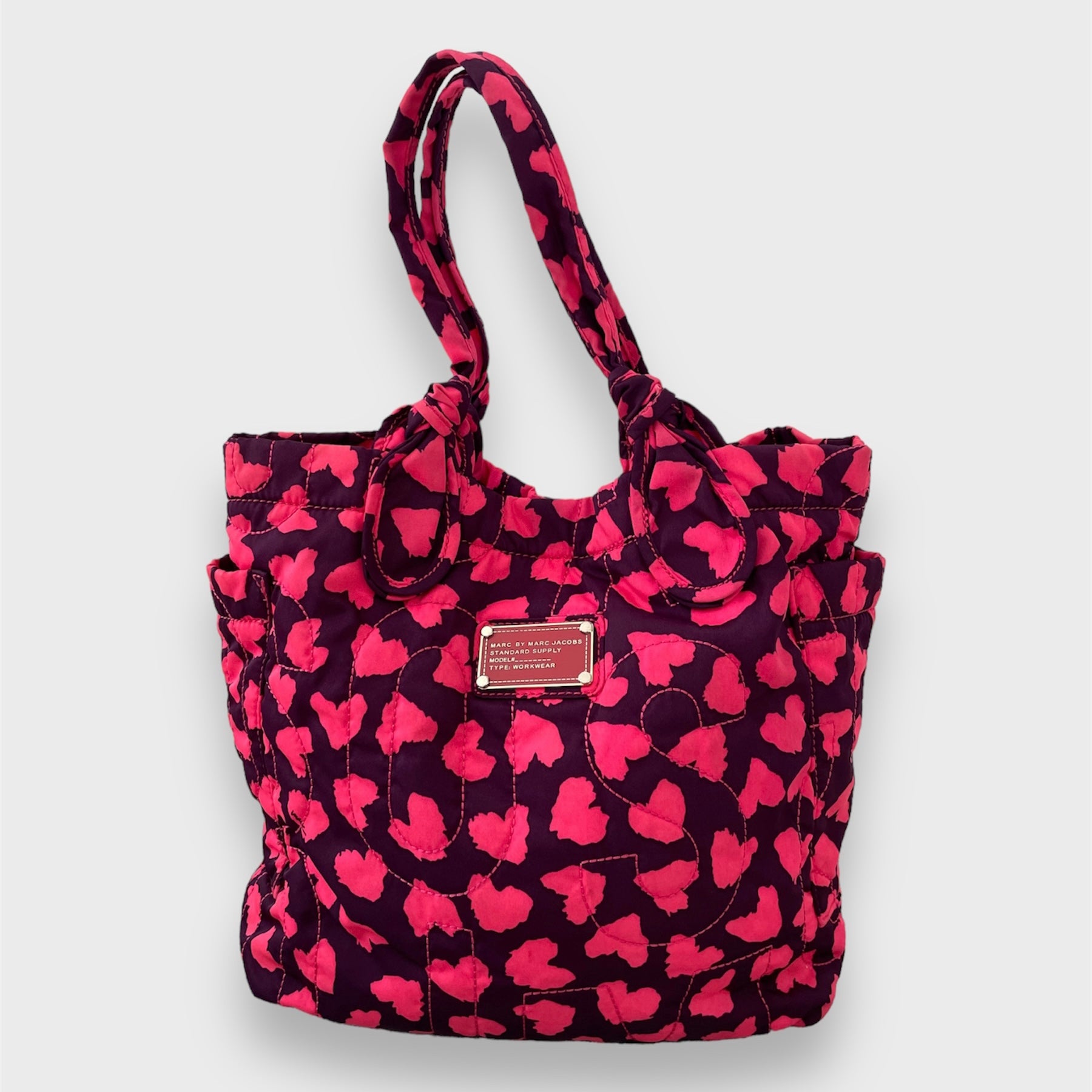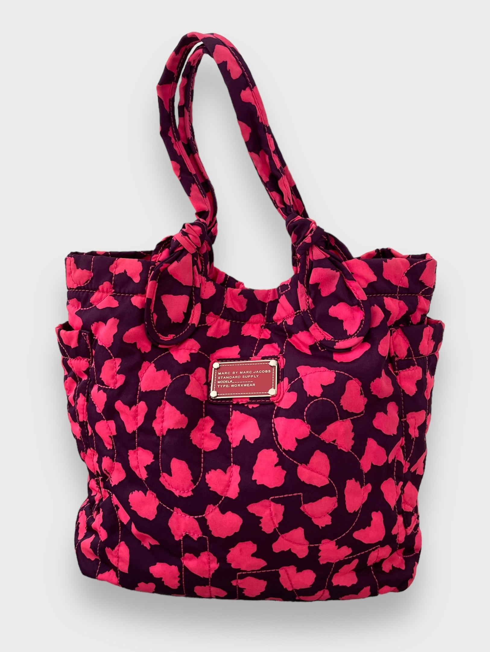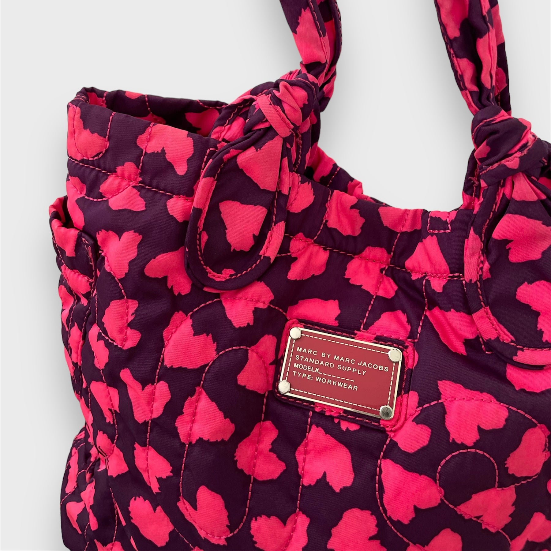 2010 Marc by Marc Jacobs Pink Quilted Heart-Print Nylon Tote