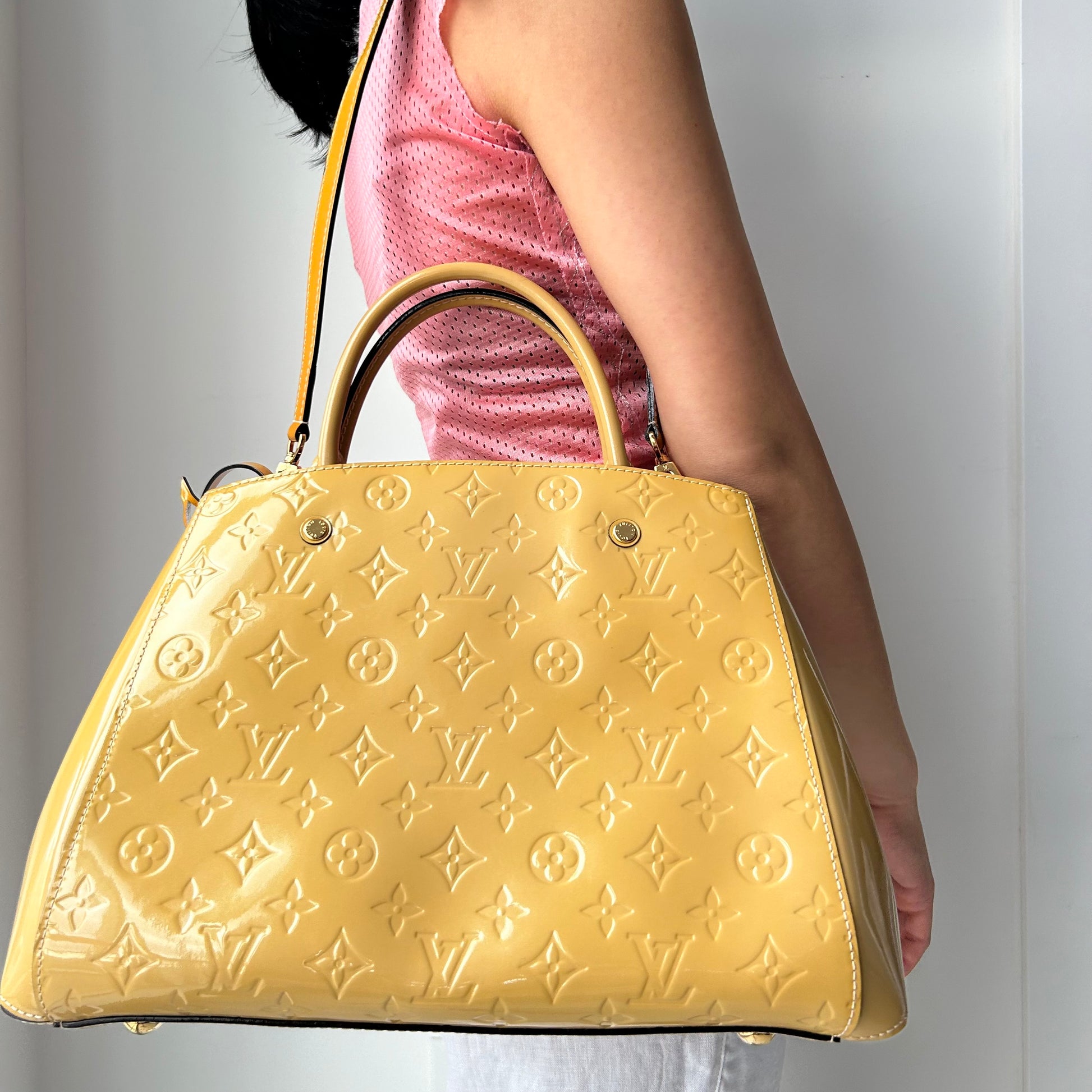 2014 Louis Vuitton Patent Yellow Monogram Vernis Montaigne MM