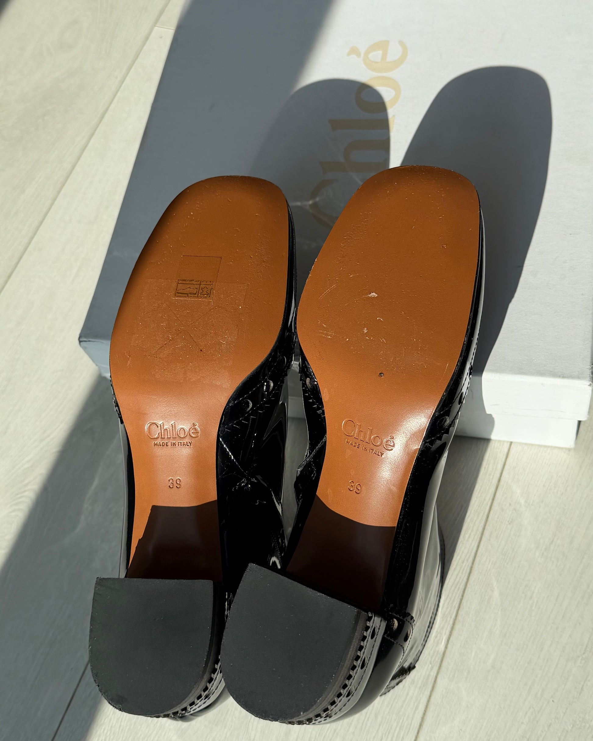 - Material Composition: Patent leather upper with leather sole