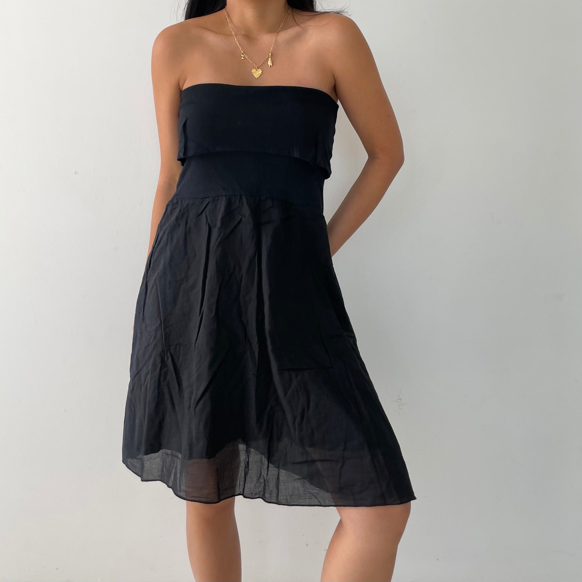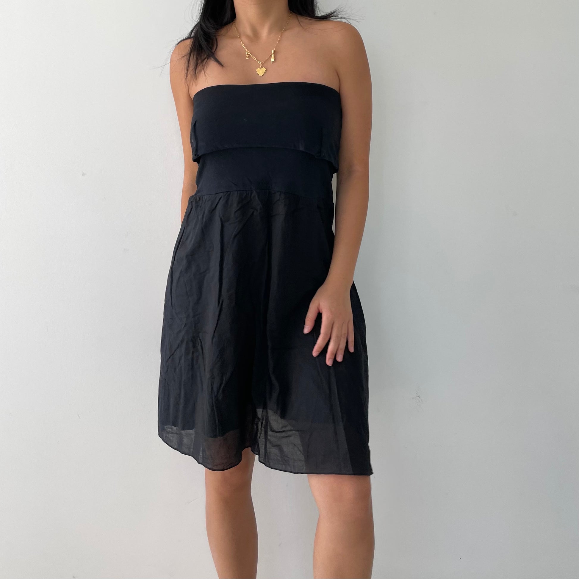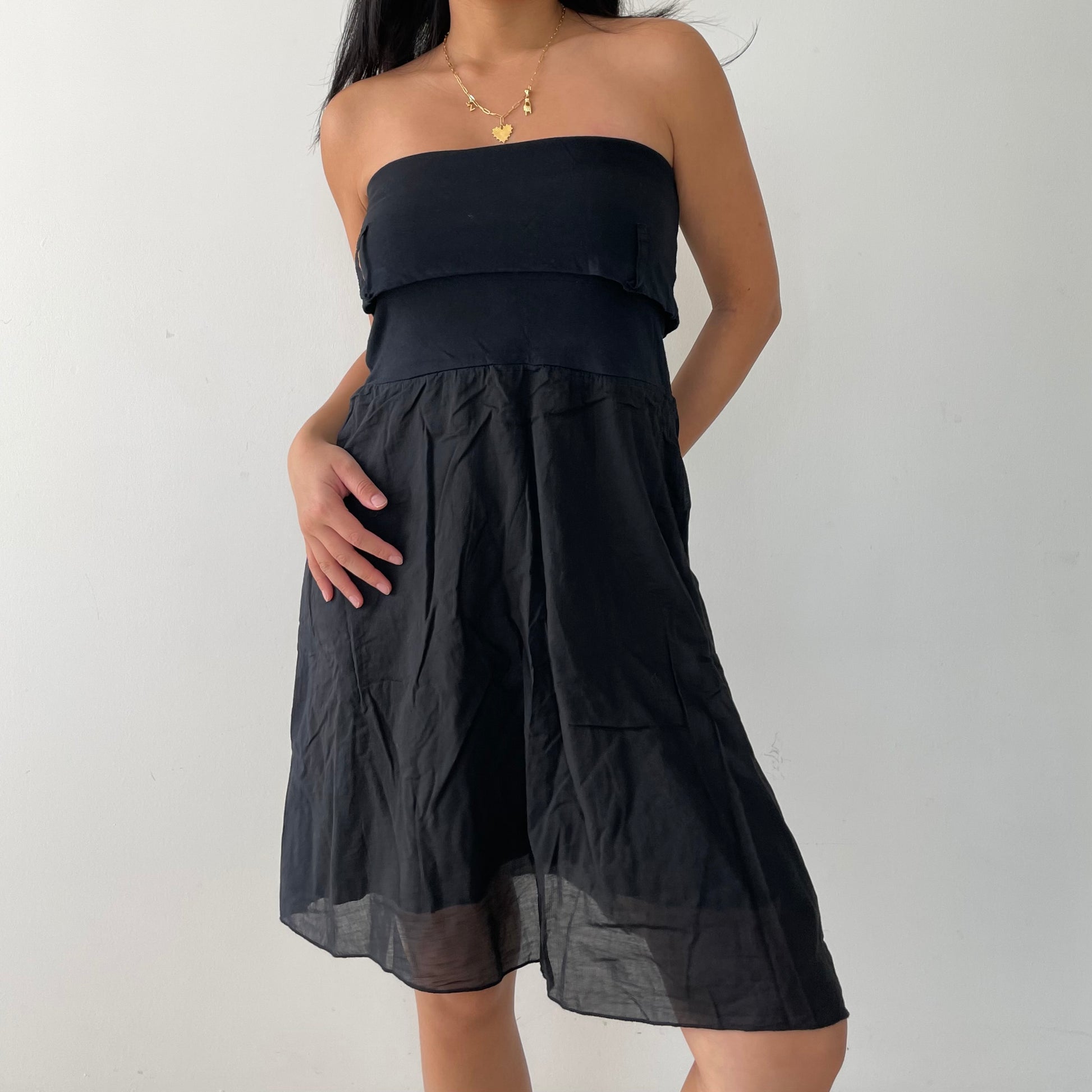 - Details: From the early 2000s; double lined; dress is folded over on model